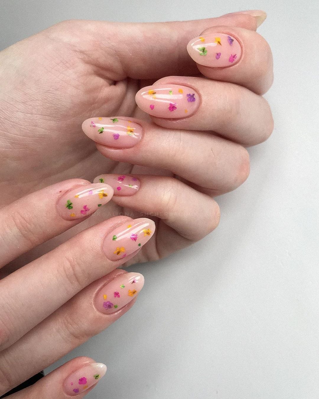 Прозрачный маникюр с сухоцветами