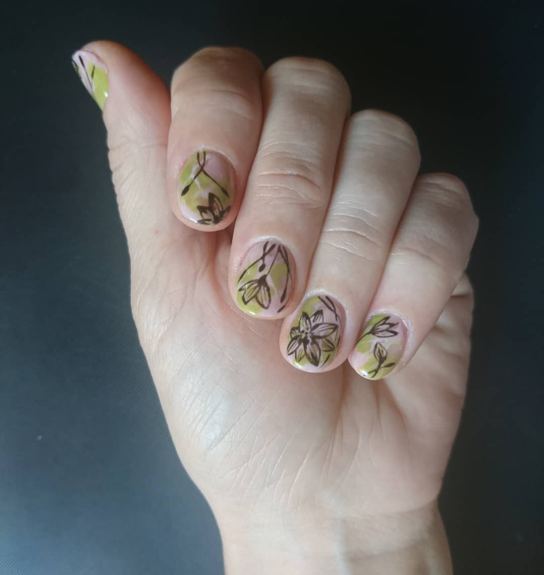 Растительный орнамент на ногтях