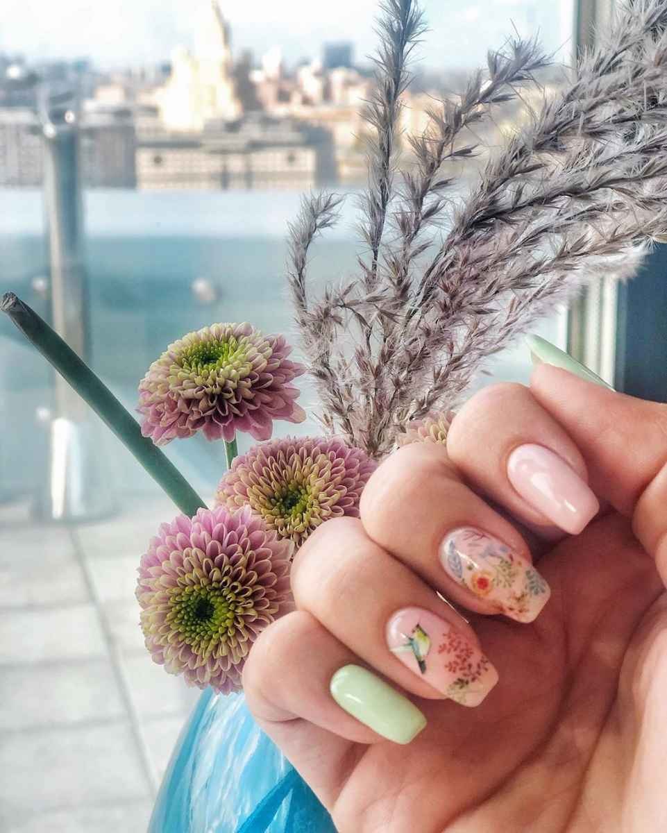 Маникюр с разводами на короткие ногти