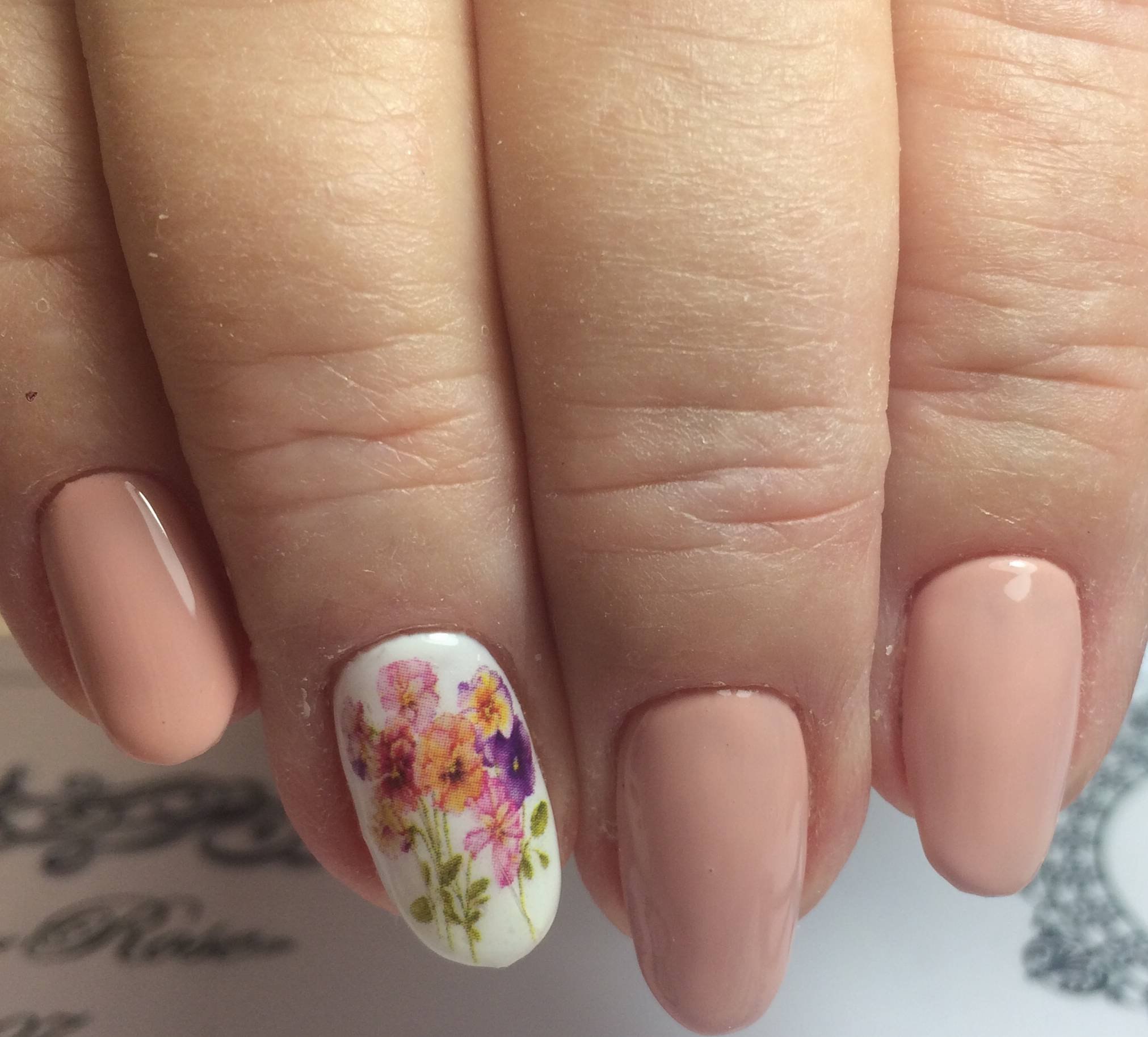 Прозрачный маникюр с цветами
