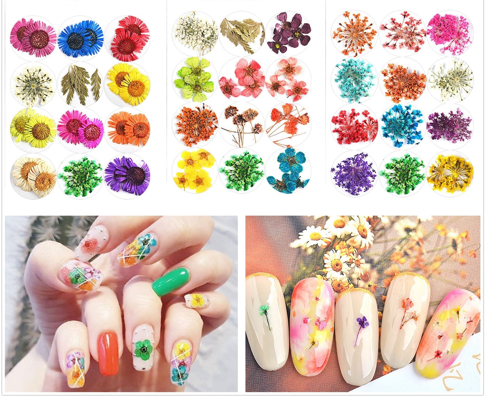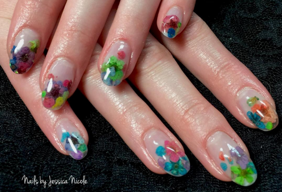 Яркий маникюр с сухоцветами