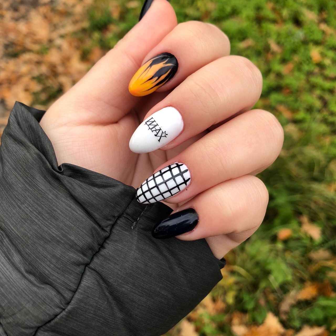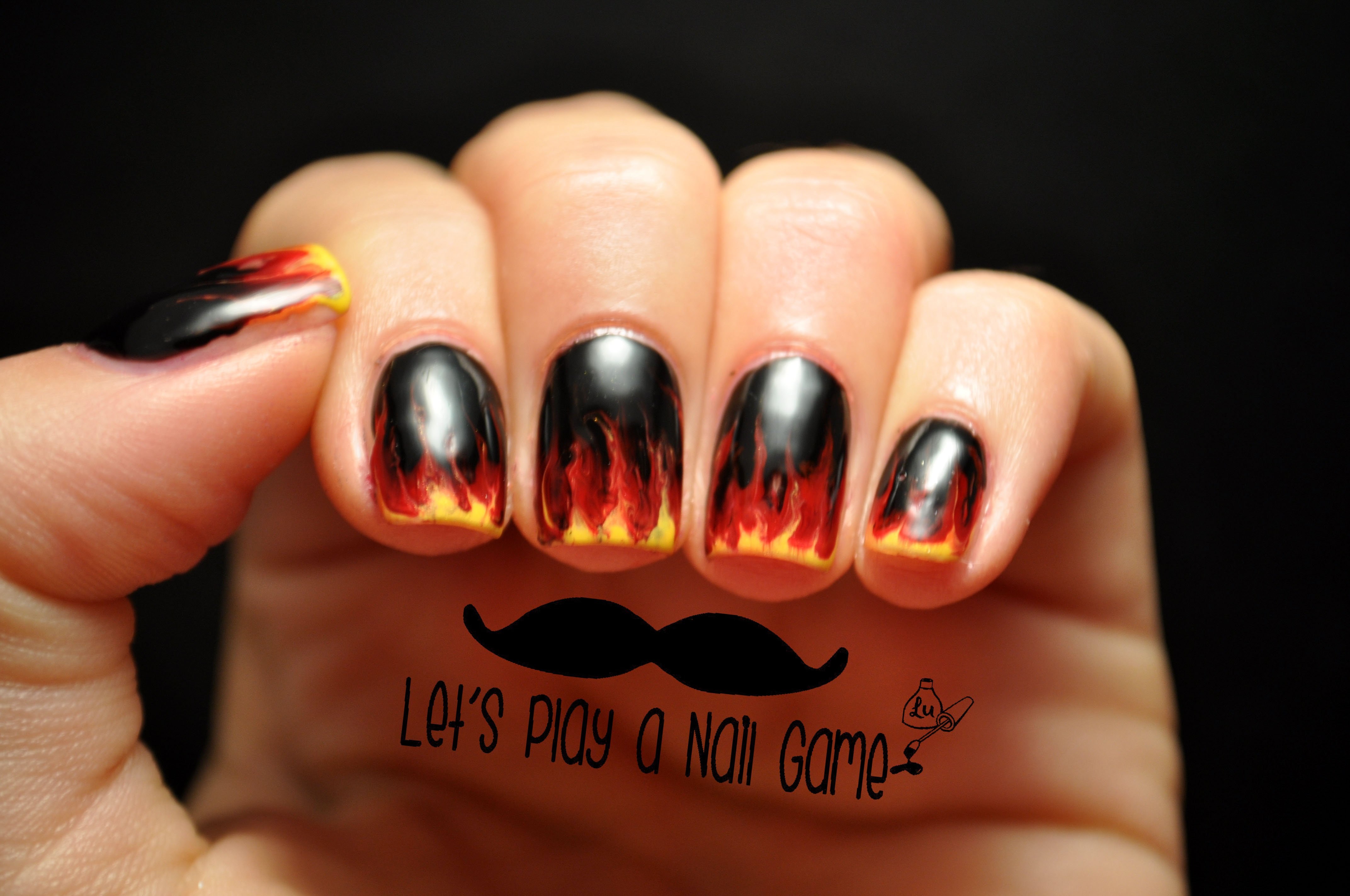 Маникюр чёрный с огнём