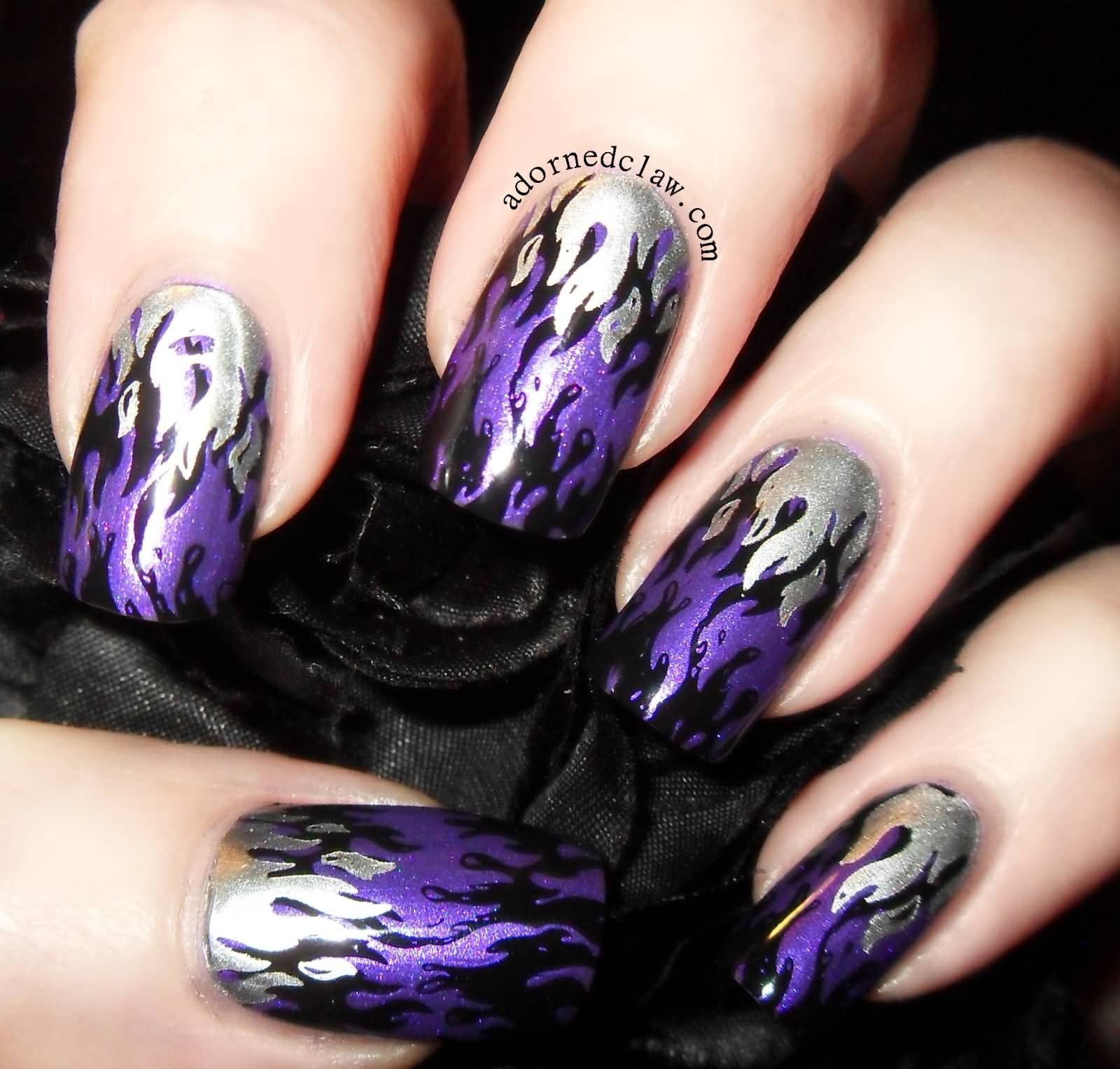 Ногти фиолетовые с черным