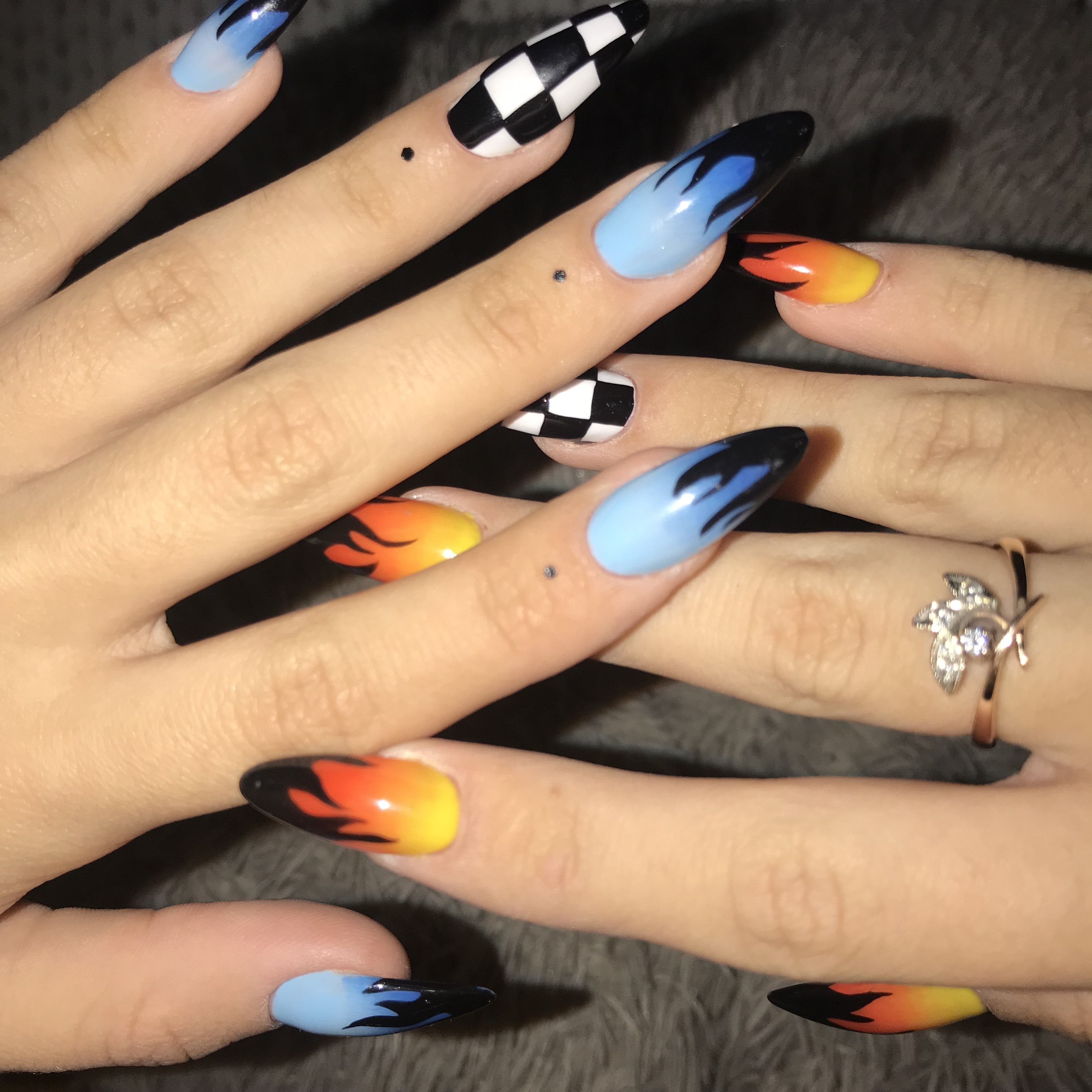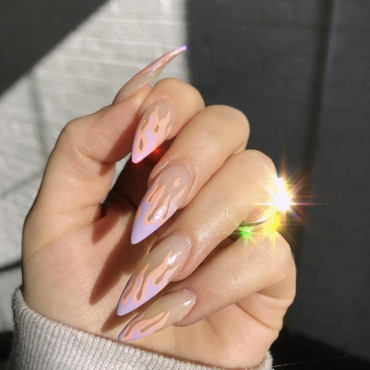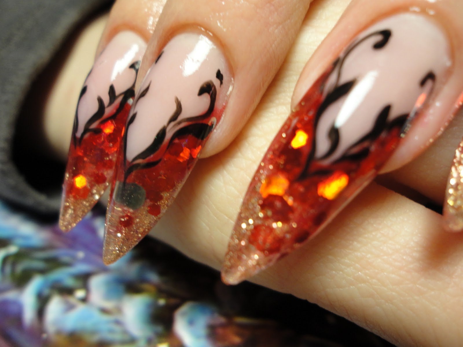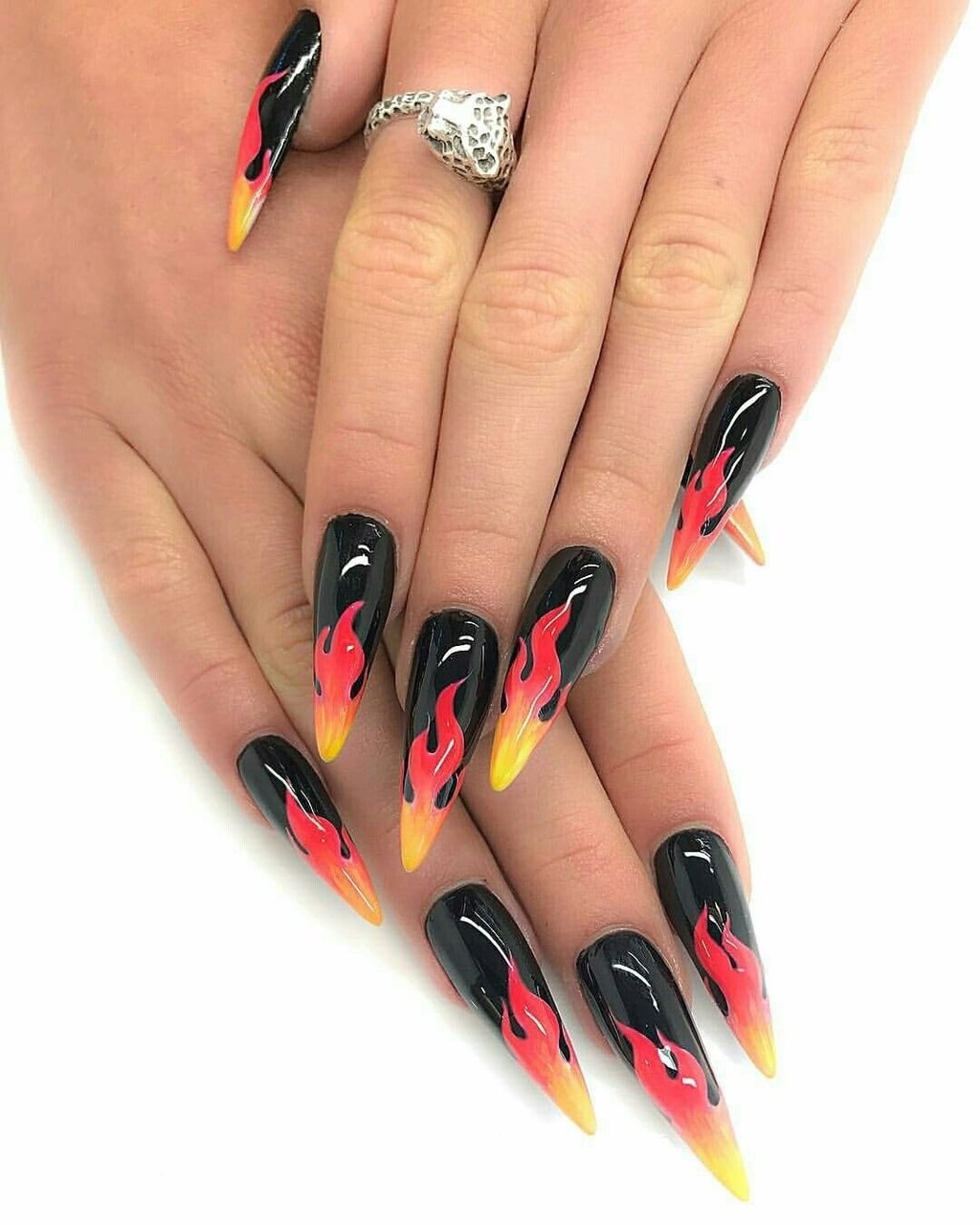 Маникюр на длинные острые ногти огонь
