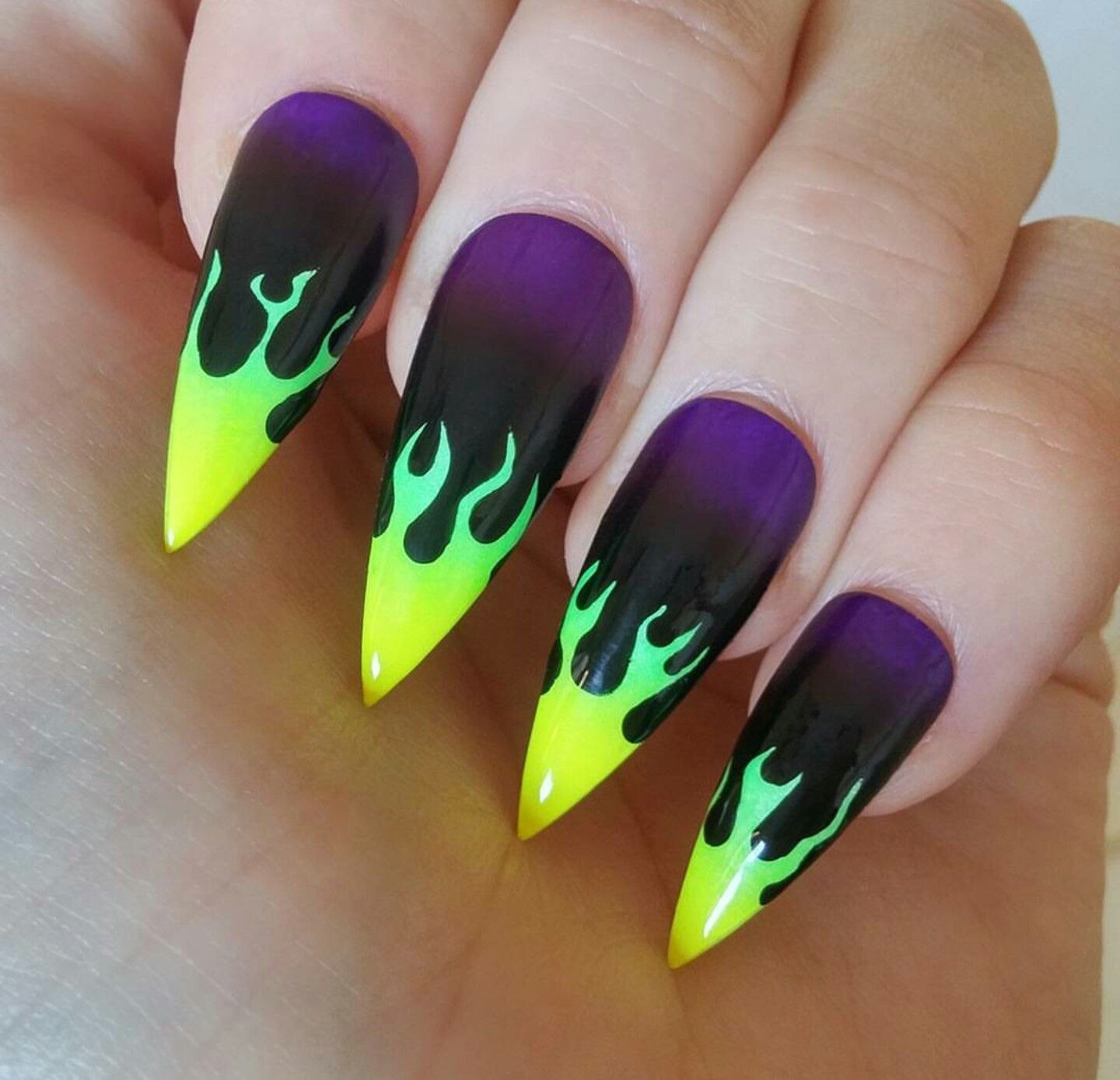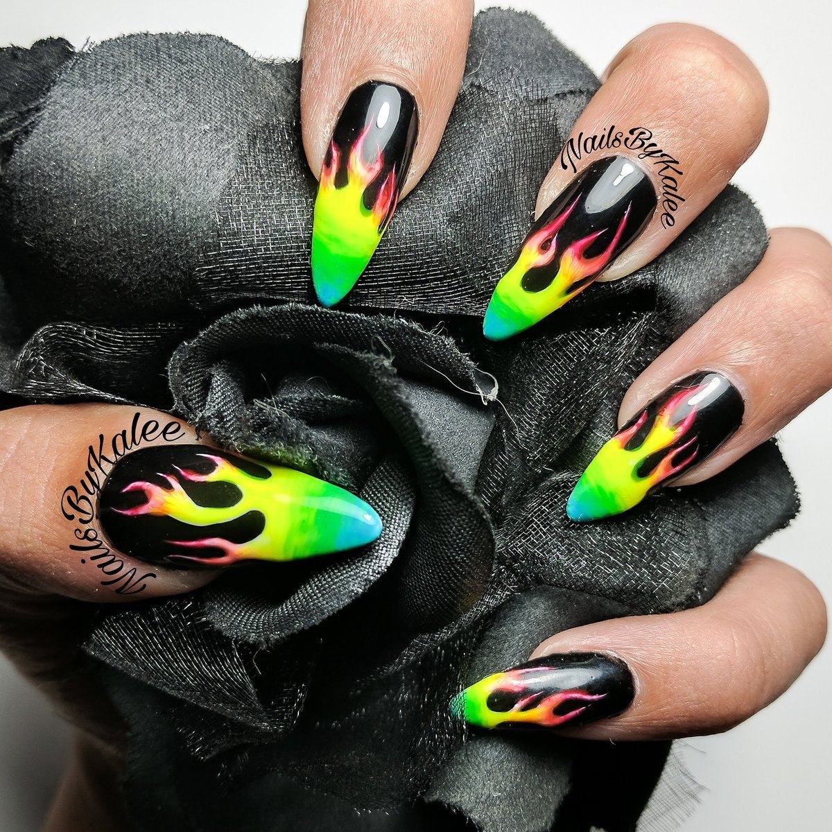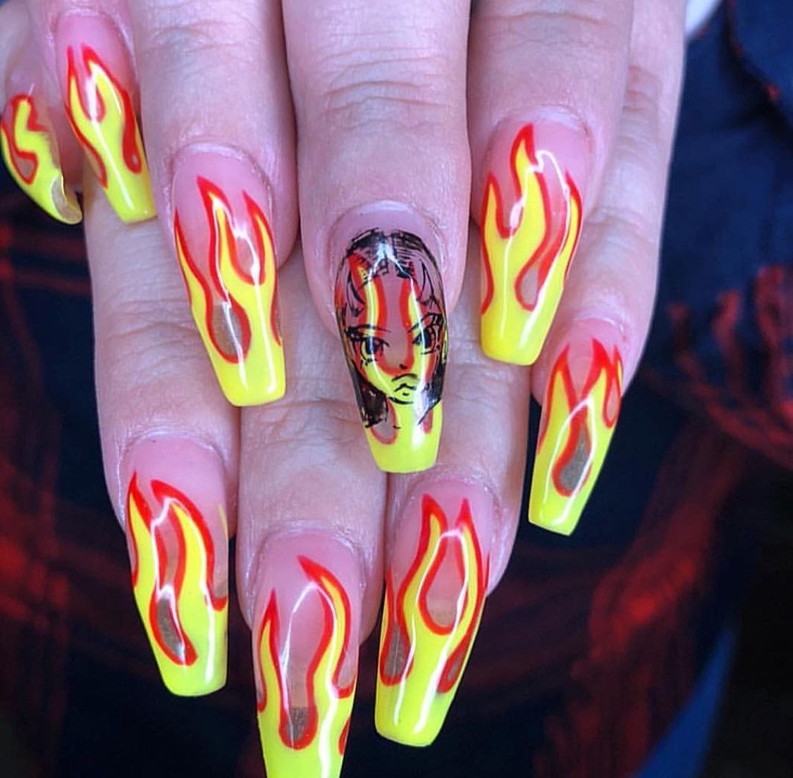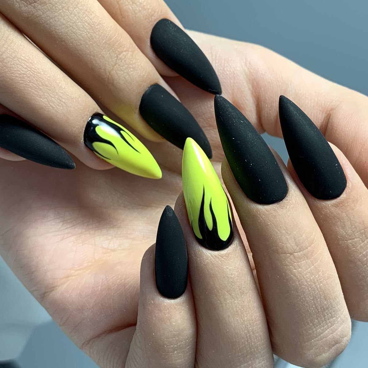 Маникюр на длинные острые ногти огонь