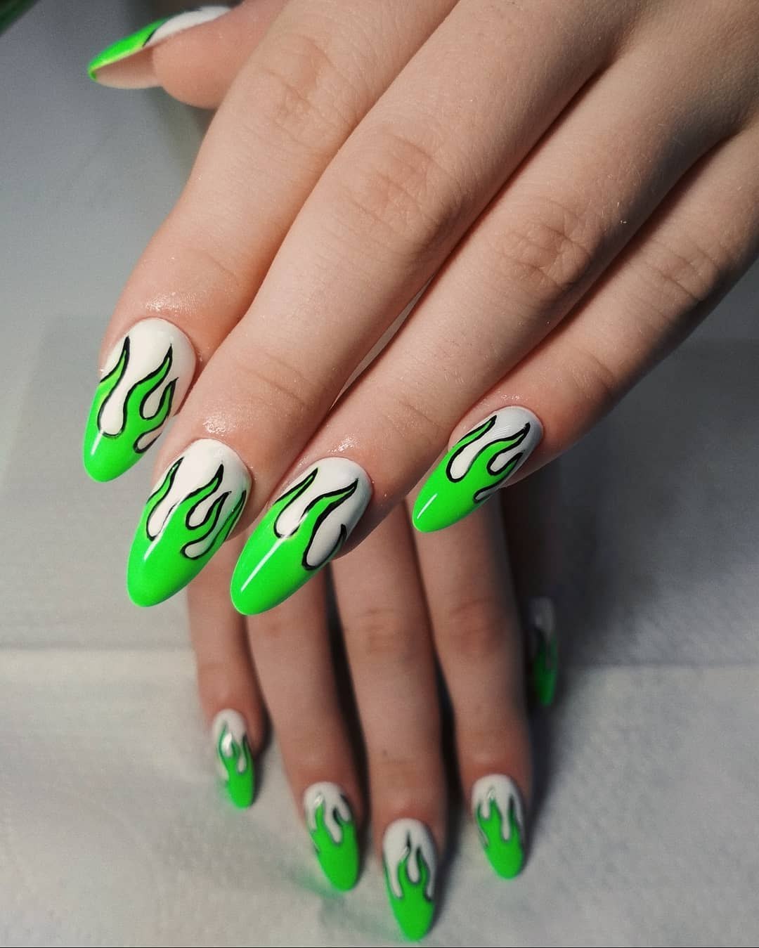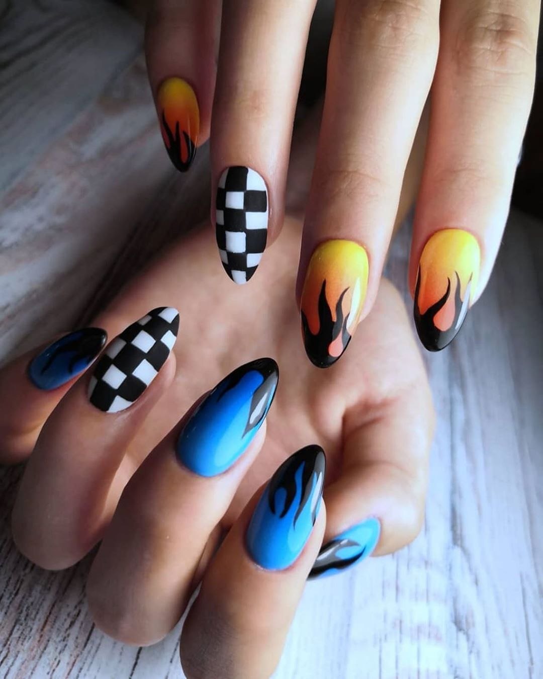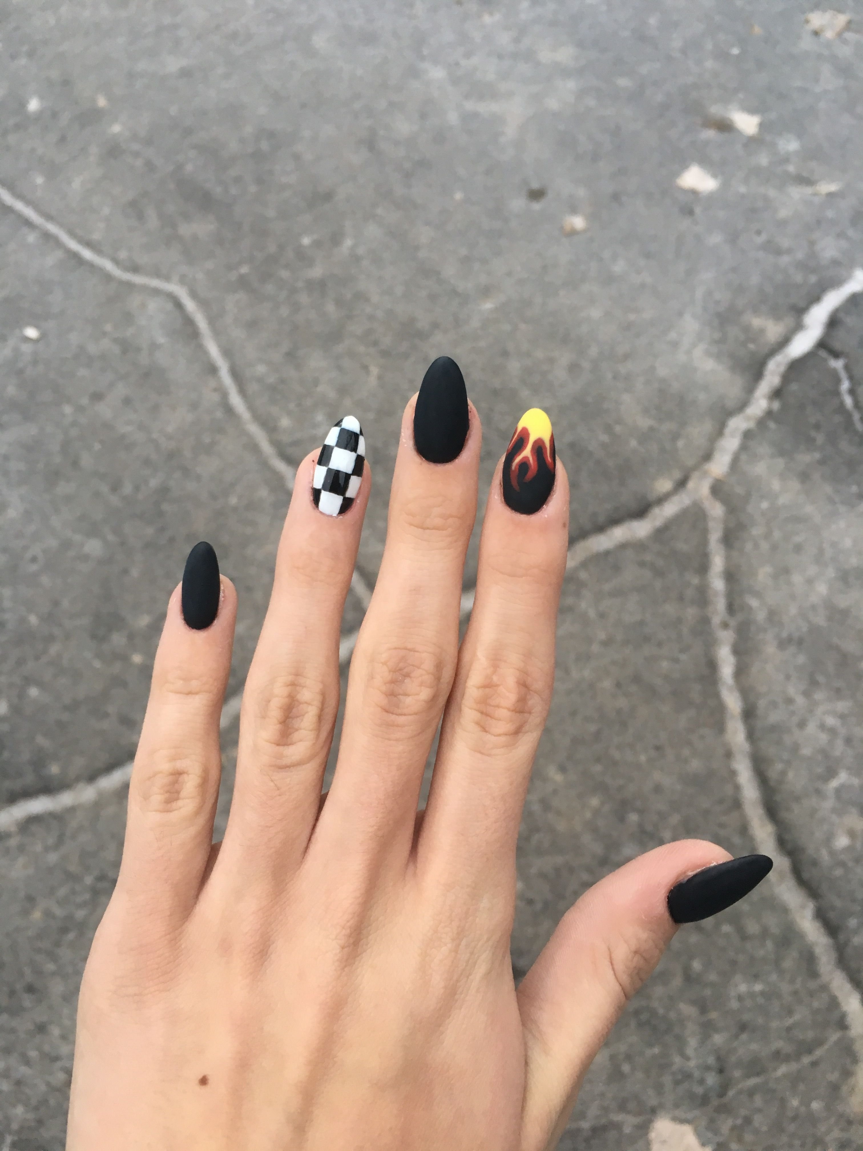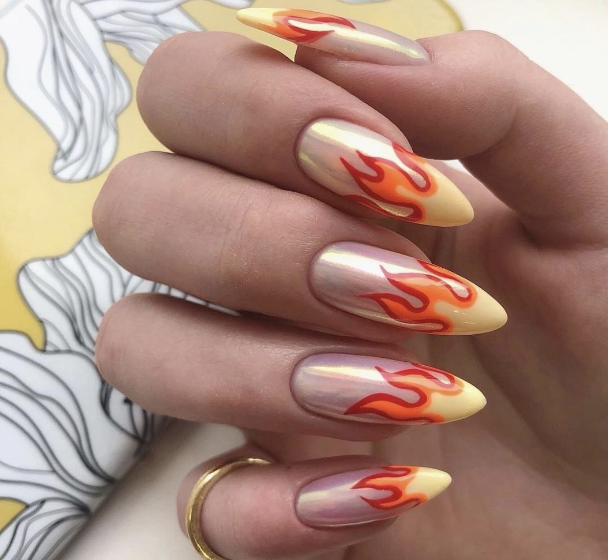 Маникюр на длинные острые ногти огонь