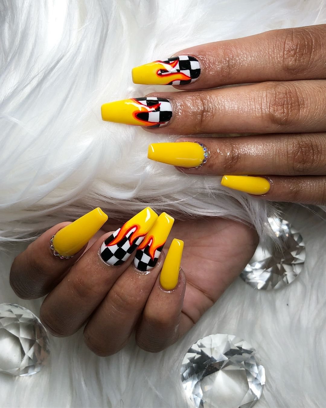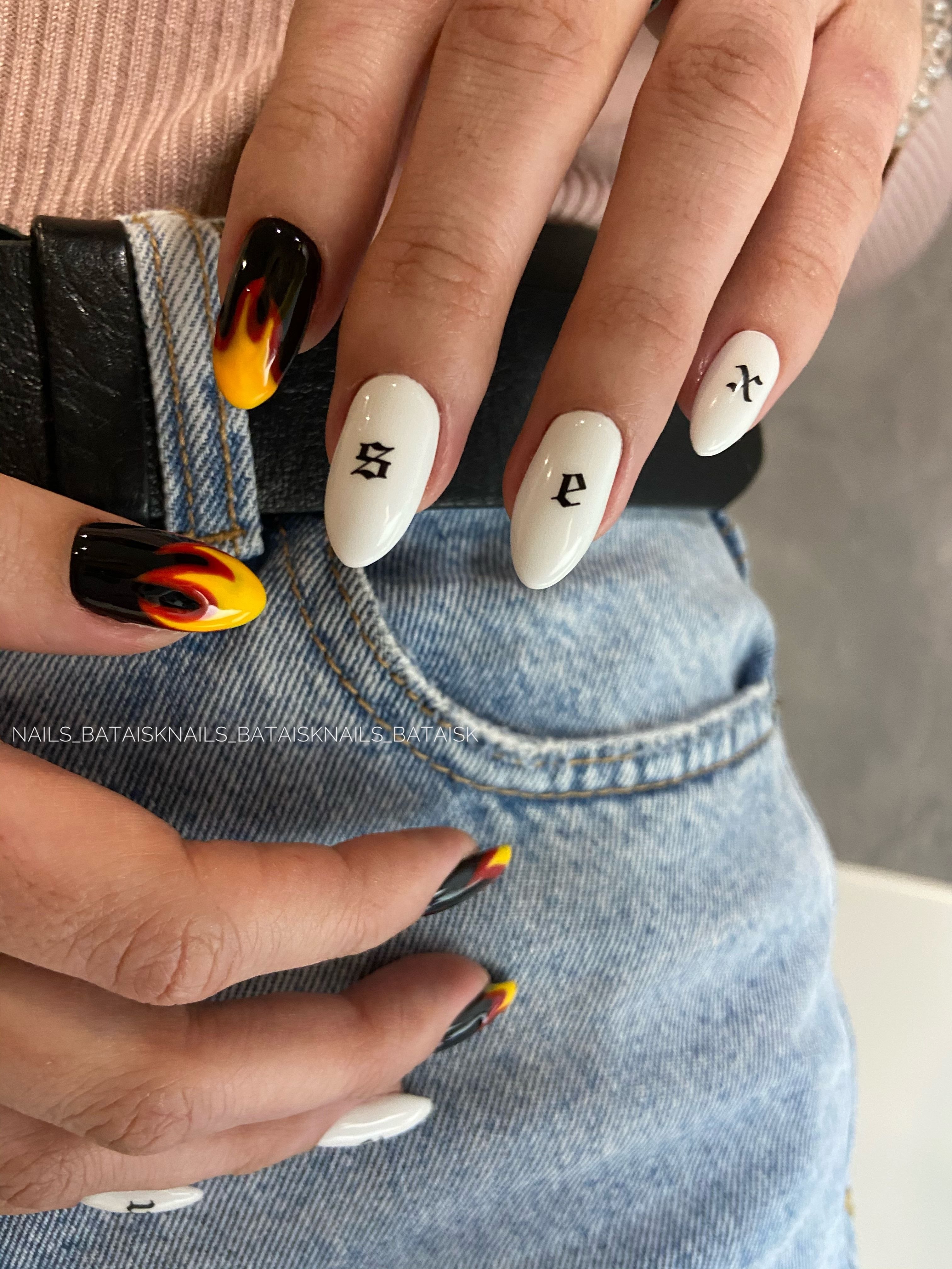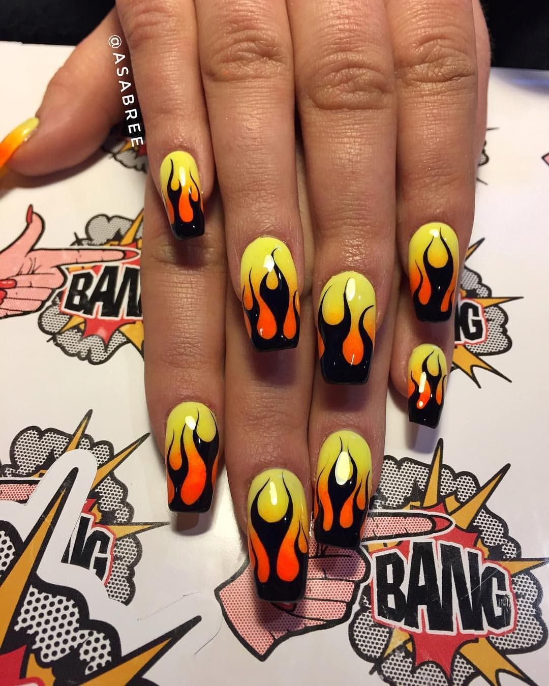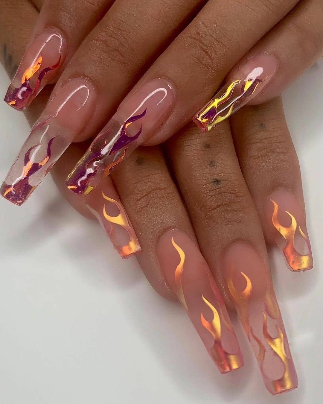 Маникюр на длинные ногти с огнем