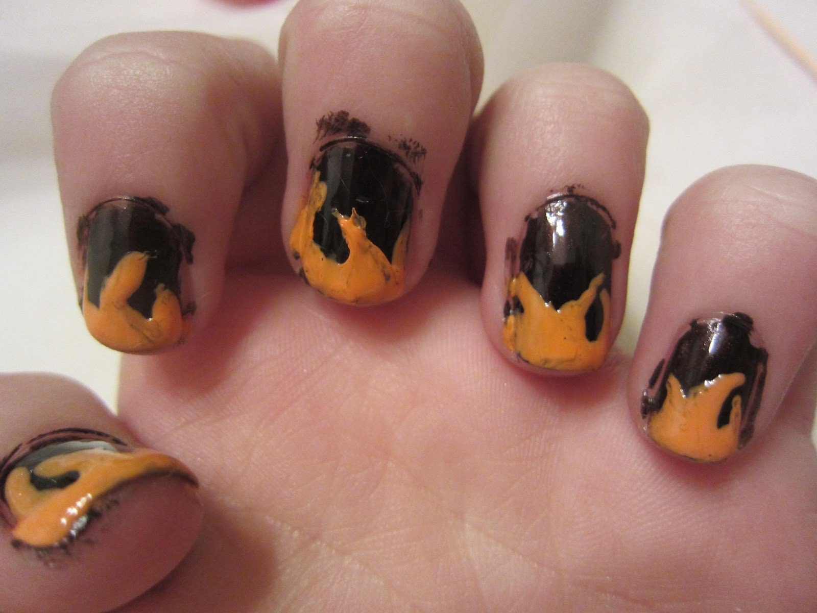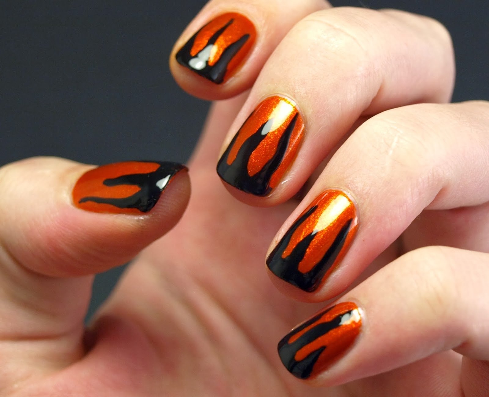 Пламя на оранжевых ногтях