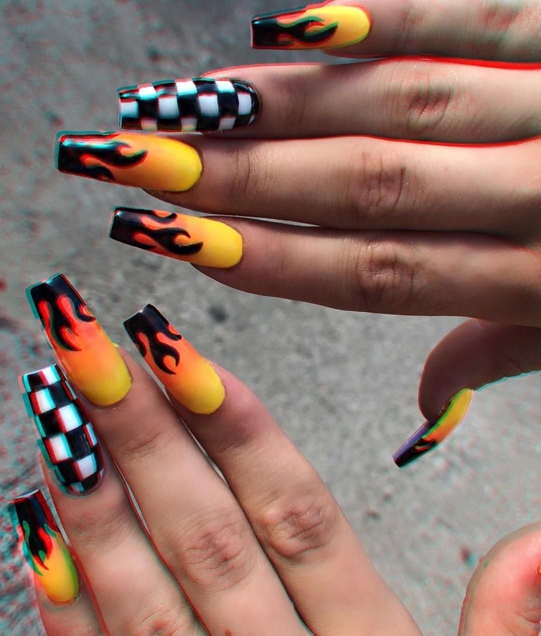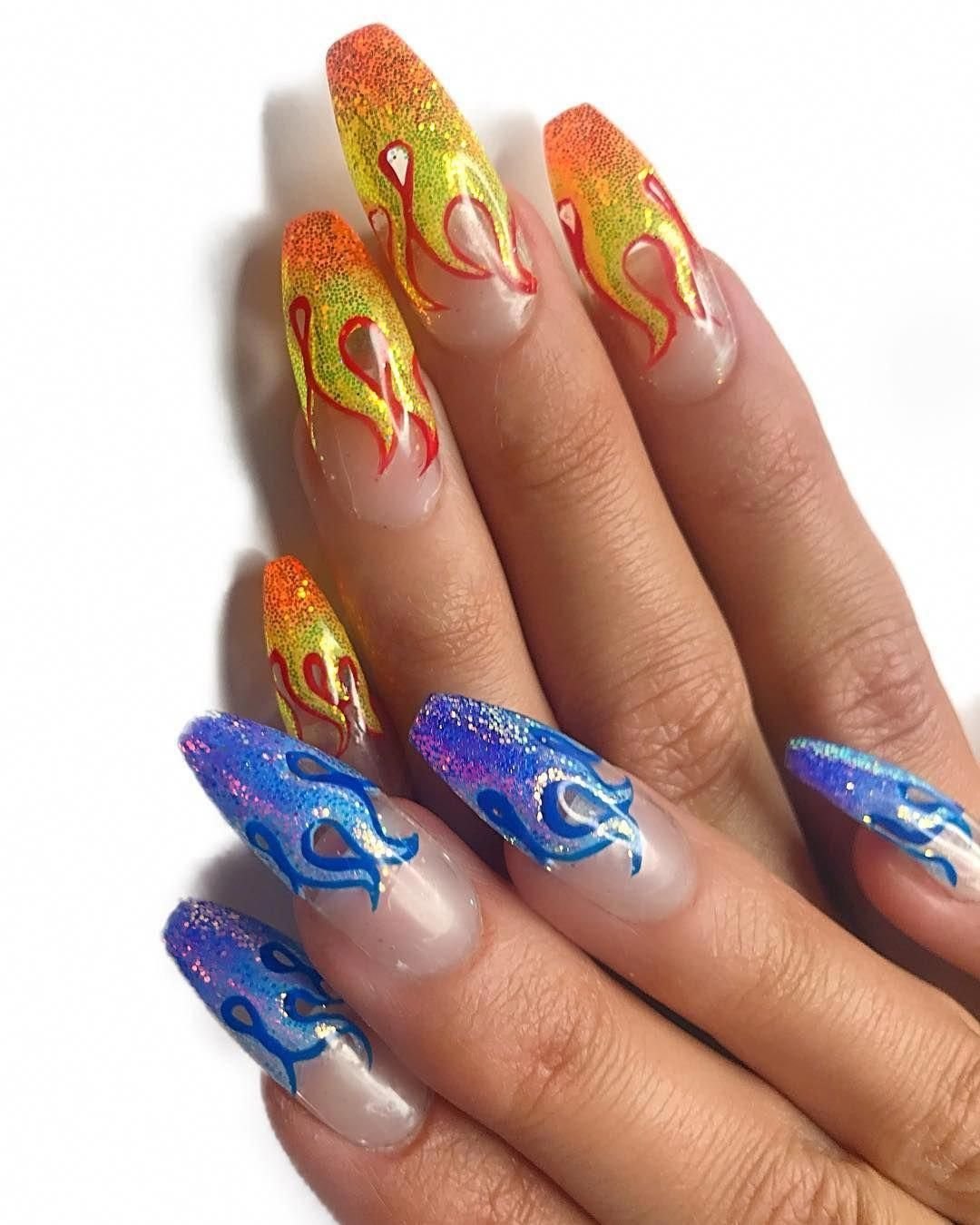 Огненный маникюр на длинные ногти