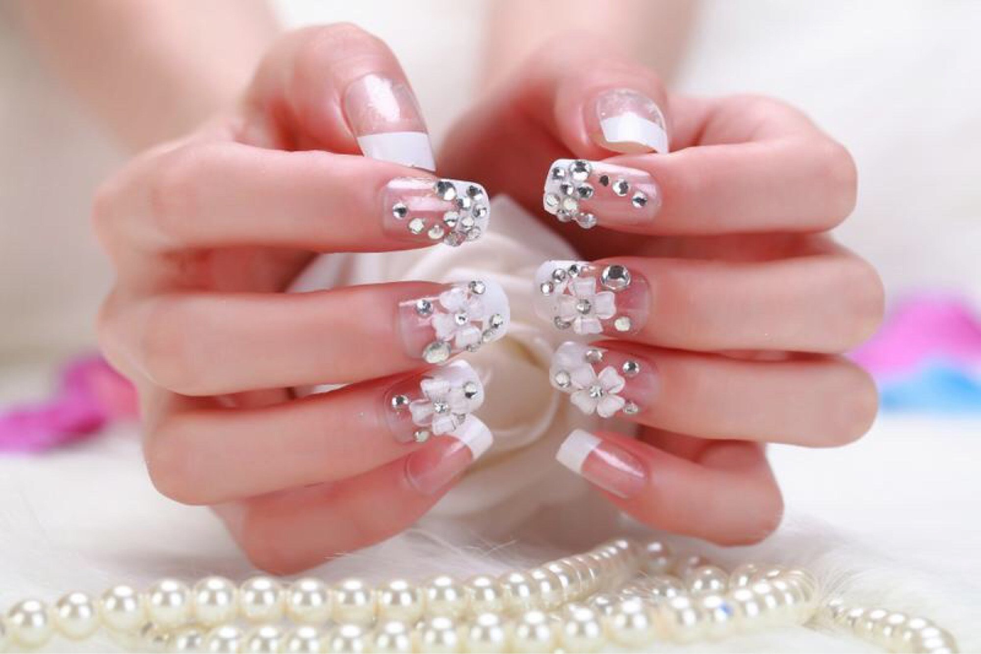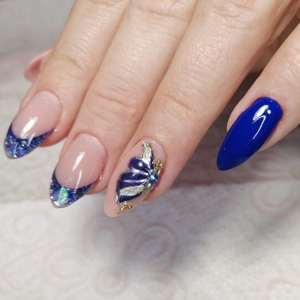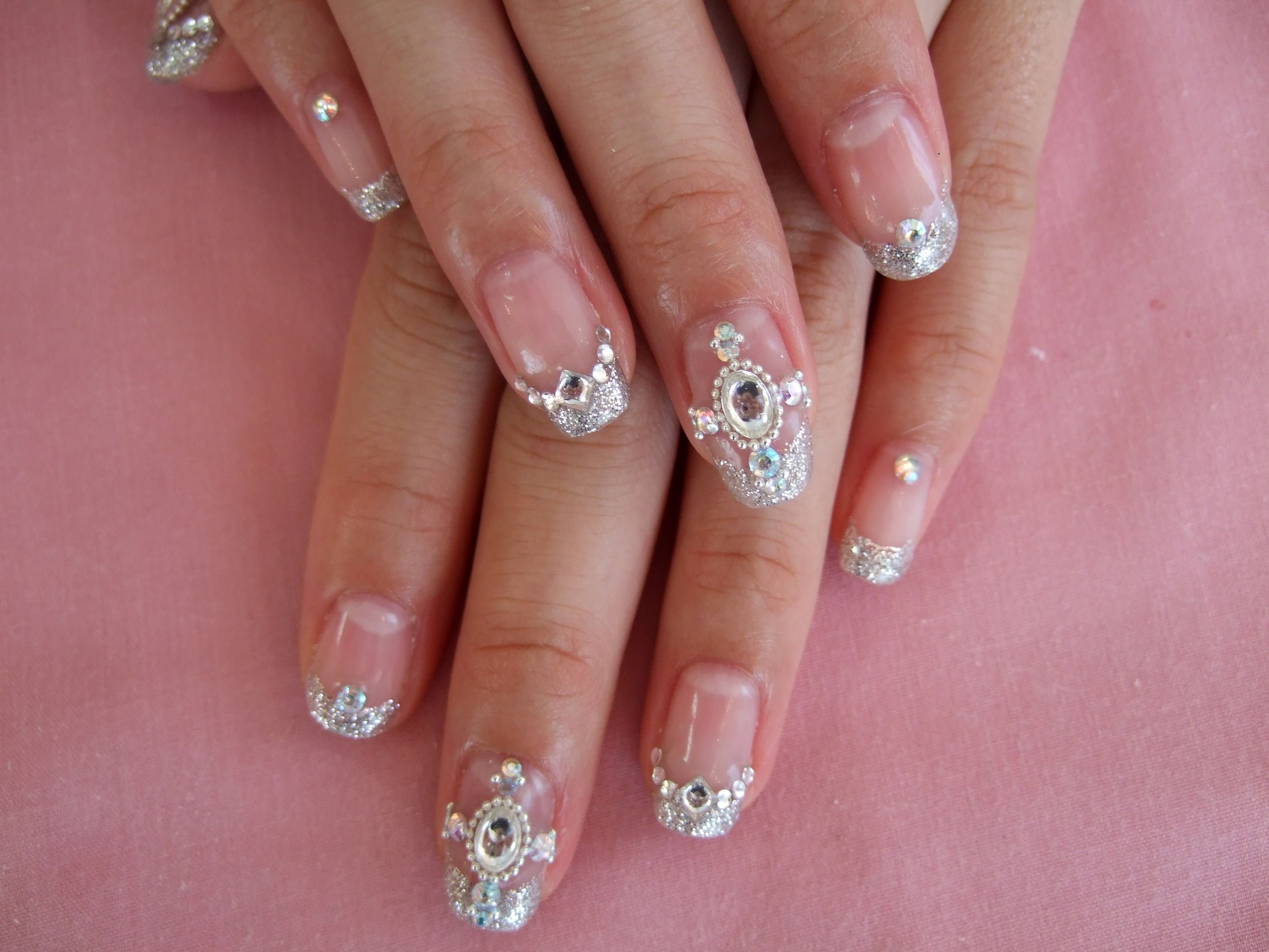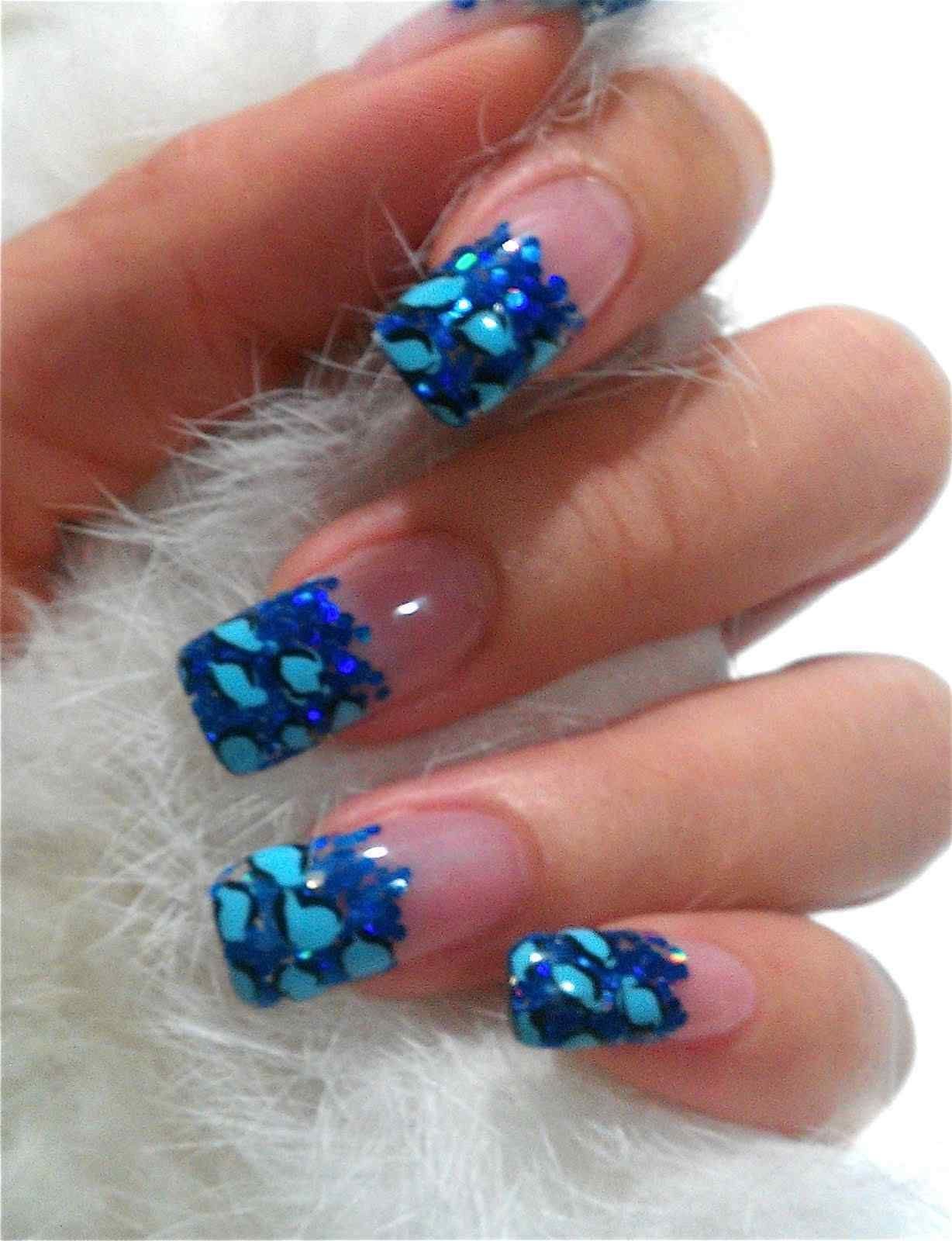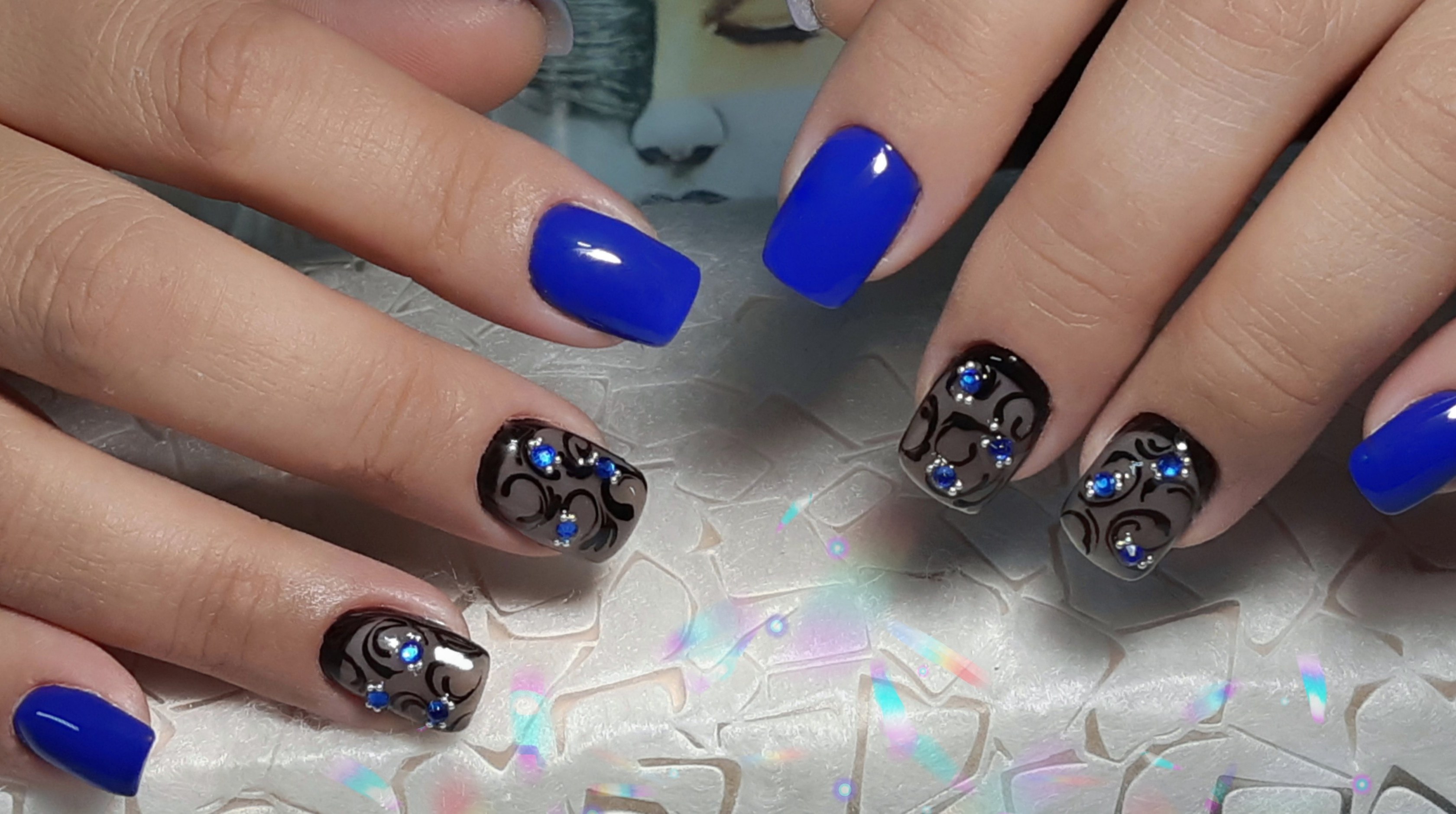 Белый френч с искусственными синими камнями на ногтях (60 фото)