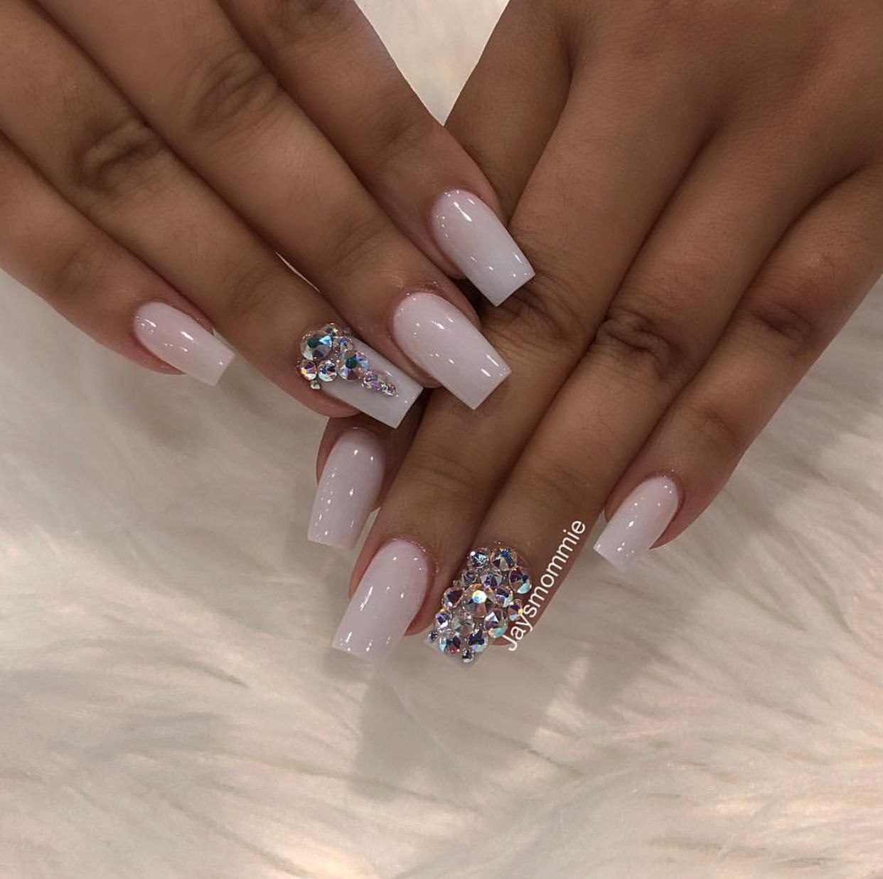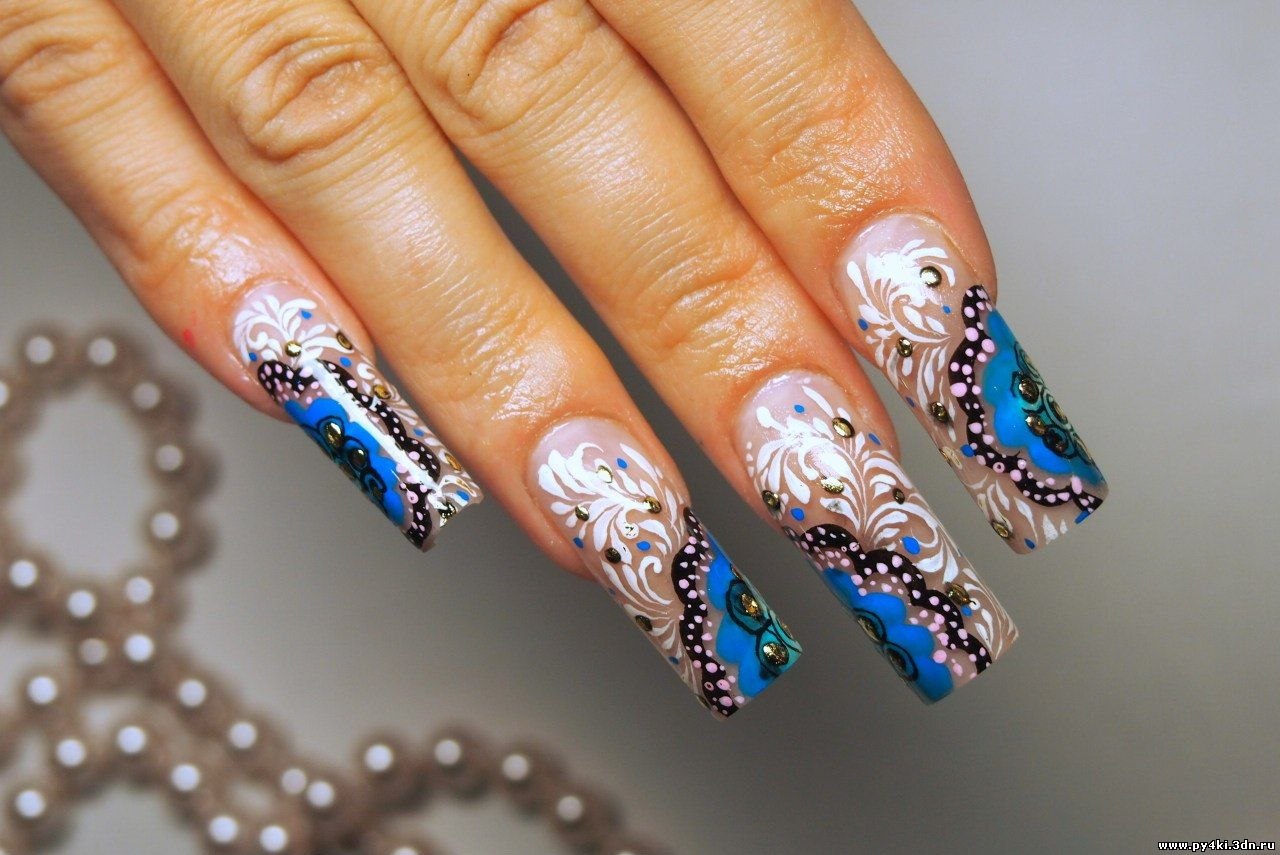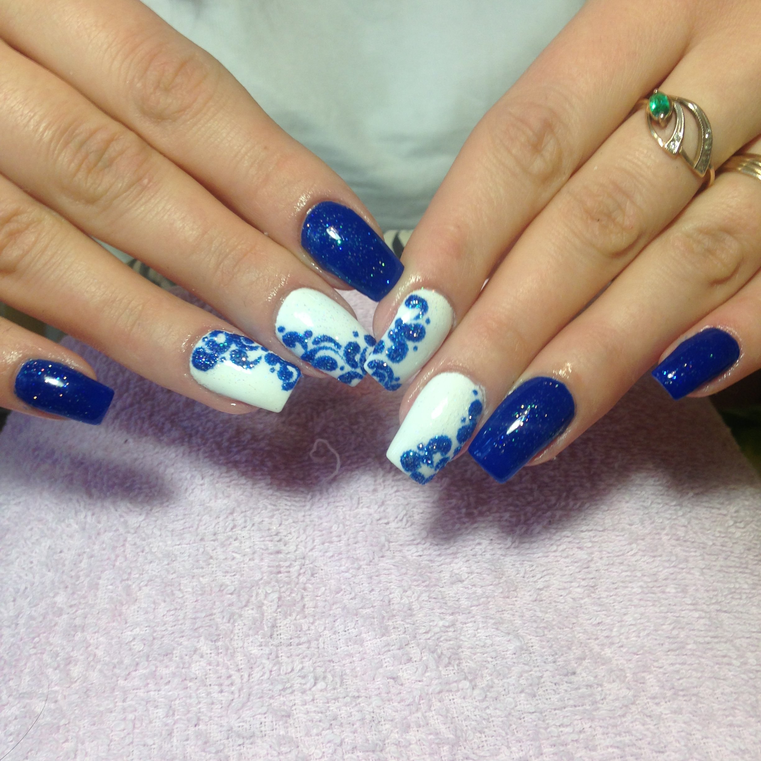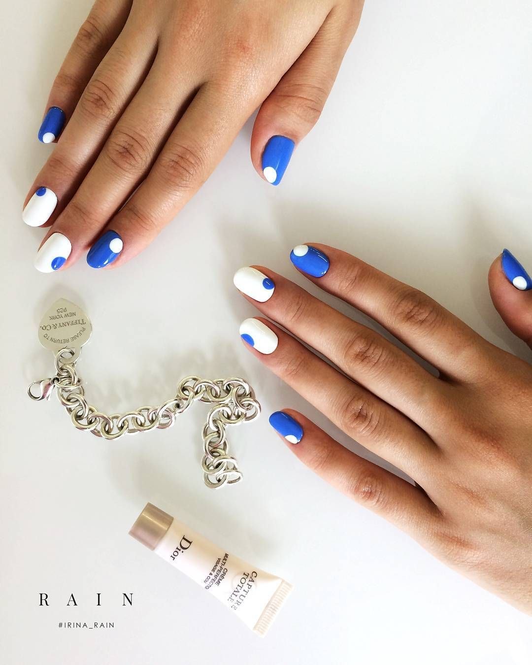 Белый френч с искусственными синими камнями на ногтях (60 фото)