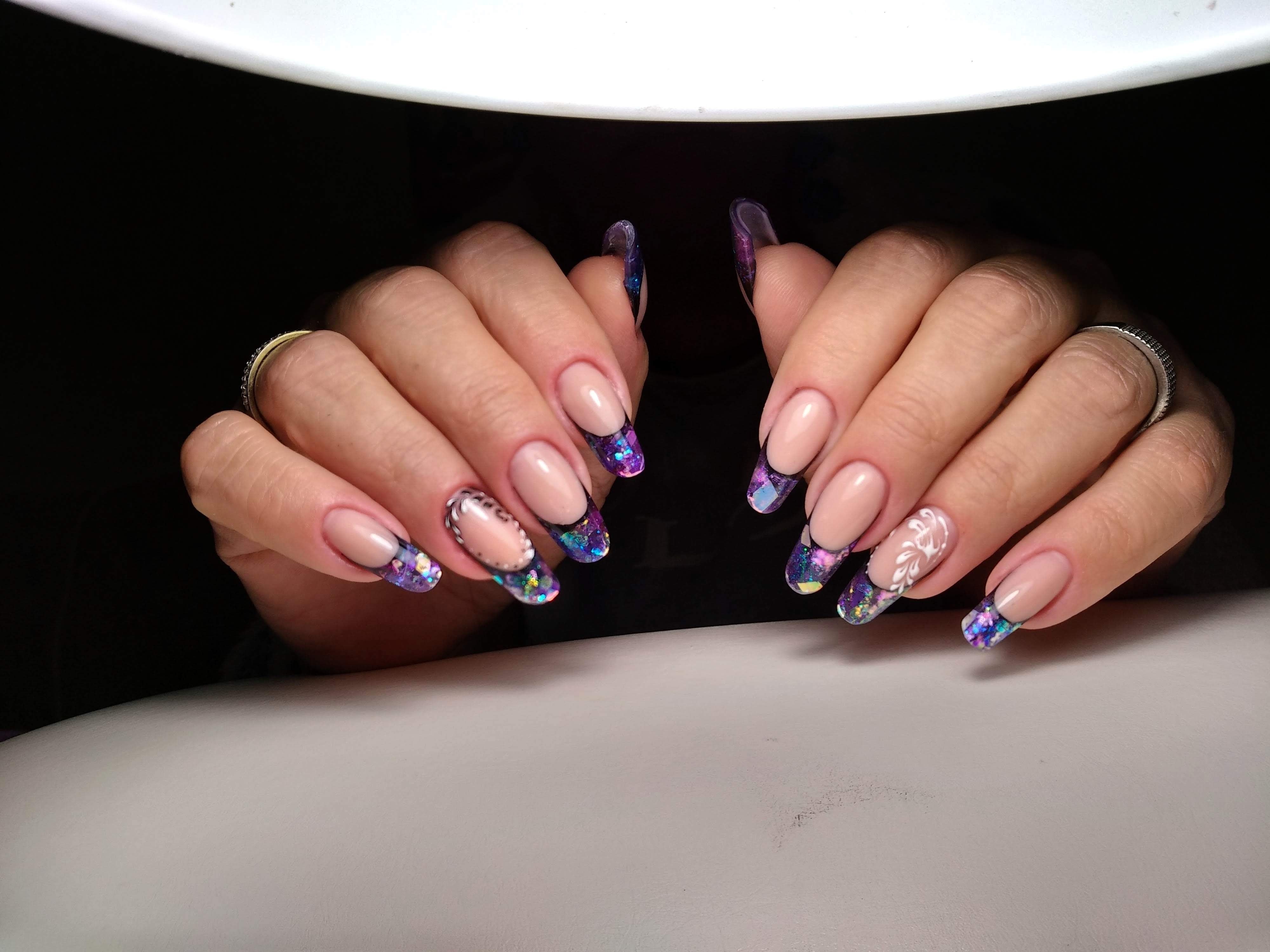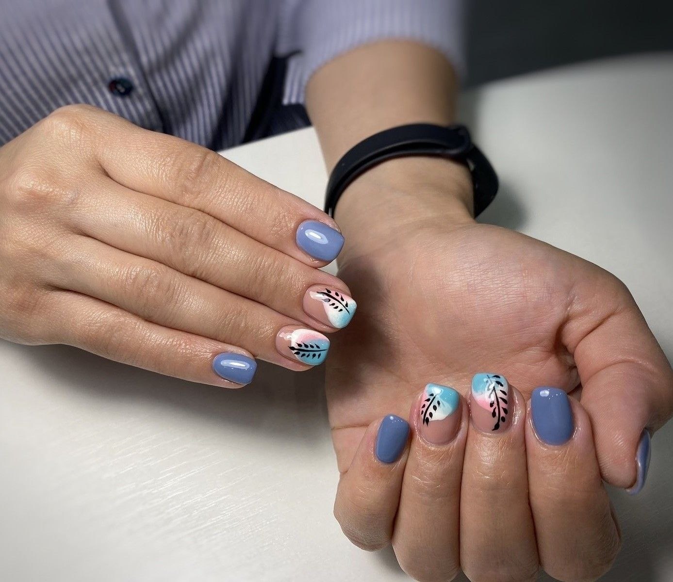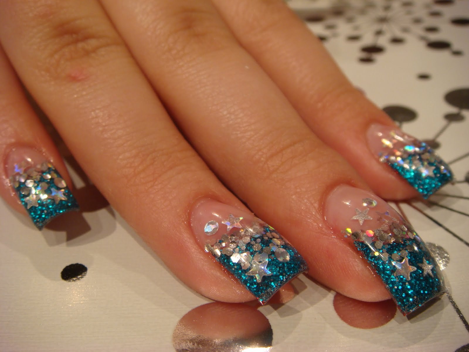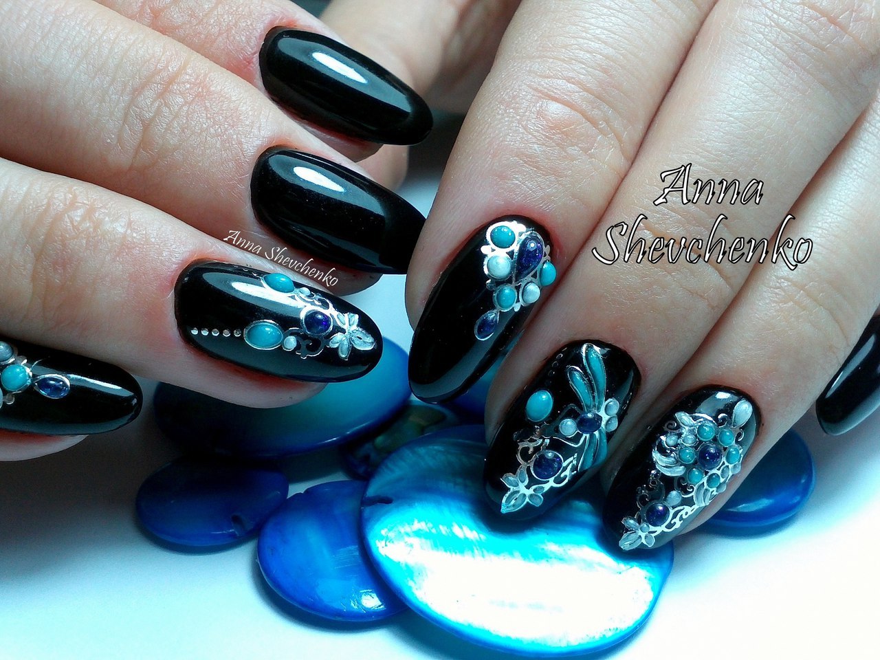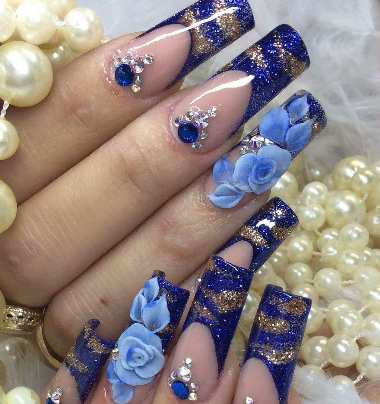 Белый френч с искусственными синими камнями на ногтях (60 фото)