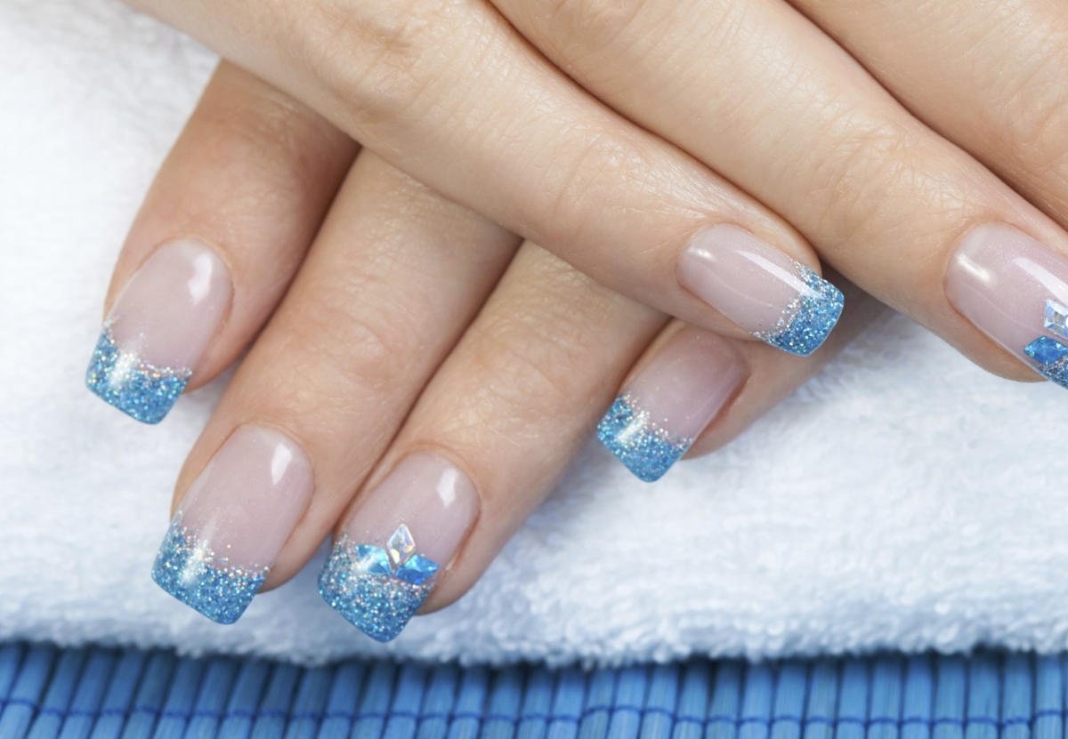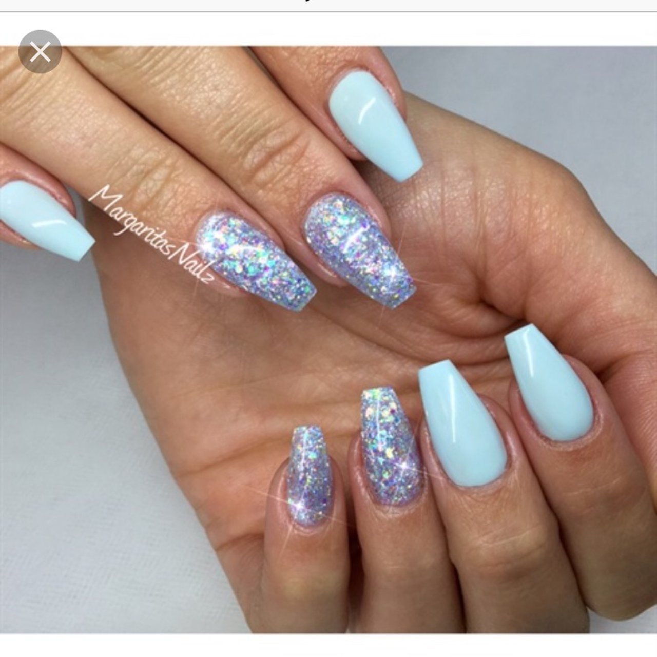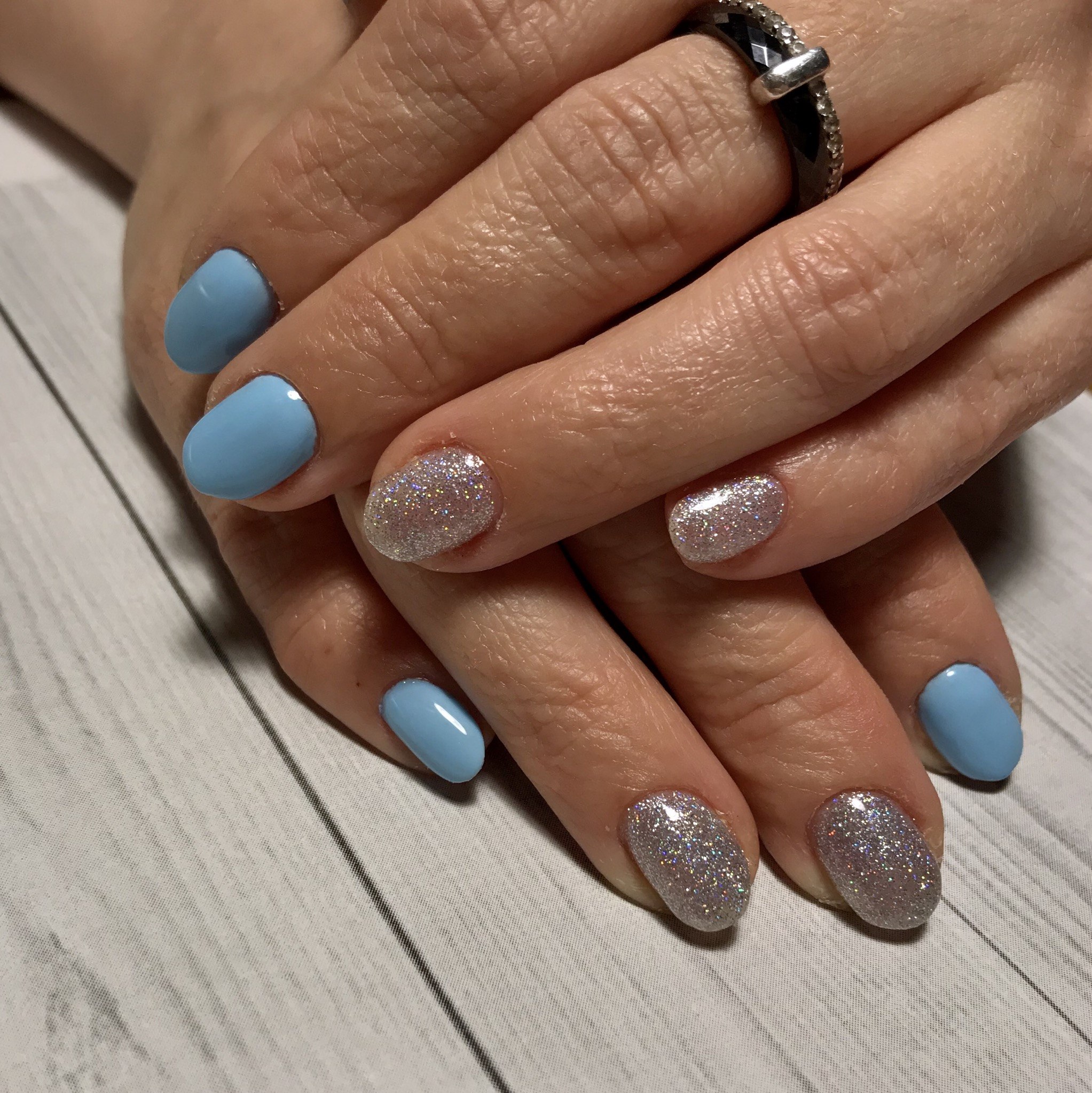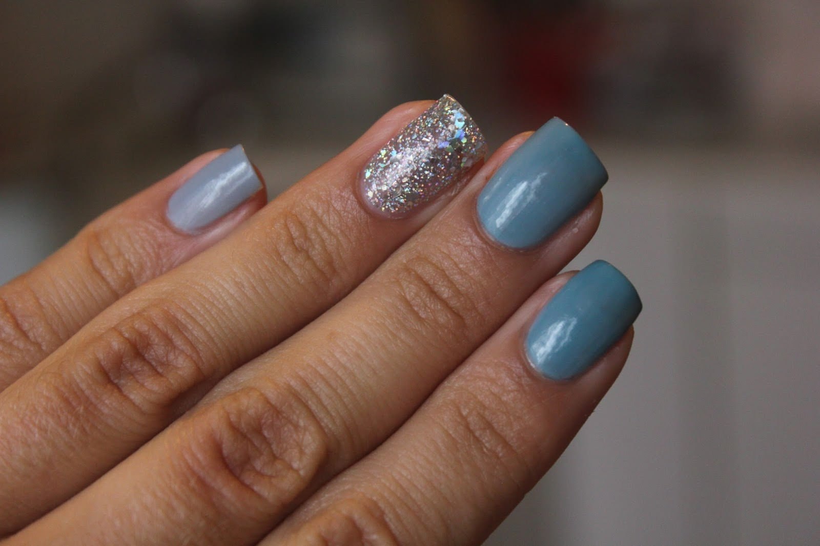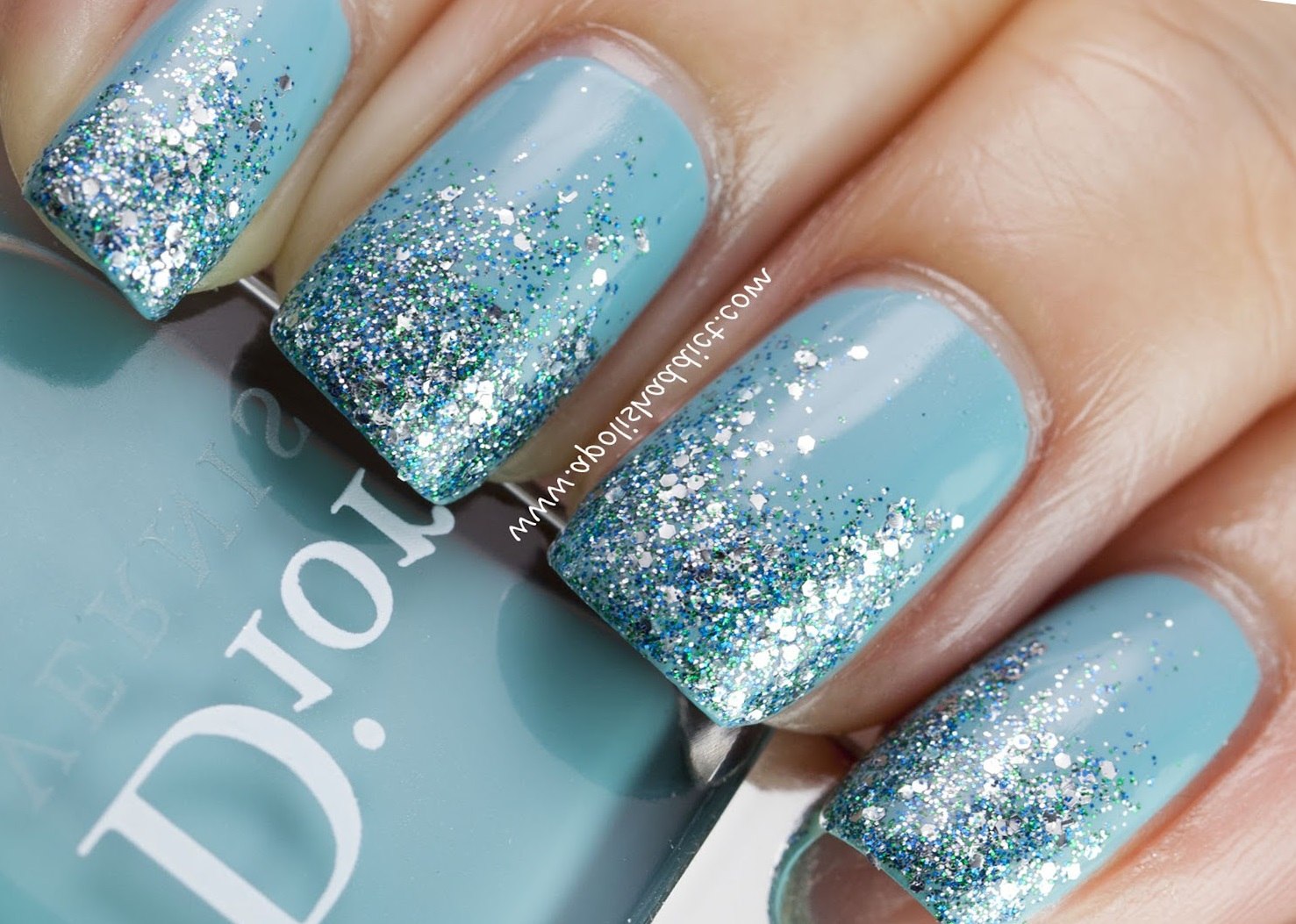 Маникюр дизайн нежный голубой с блестками (46 фото)