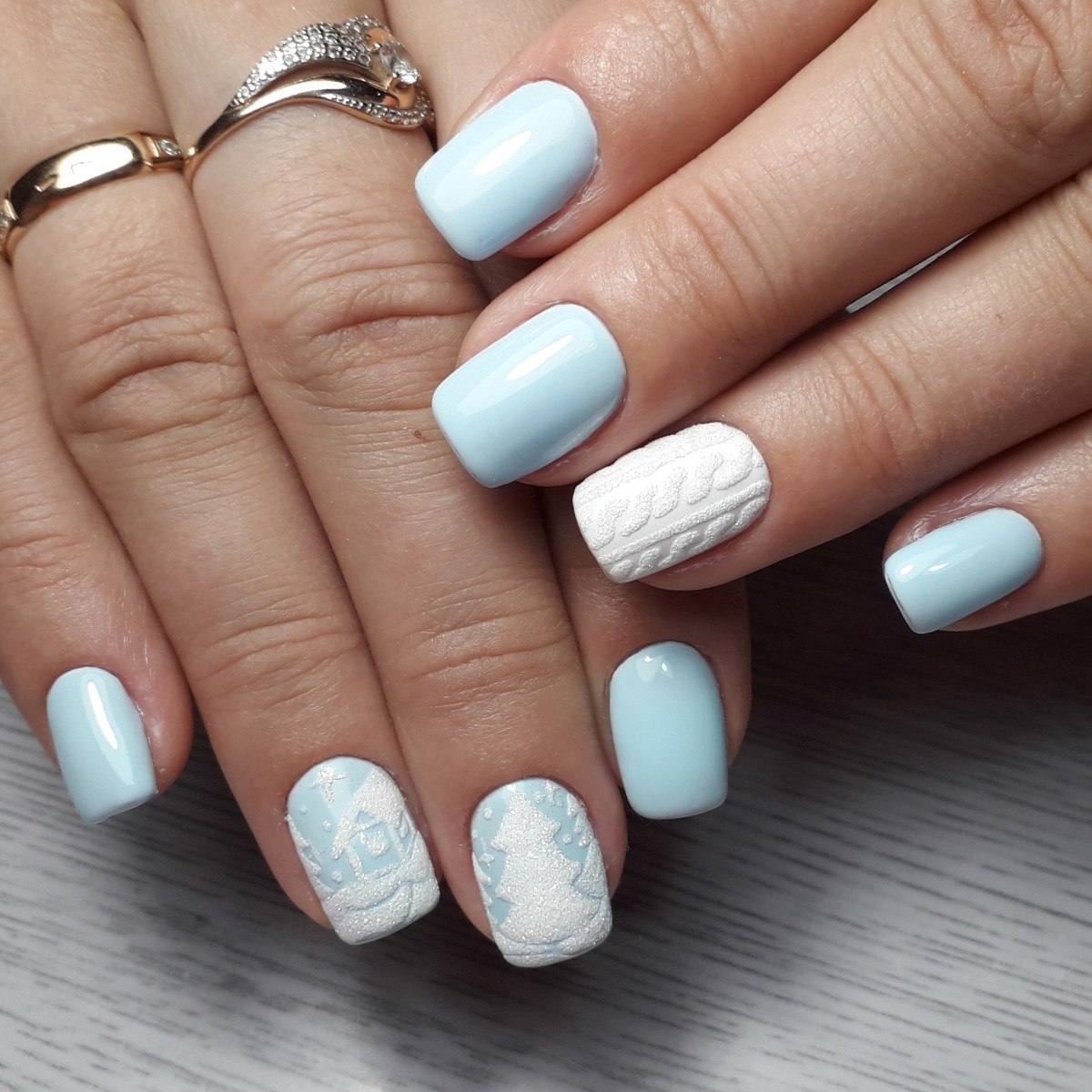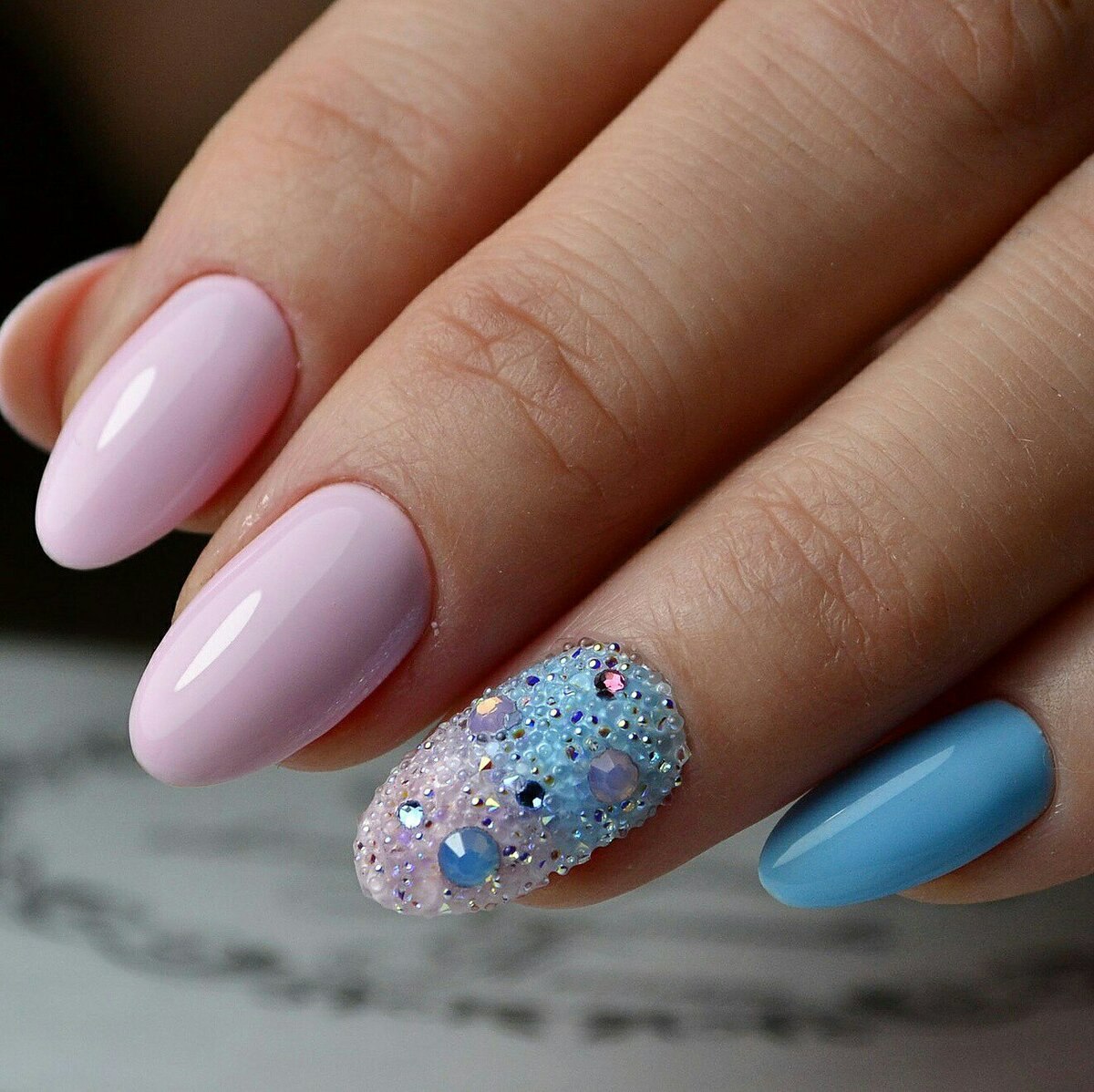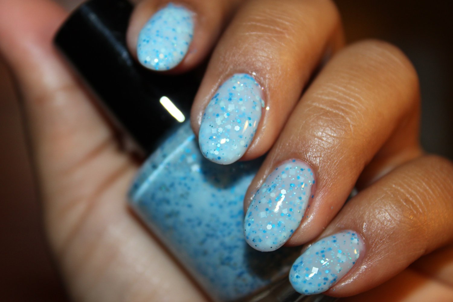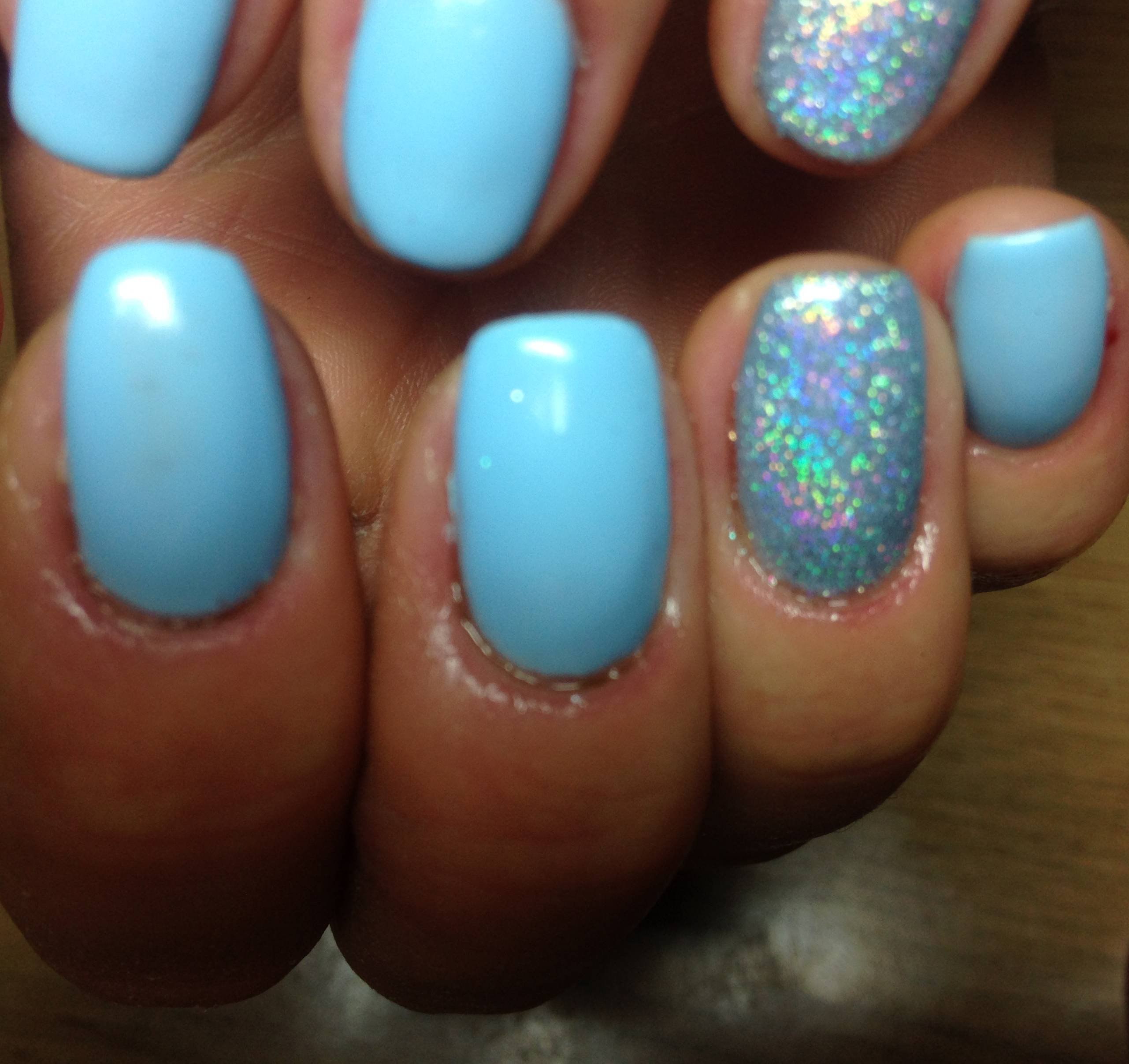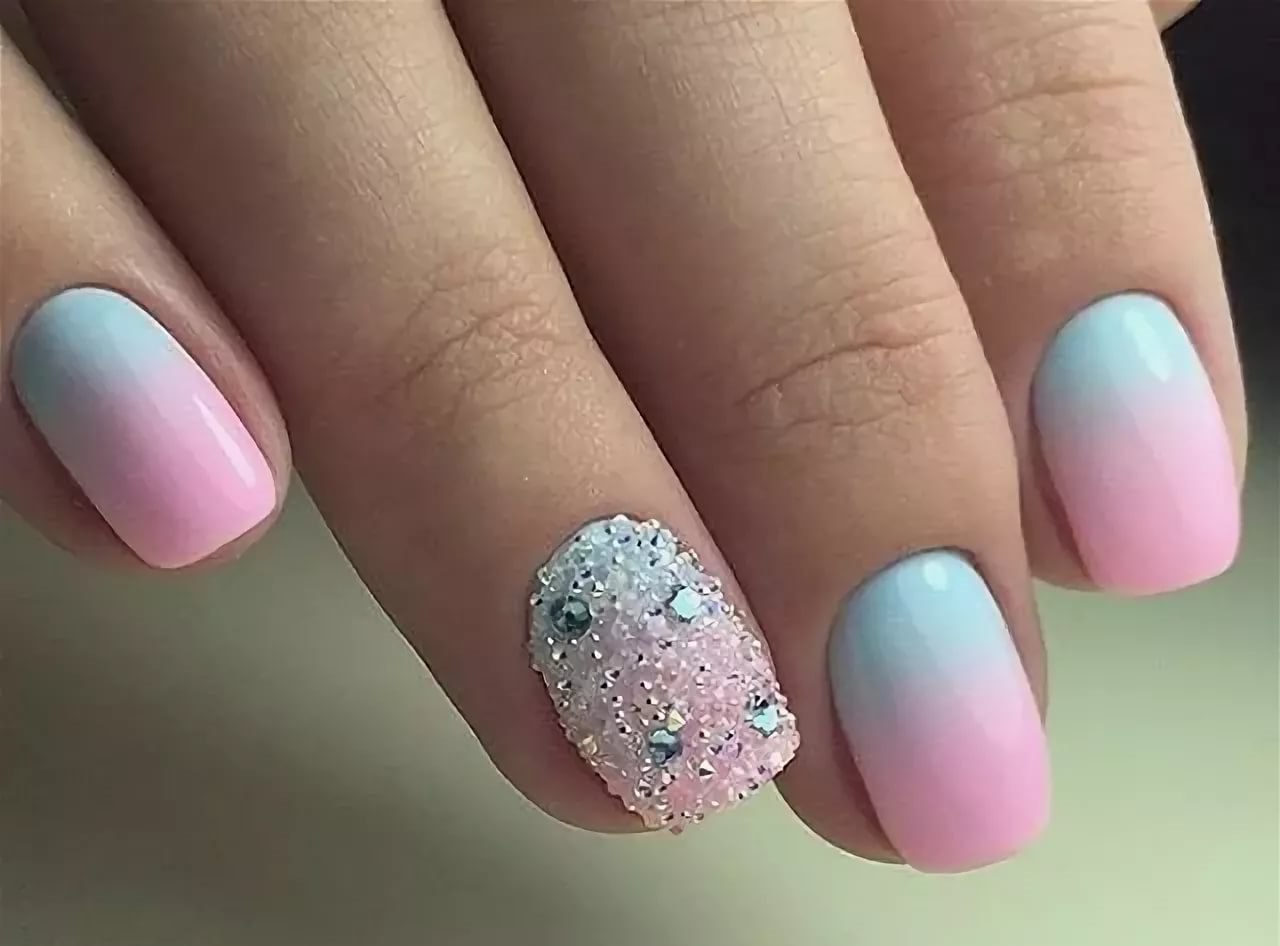 Маникюр дизайн нежный голубой с блестками (46 фото)
