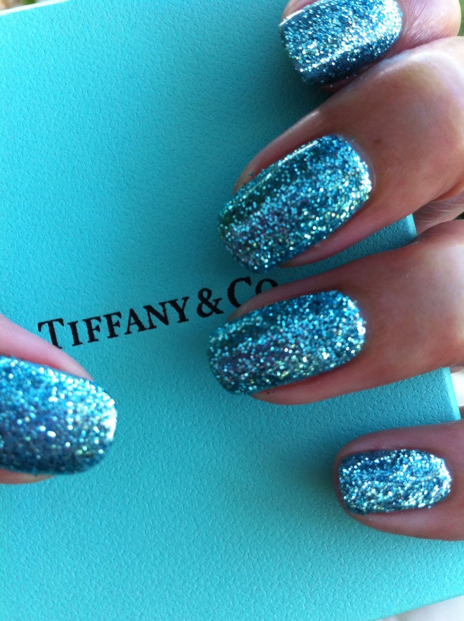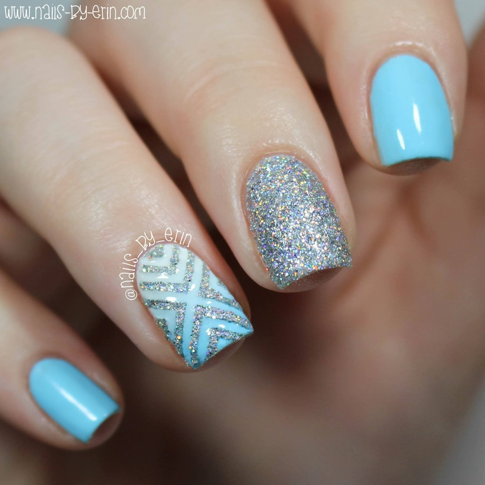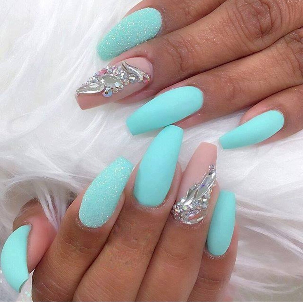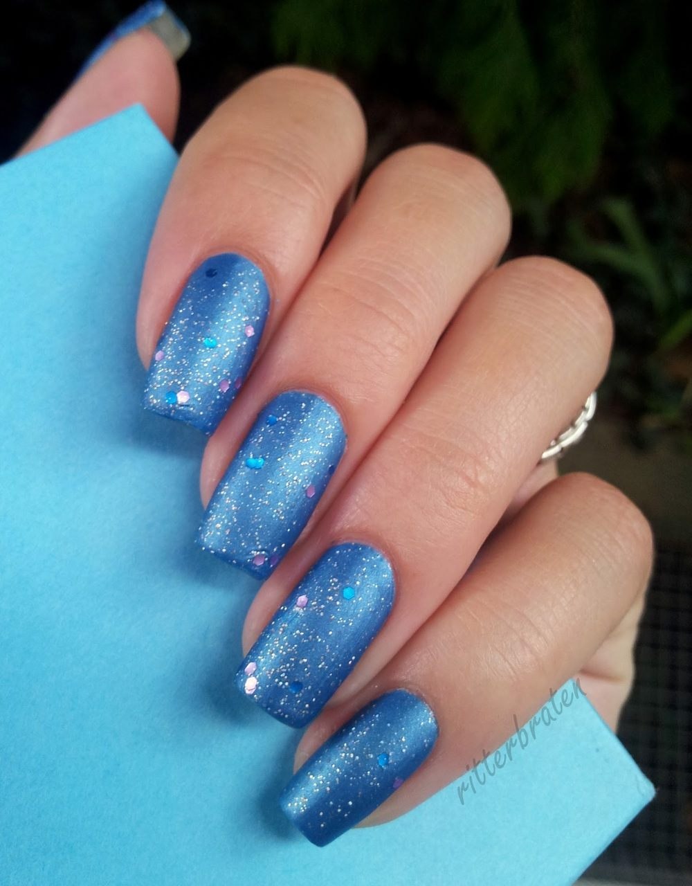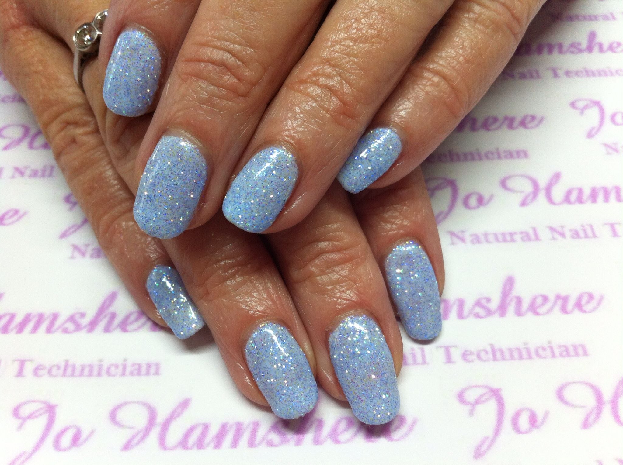 Маникюр дизайн нежный голубой с блестками (46 фото)