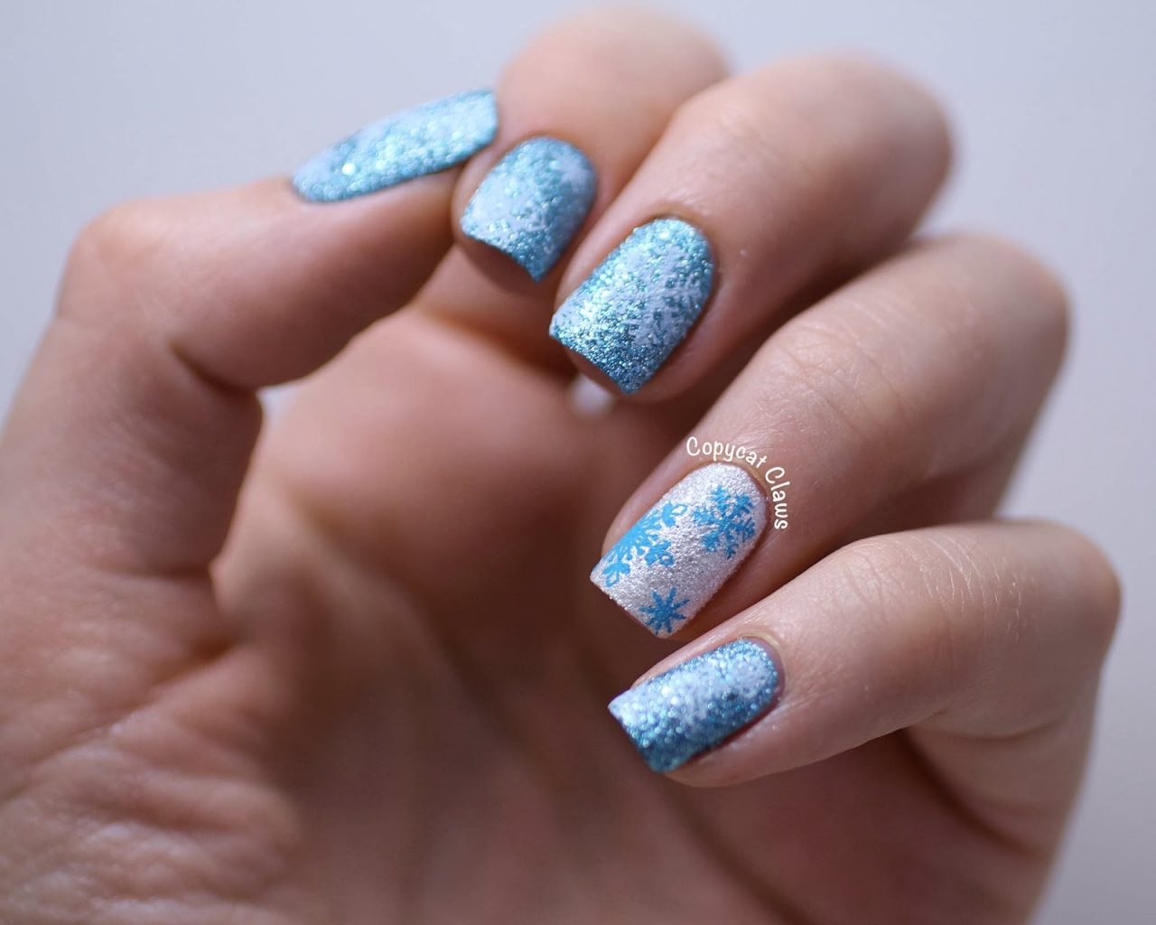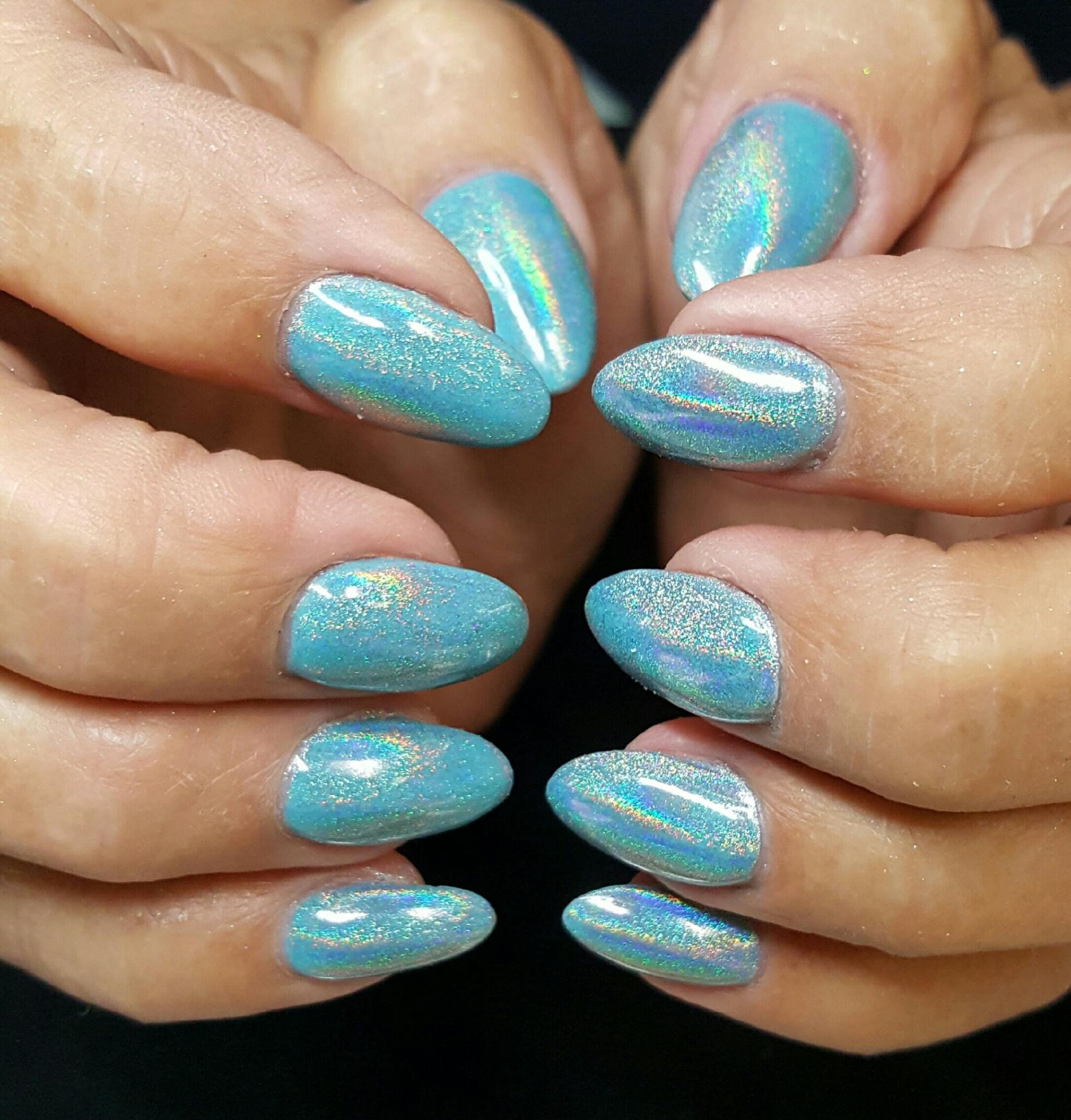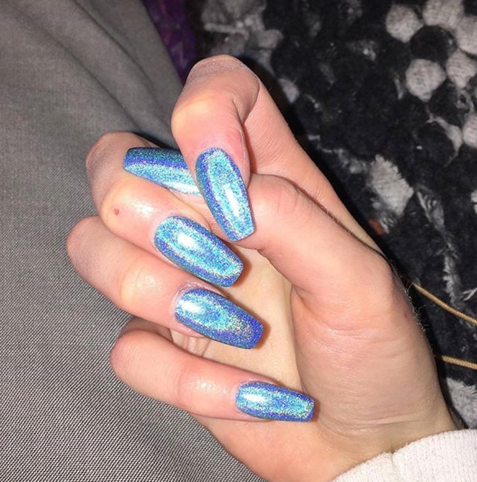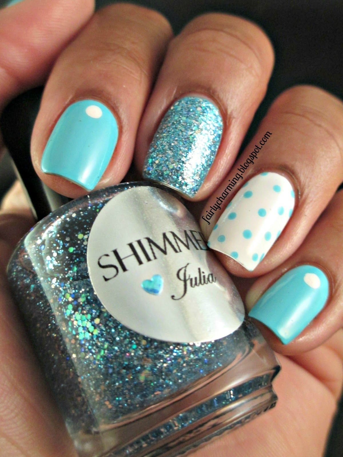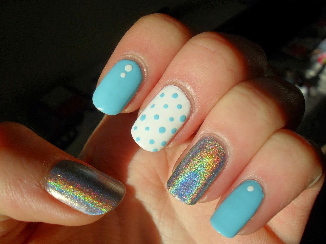 Маникюр дизайн нежный голубой с блестками (46 фото)