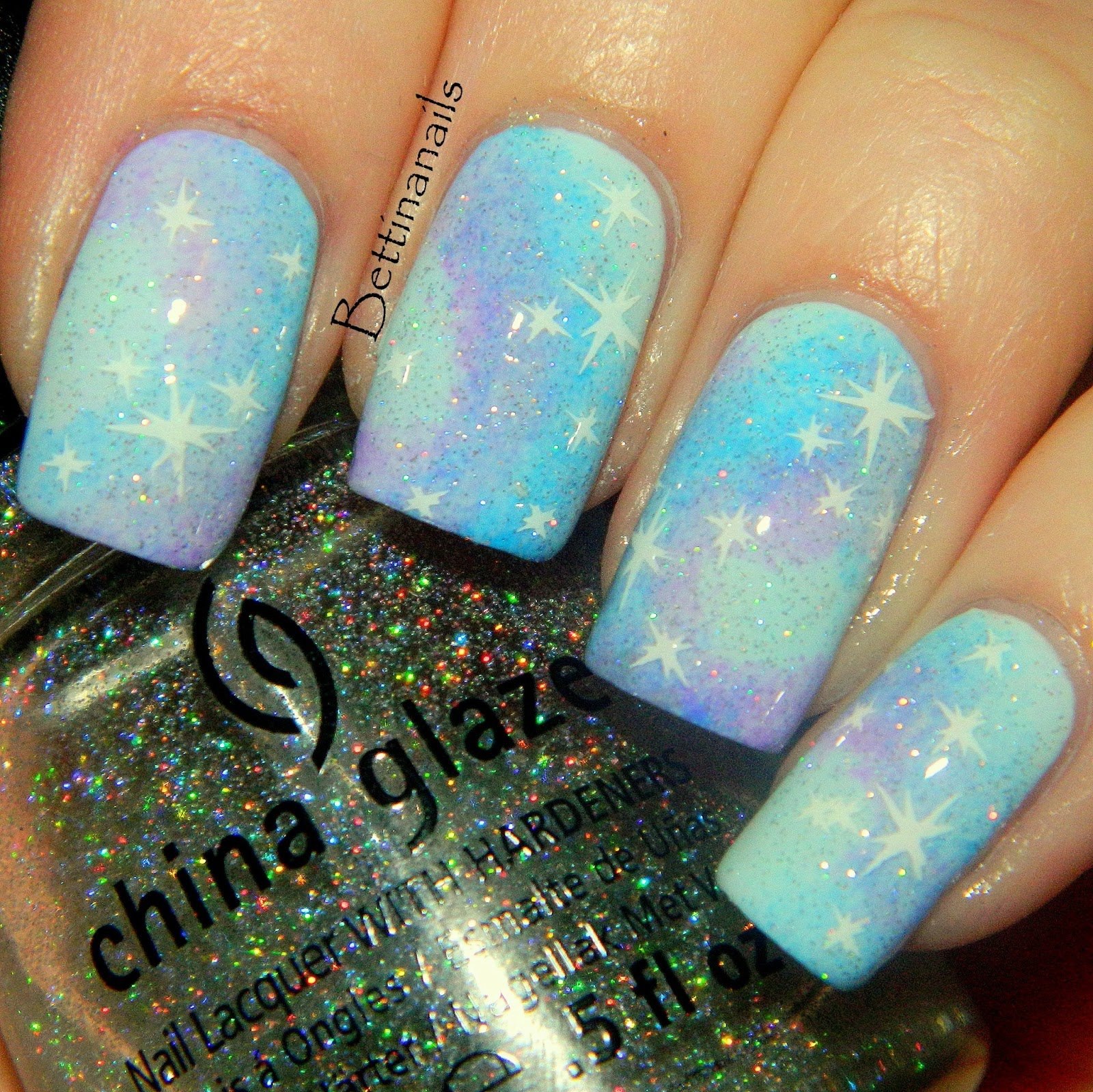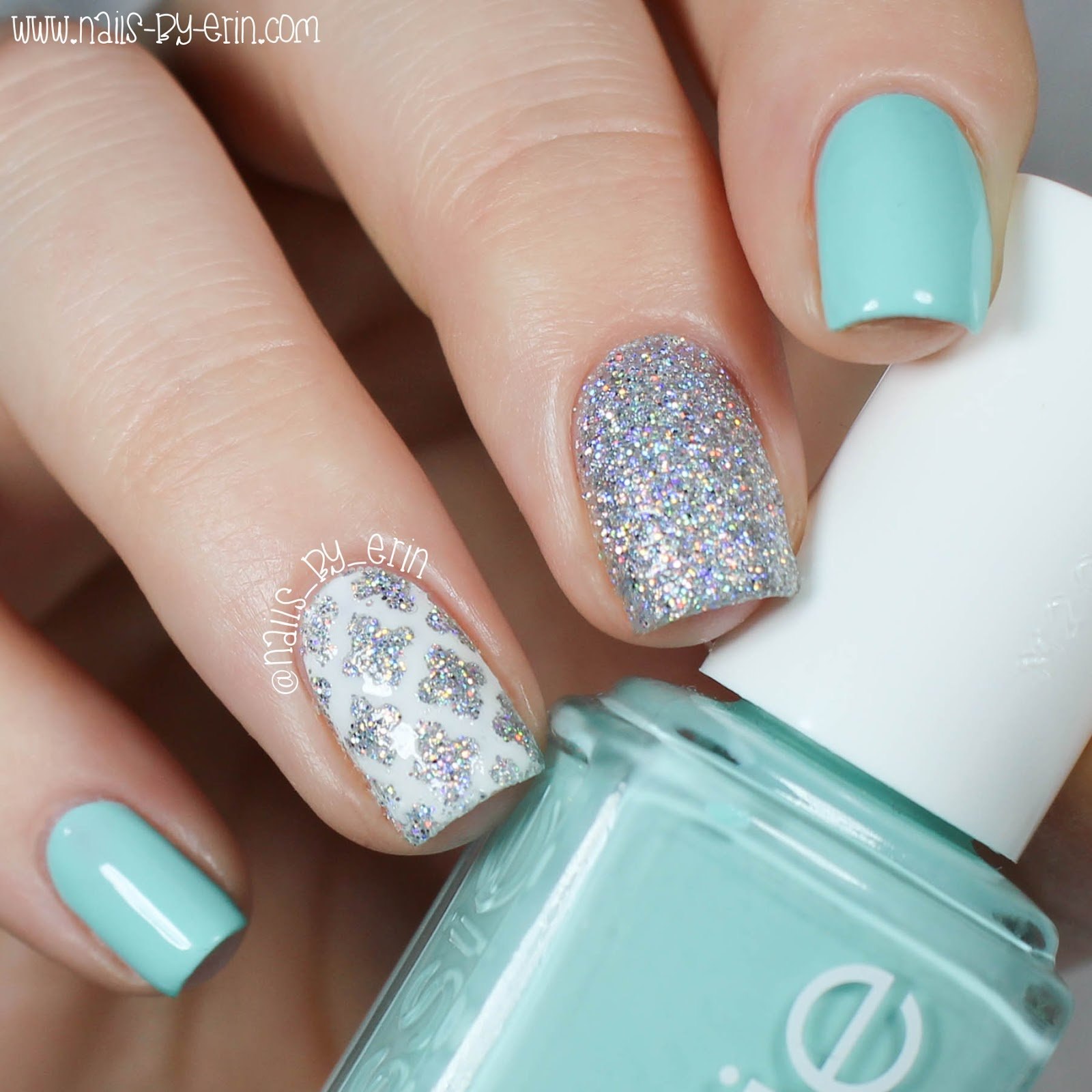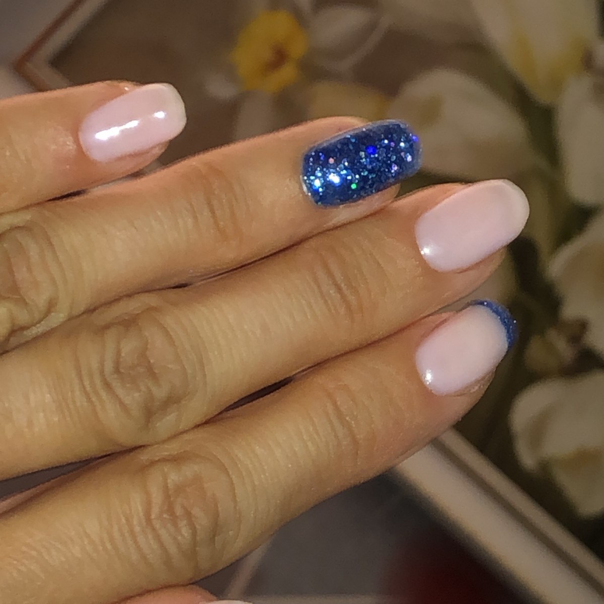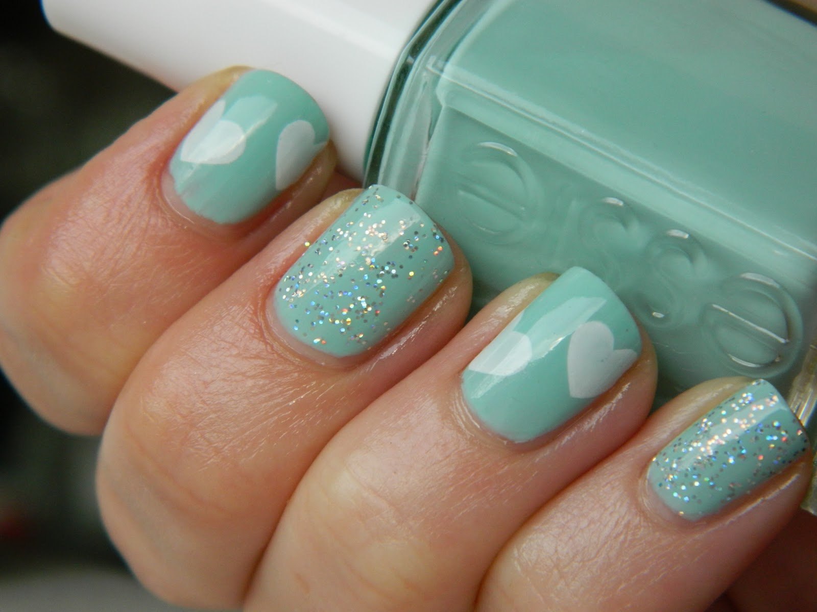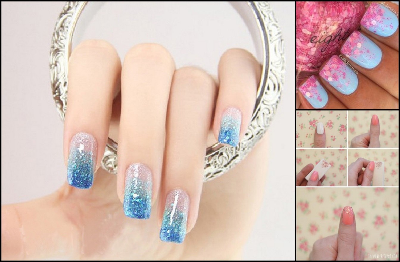 Маникюр дизайн нежный голубой с блестками (46 фото)