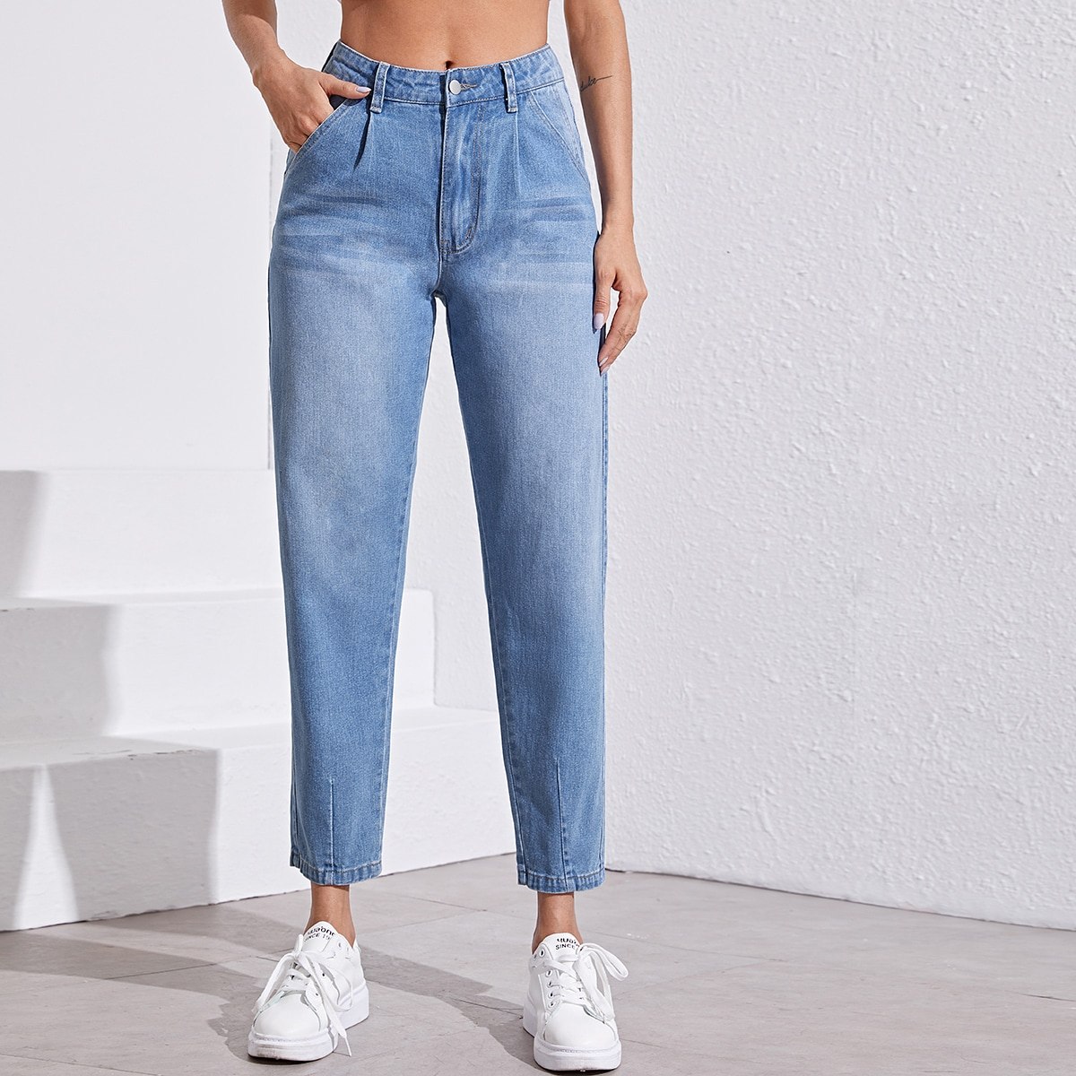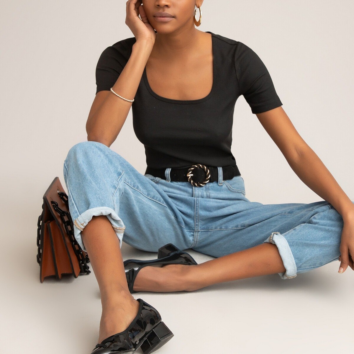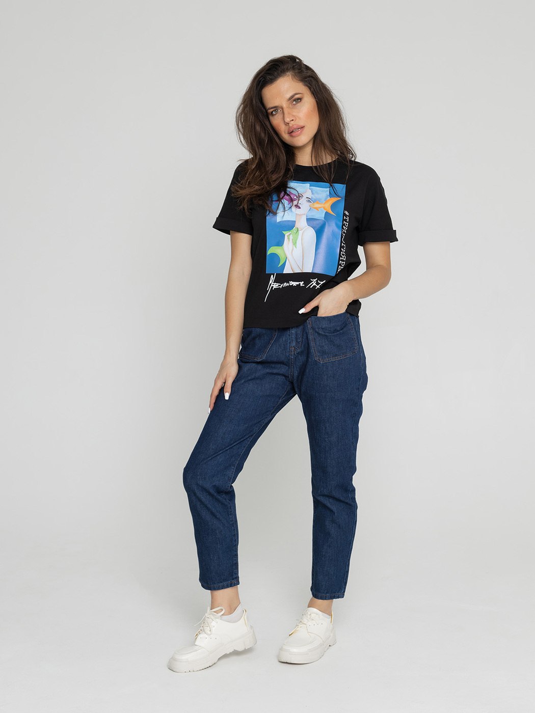 Черные джинсы мом на белом фоне