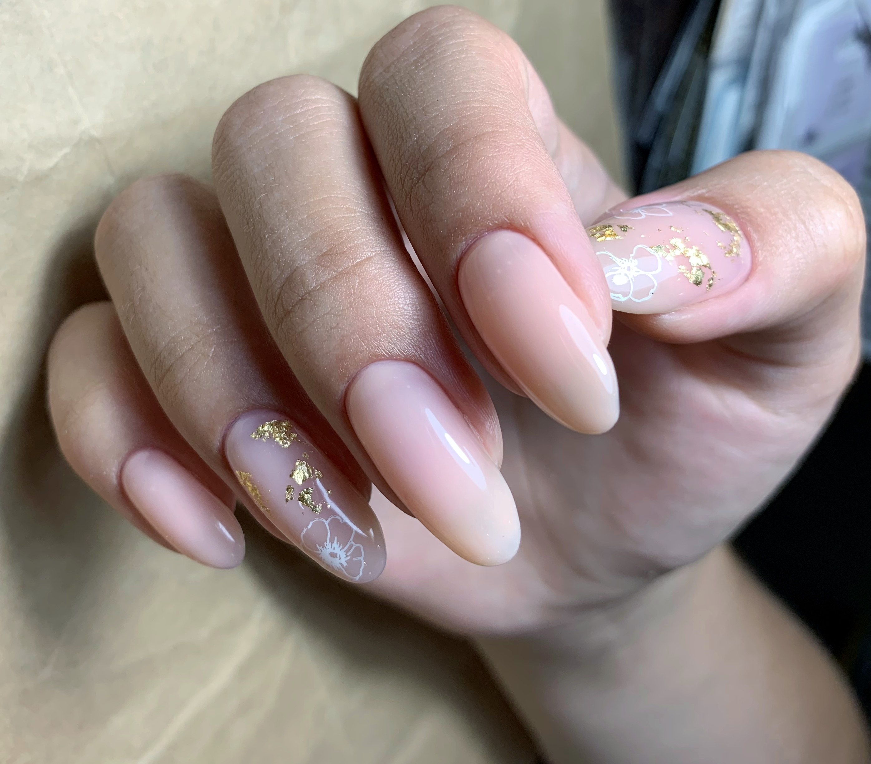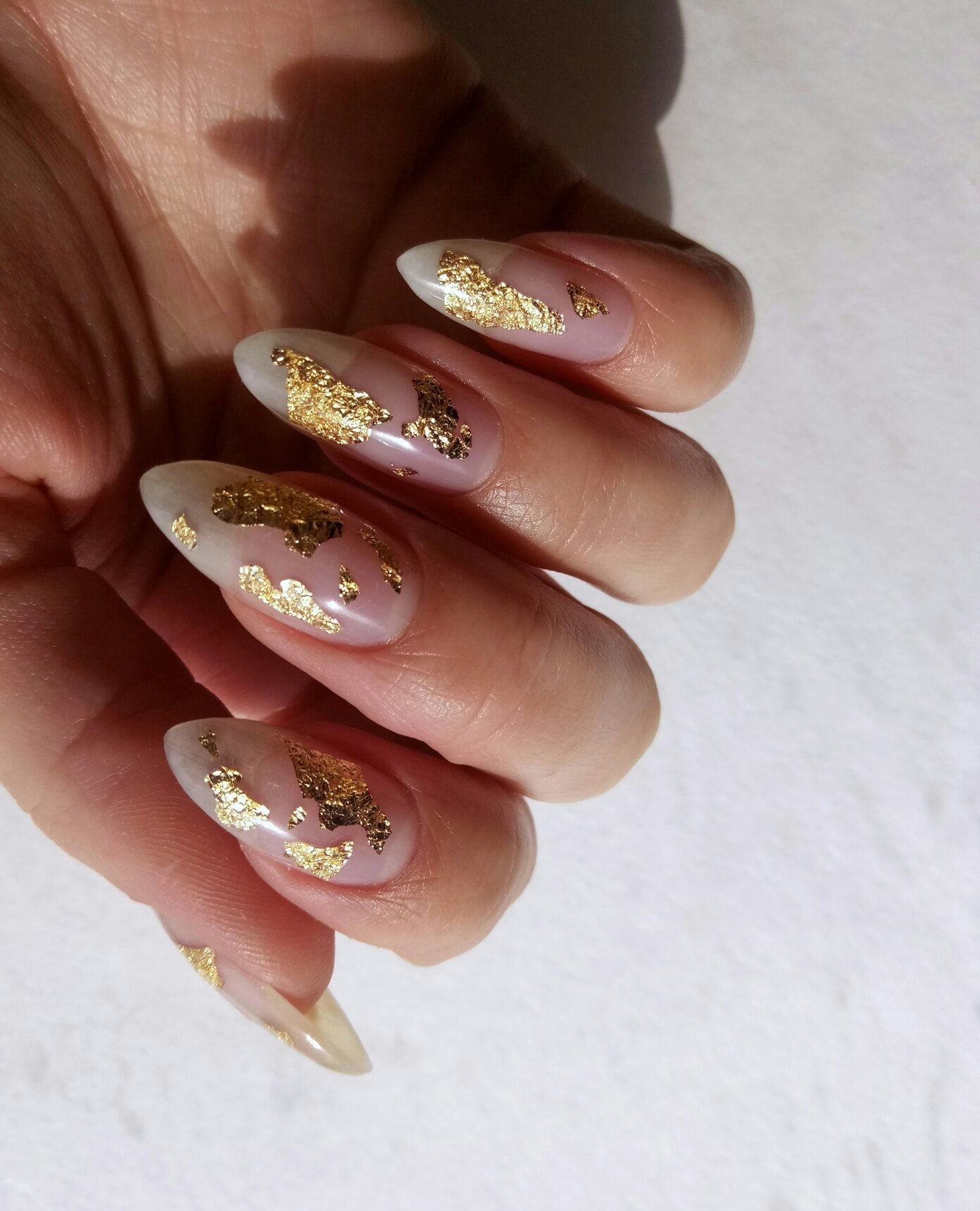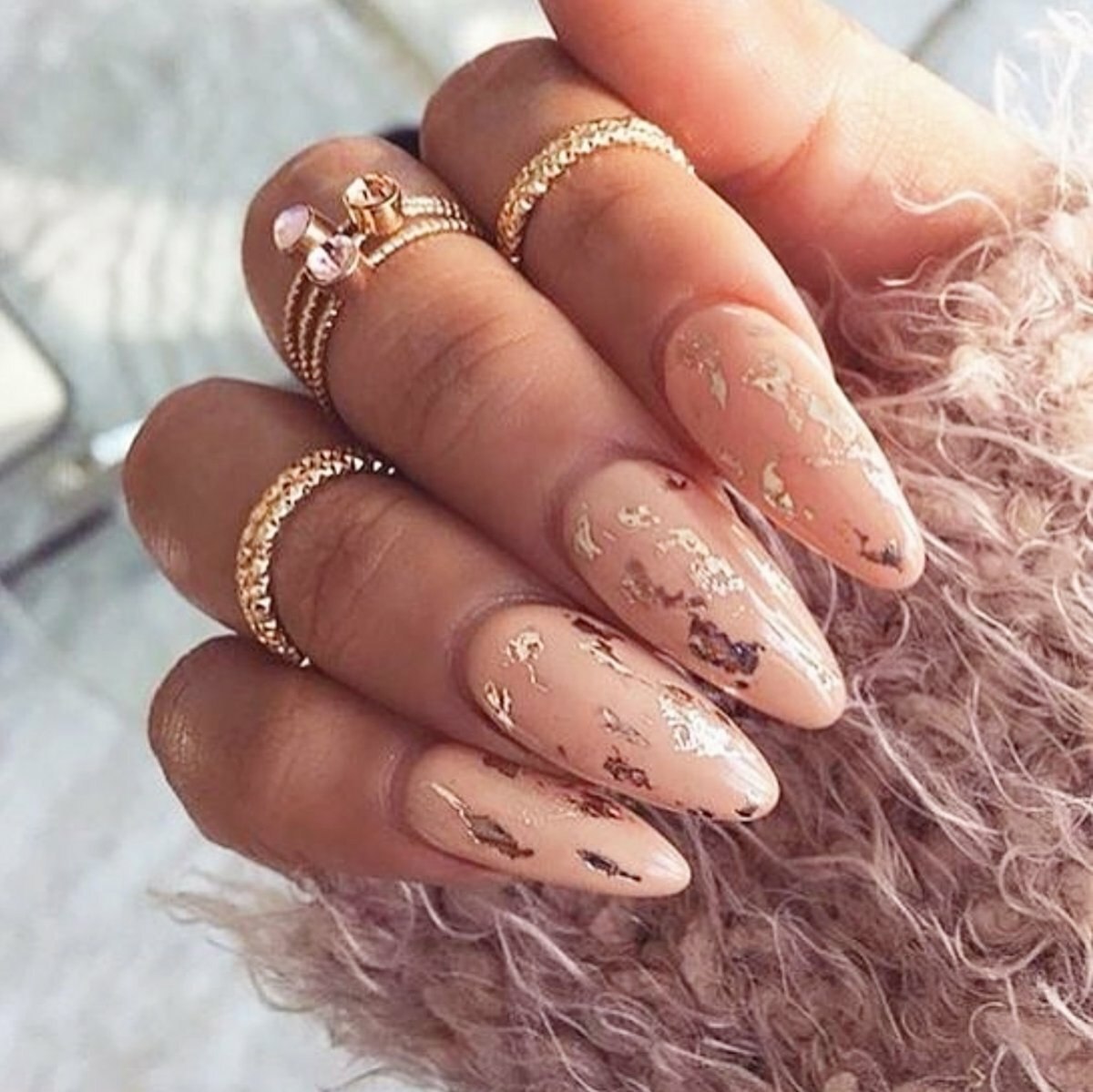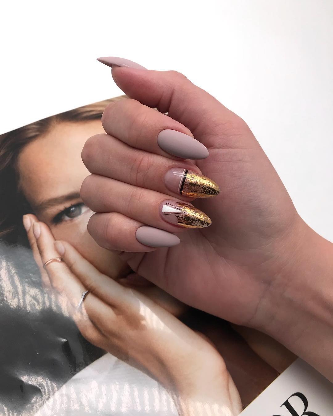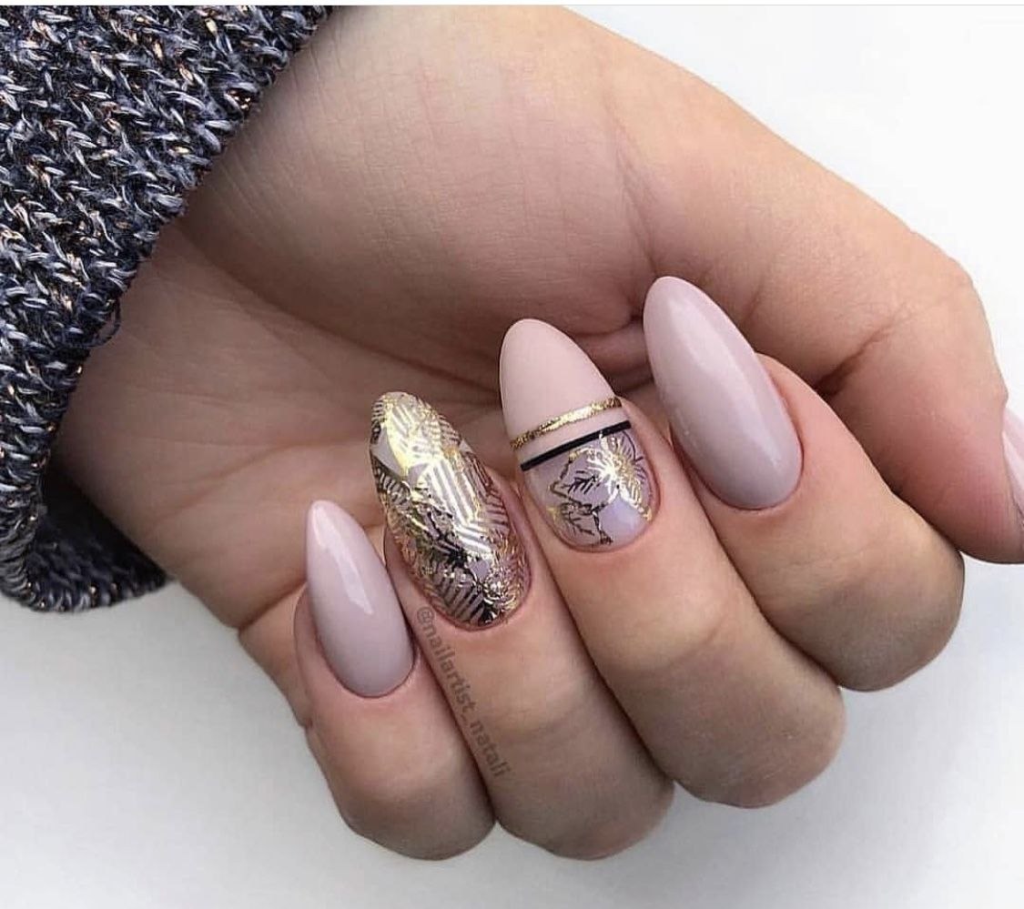 Маникюр нюд с фольгой миндаль