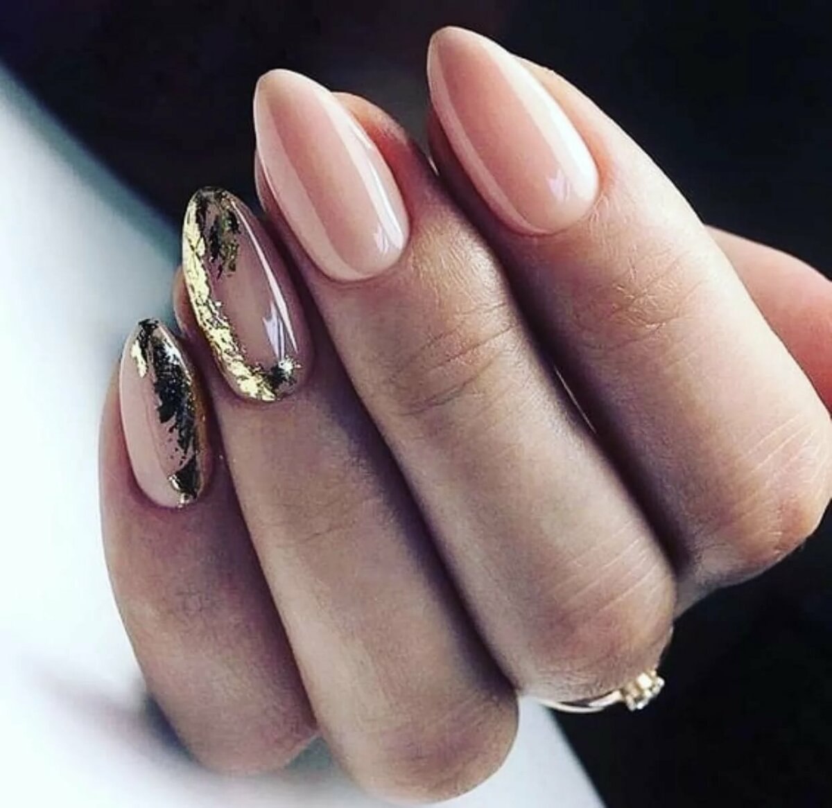Нюдовый маникюр с золотой фольгой