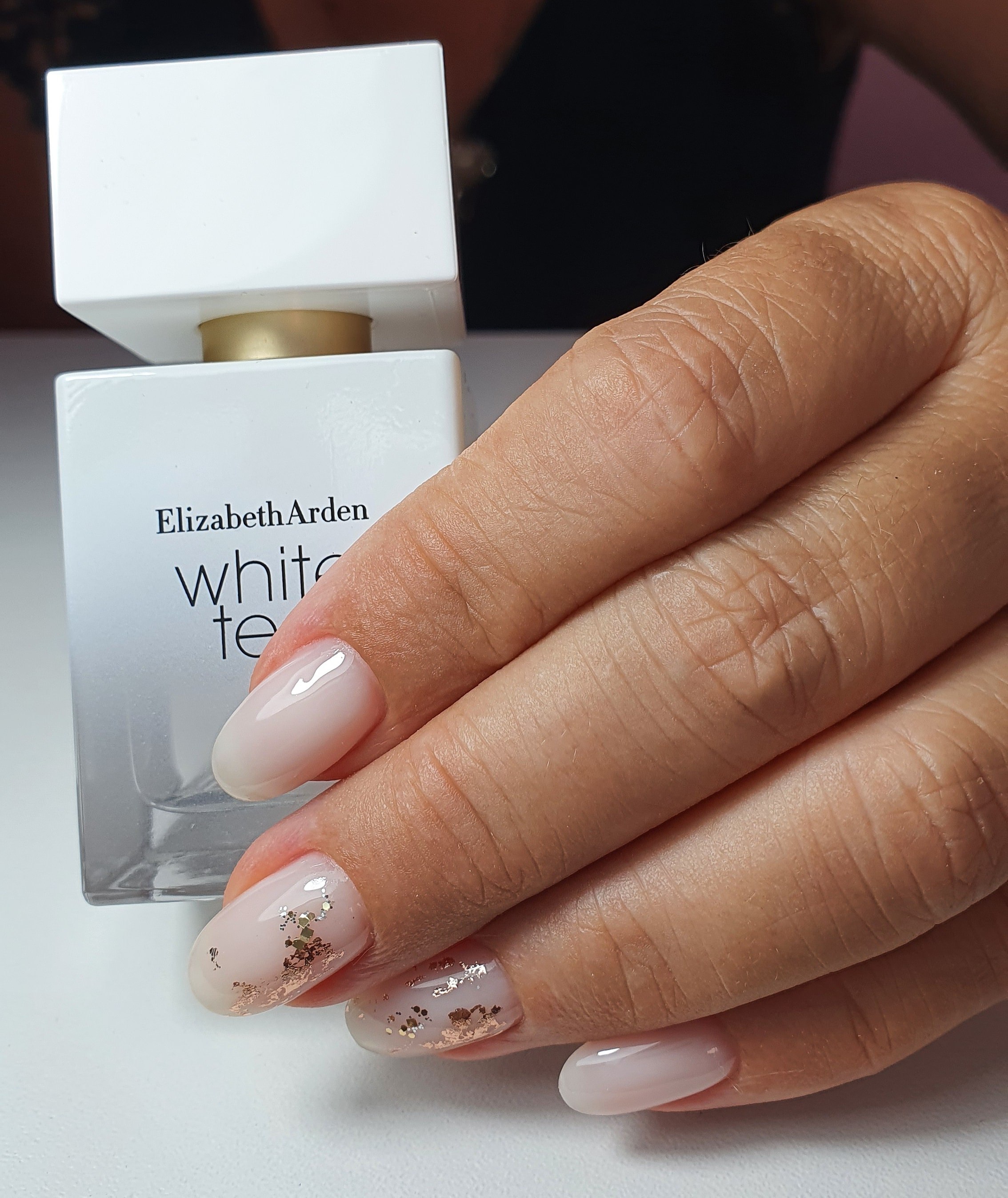 Маникюр нюд с фольгой