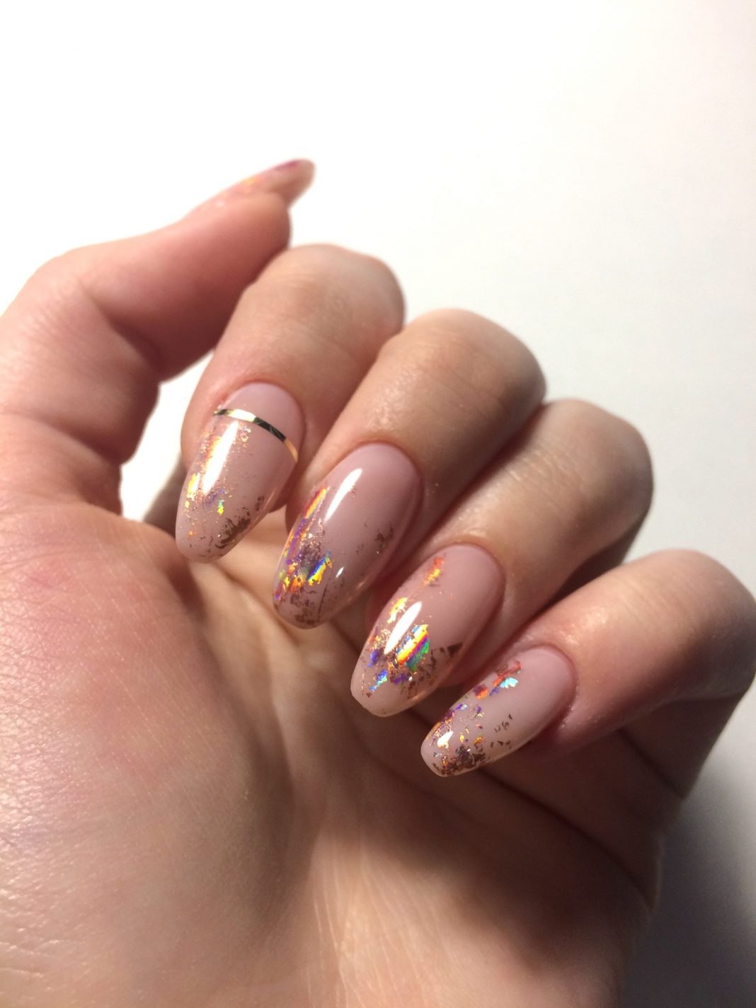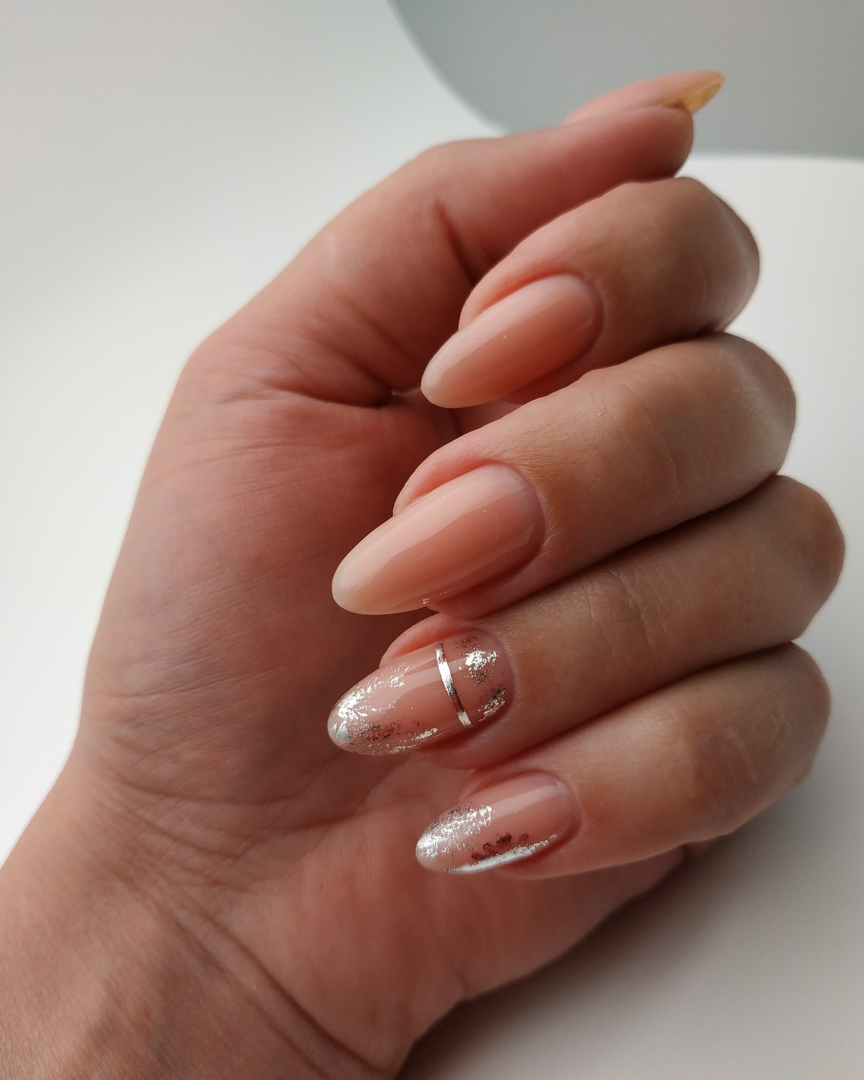 Нюдовый маникюр с фольгой