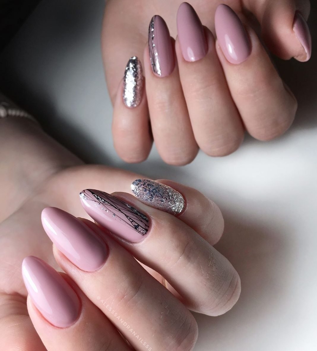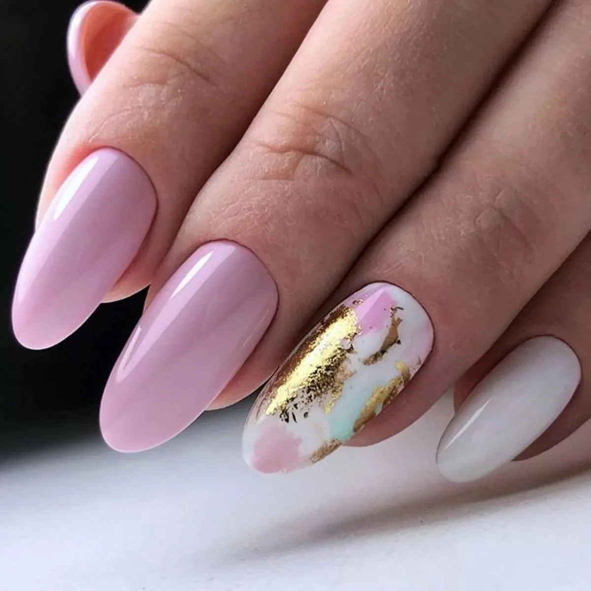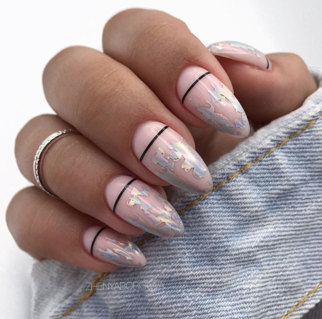 Дизайн ногтей миндаль с фольгой нежные (32 фото)