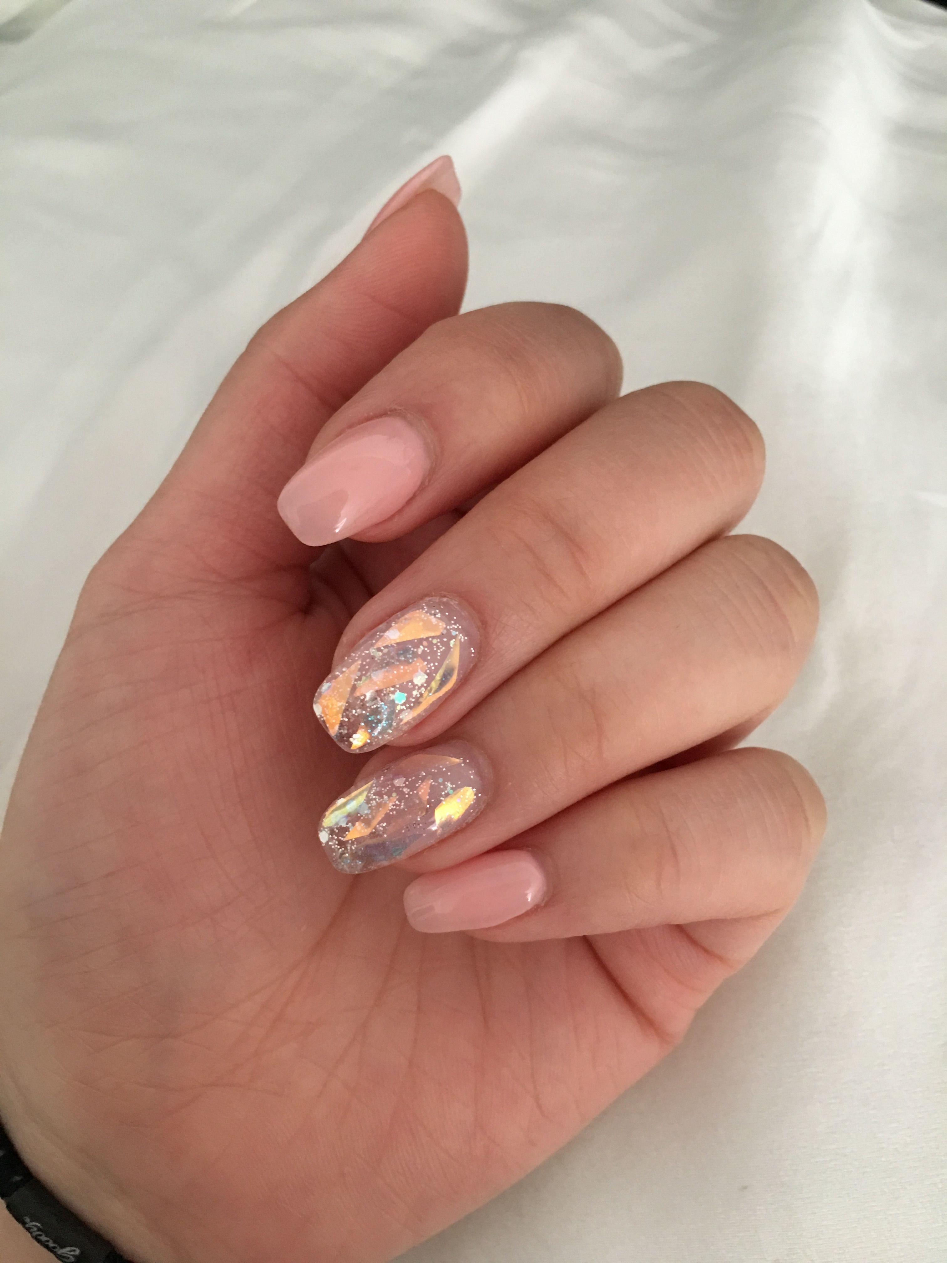 Нежно розовый маникюр с фольгой