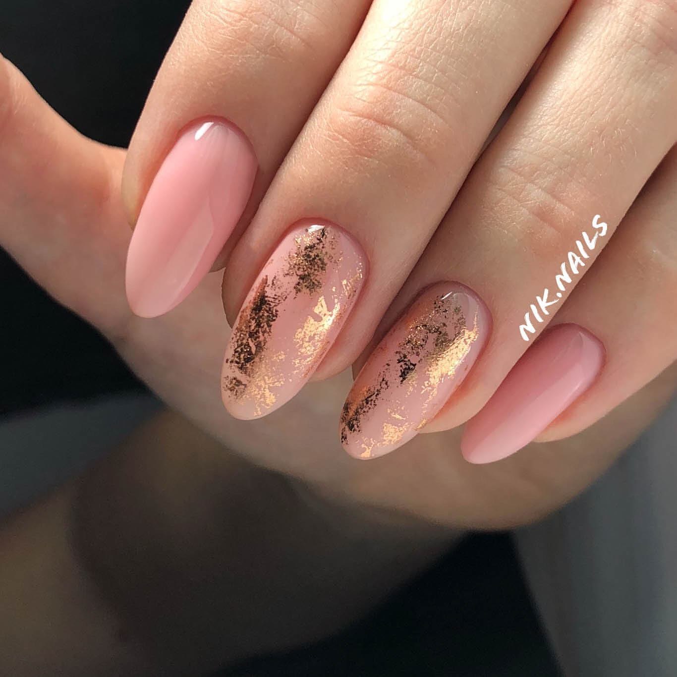 Маникюр нюдовый с фольгой миндаль