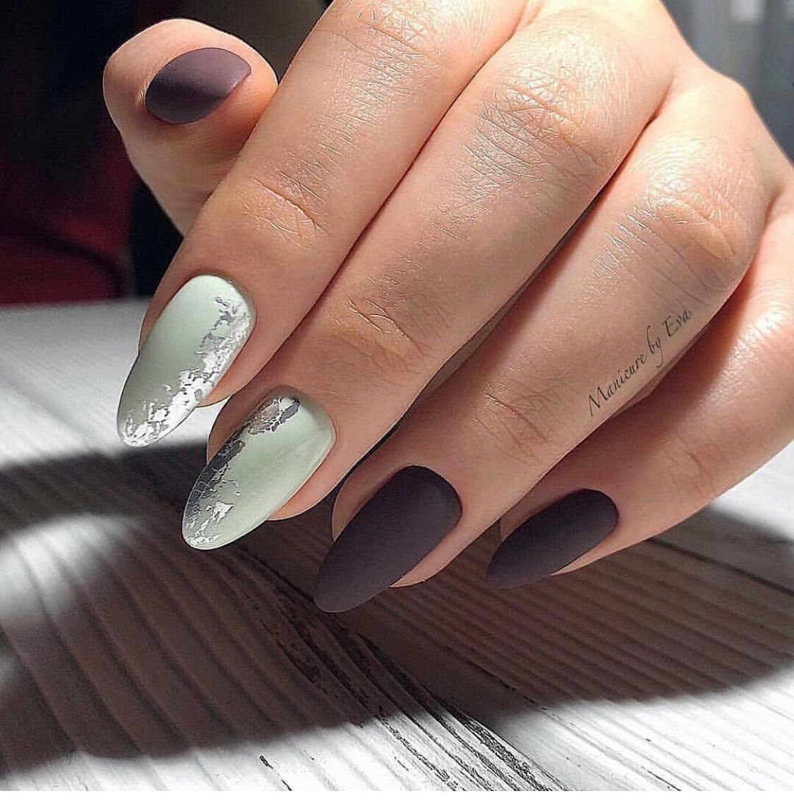 Маникюр миндаль с фольгой