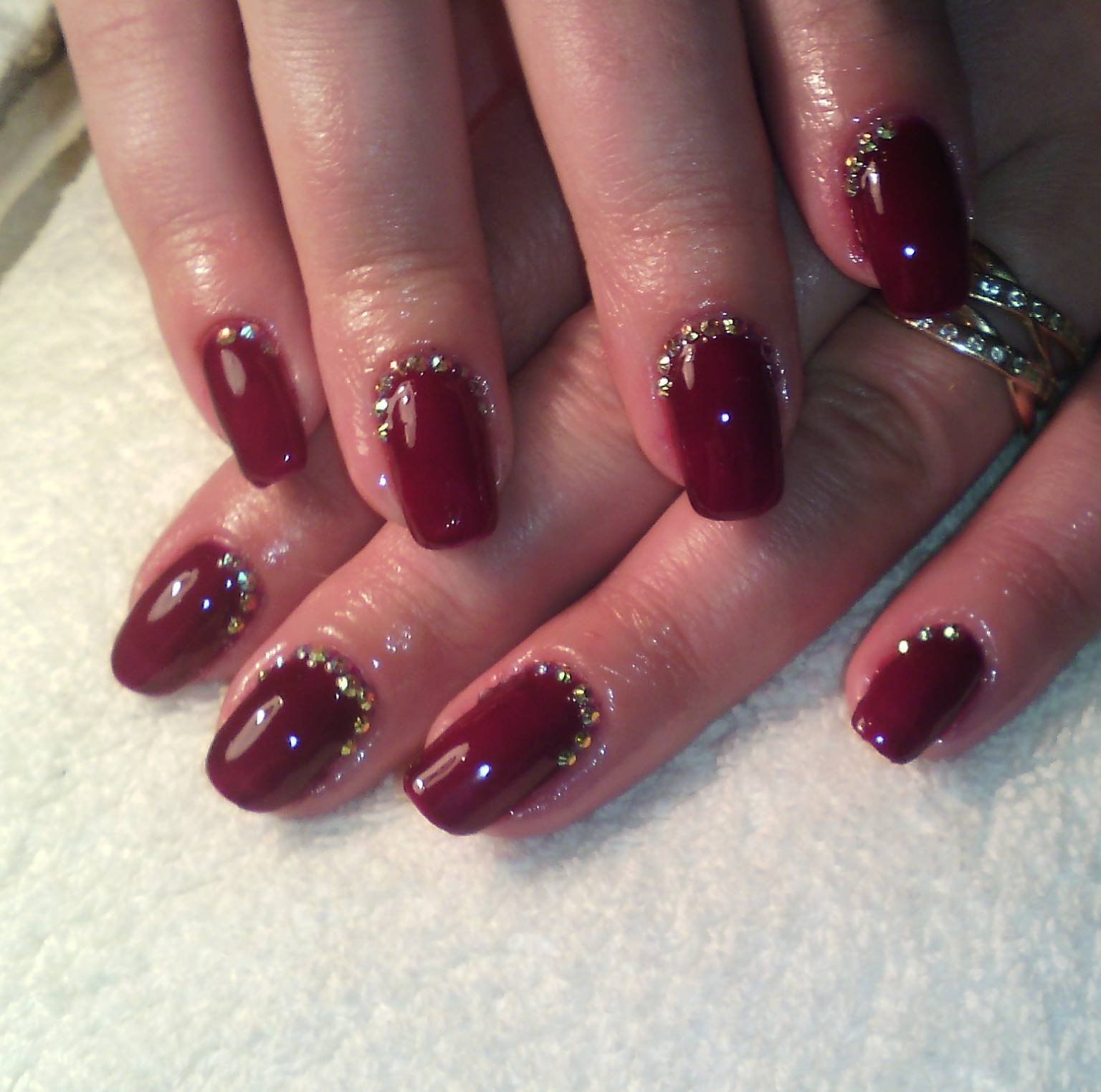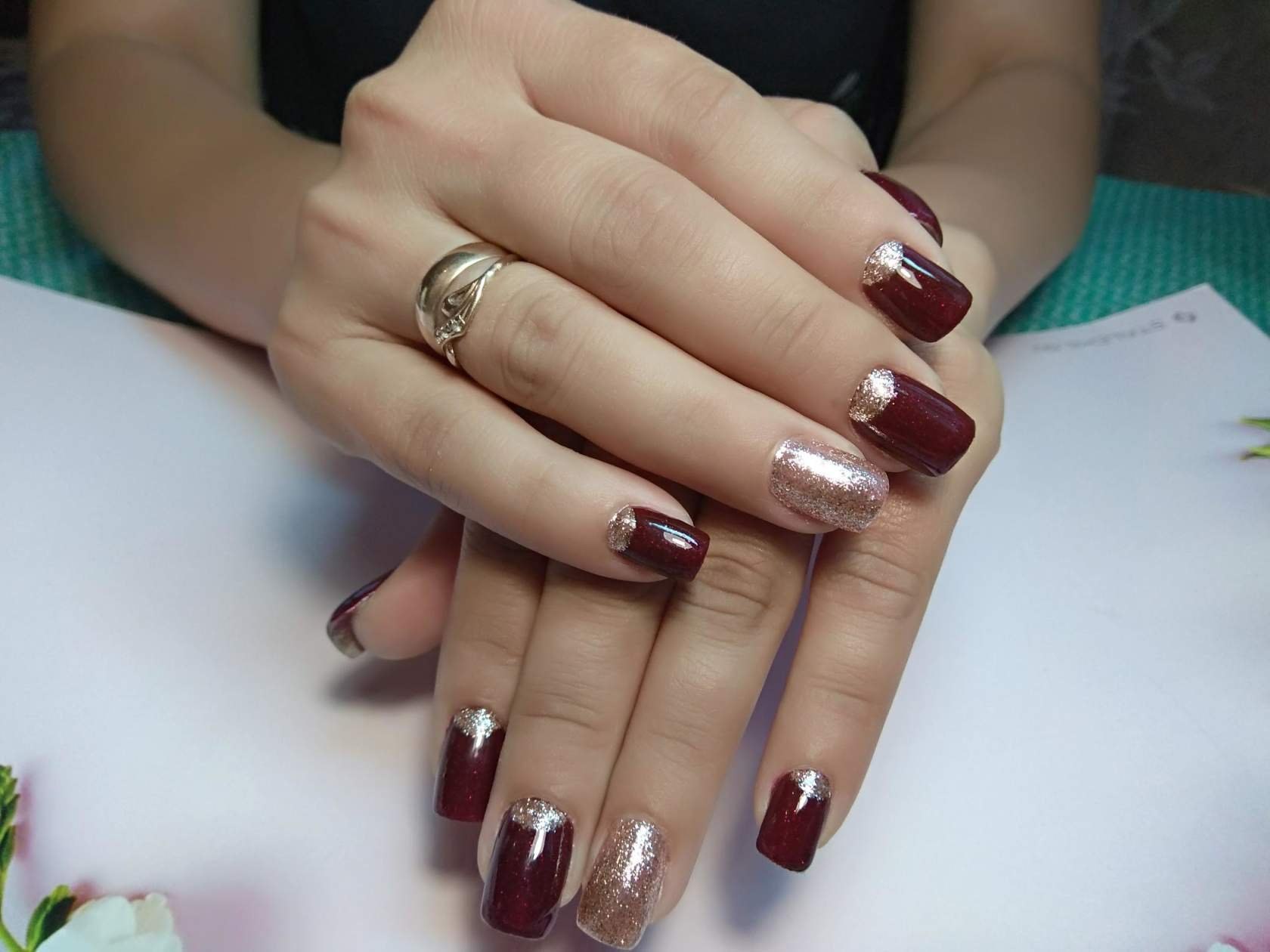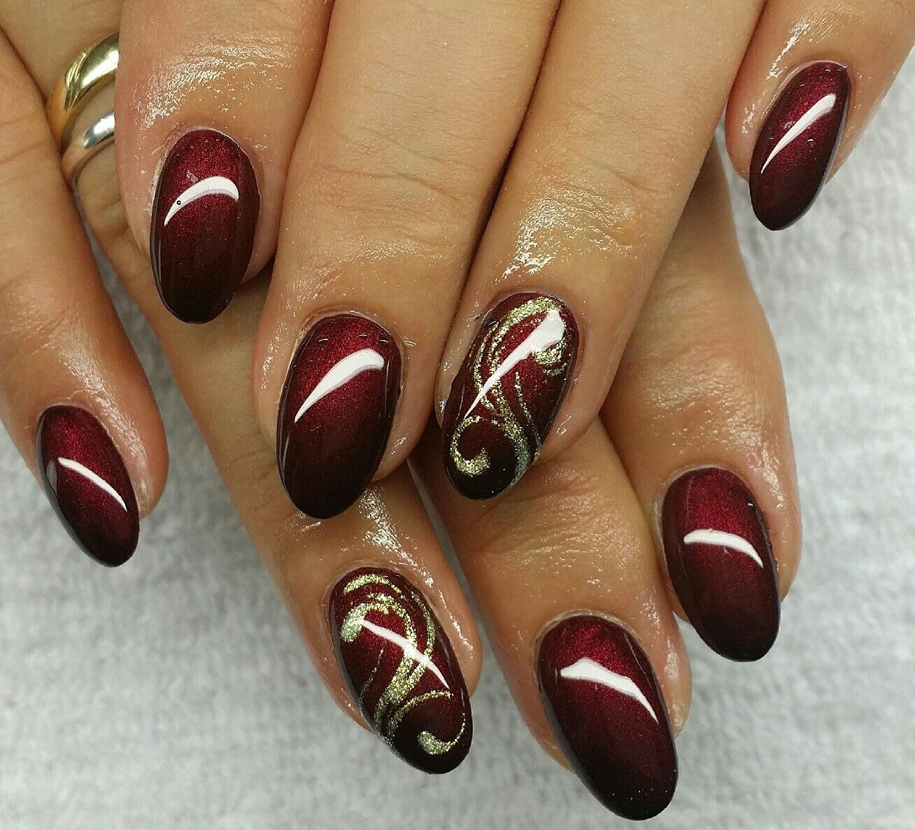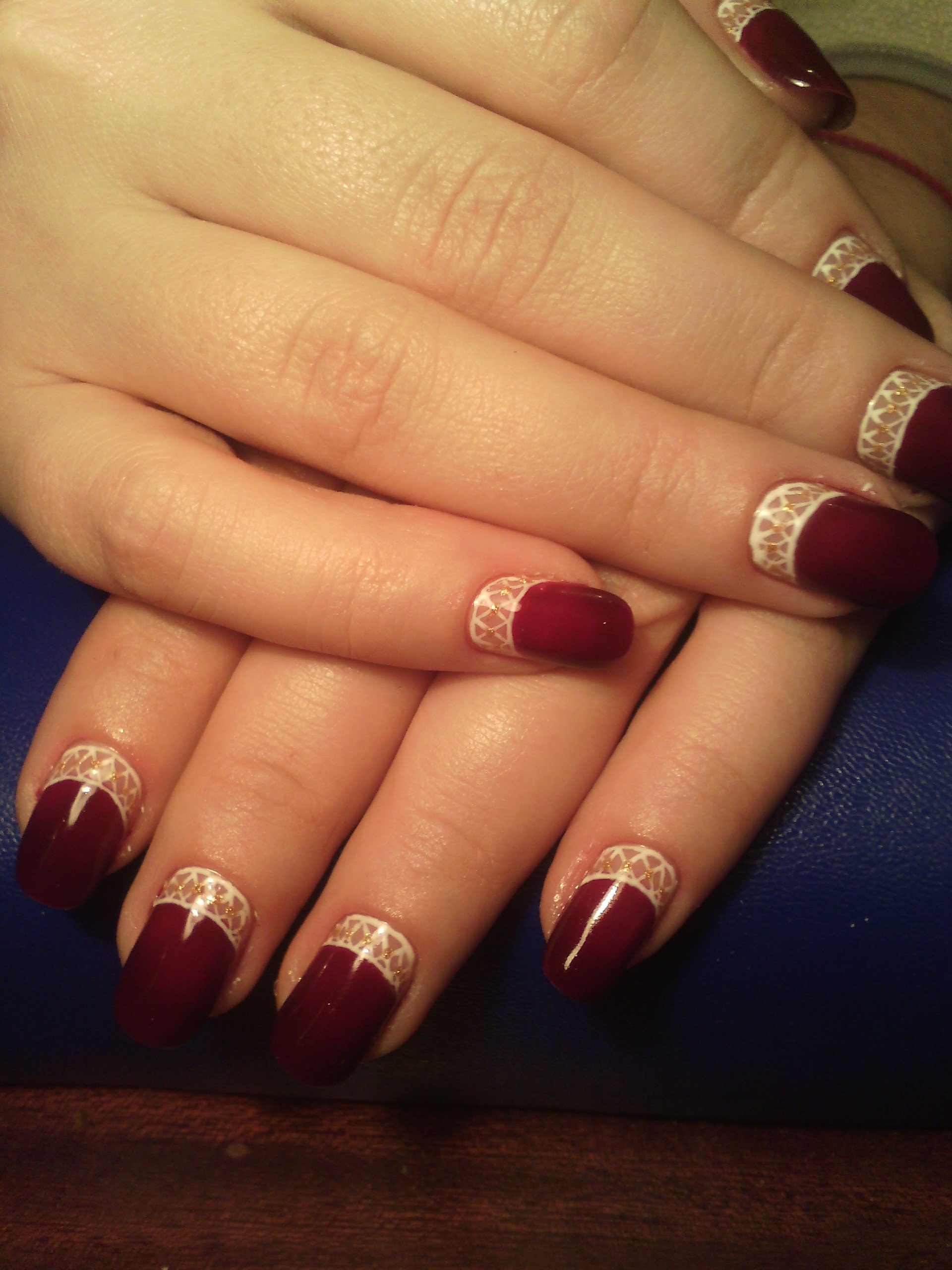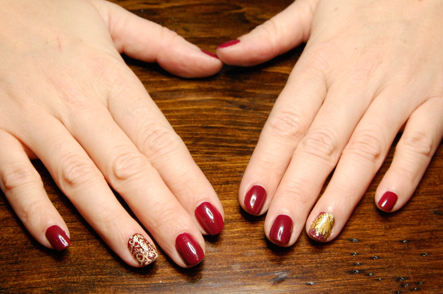 Ногти бордовые с золотом