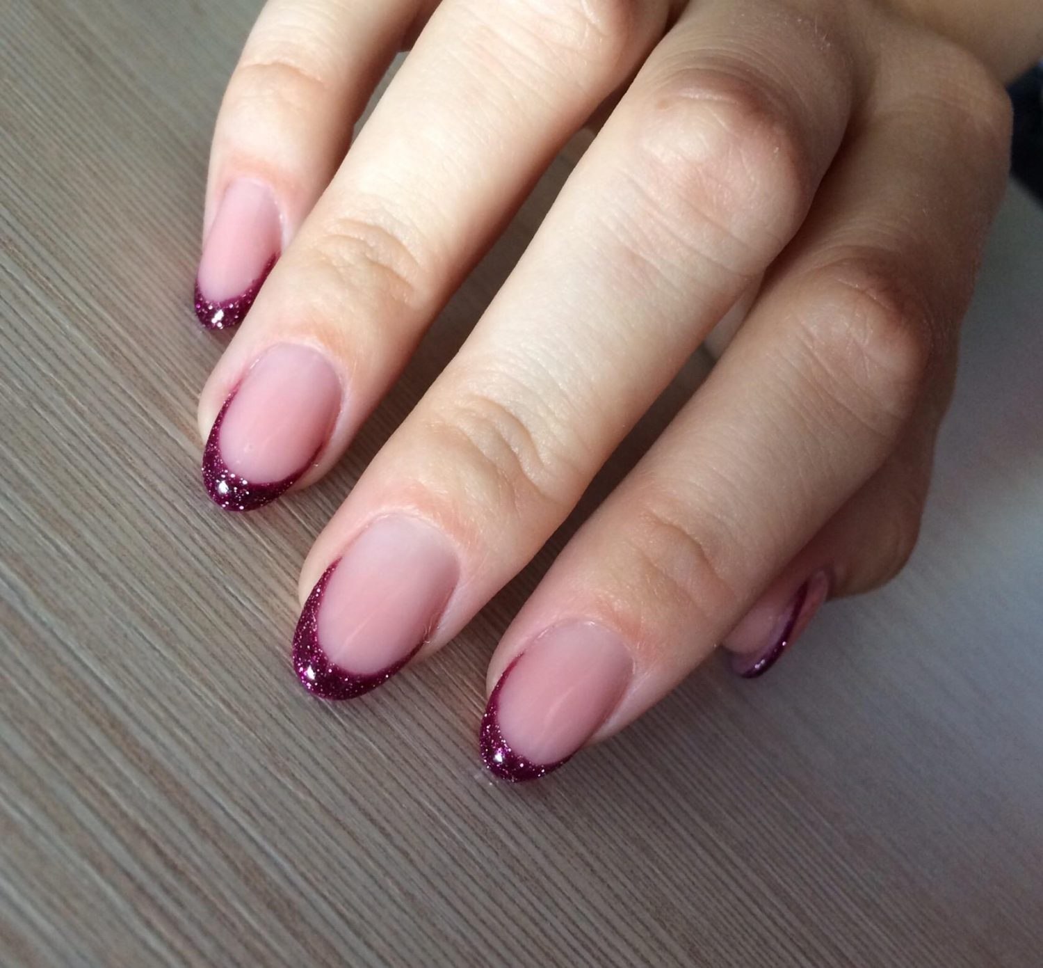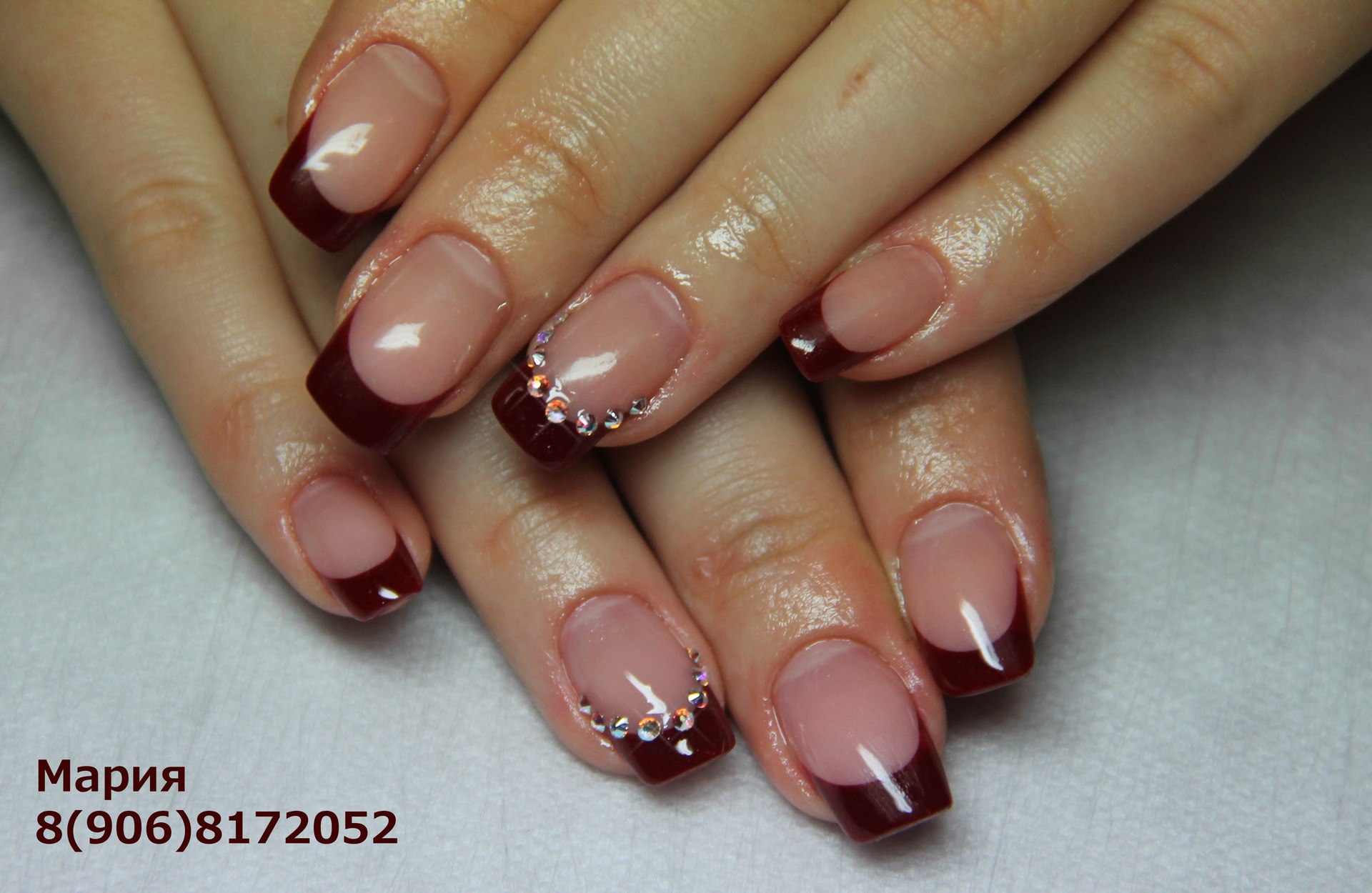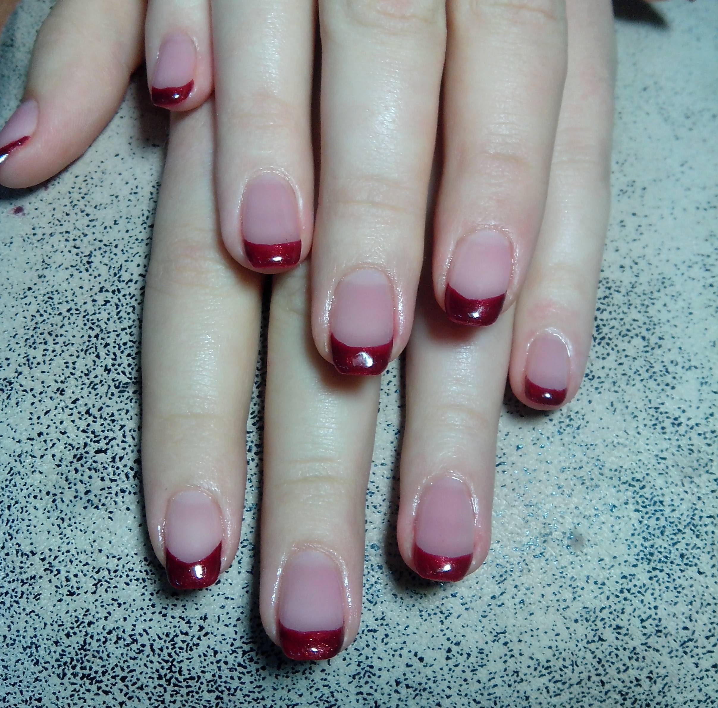 Маникюр гель френч бордовый с втиркой