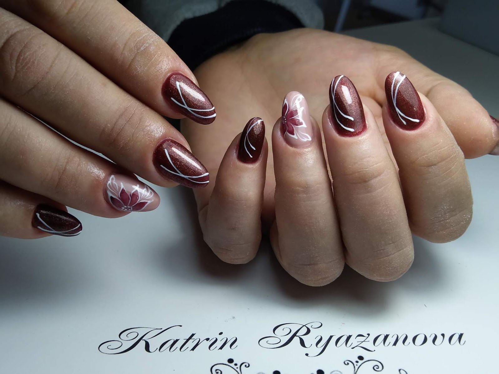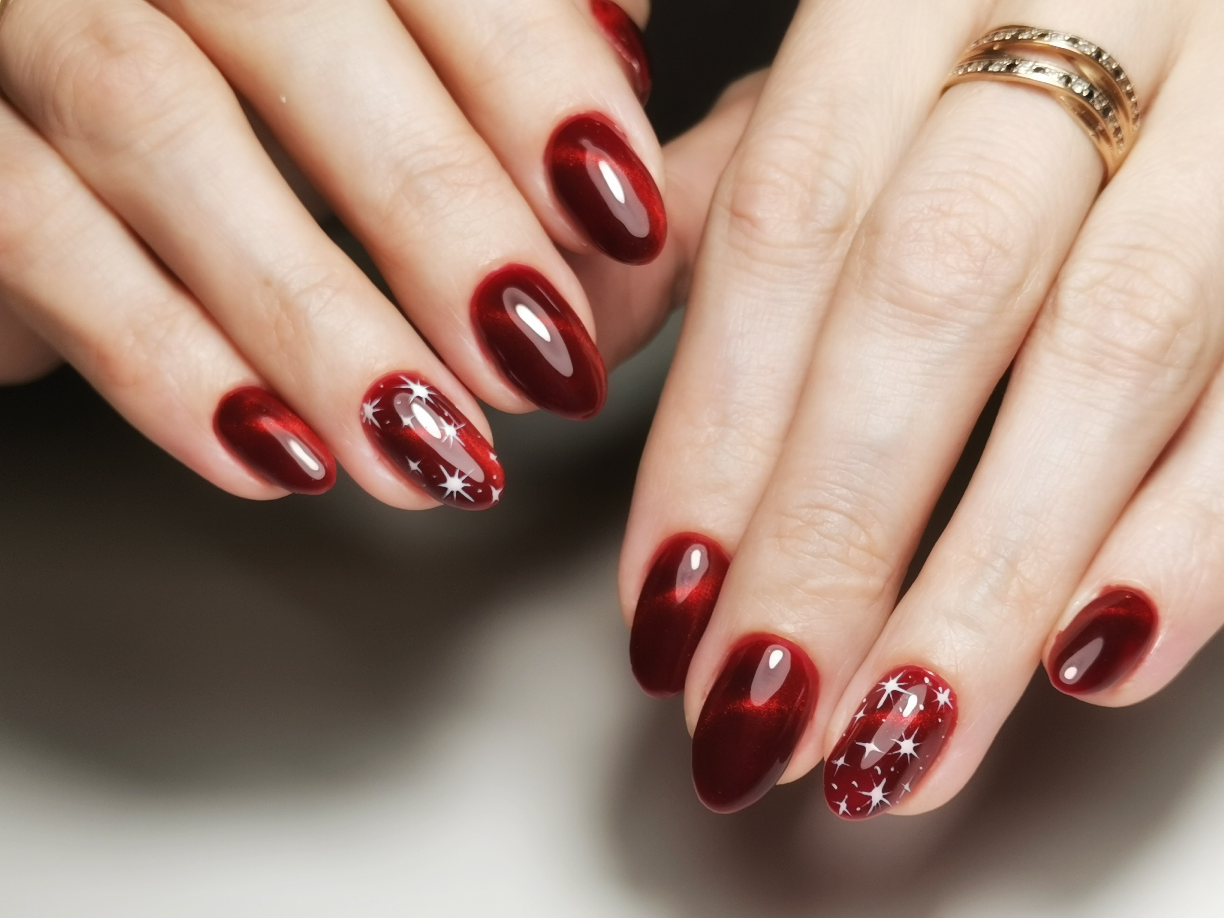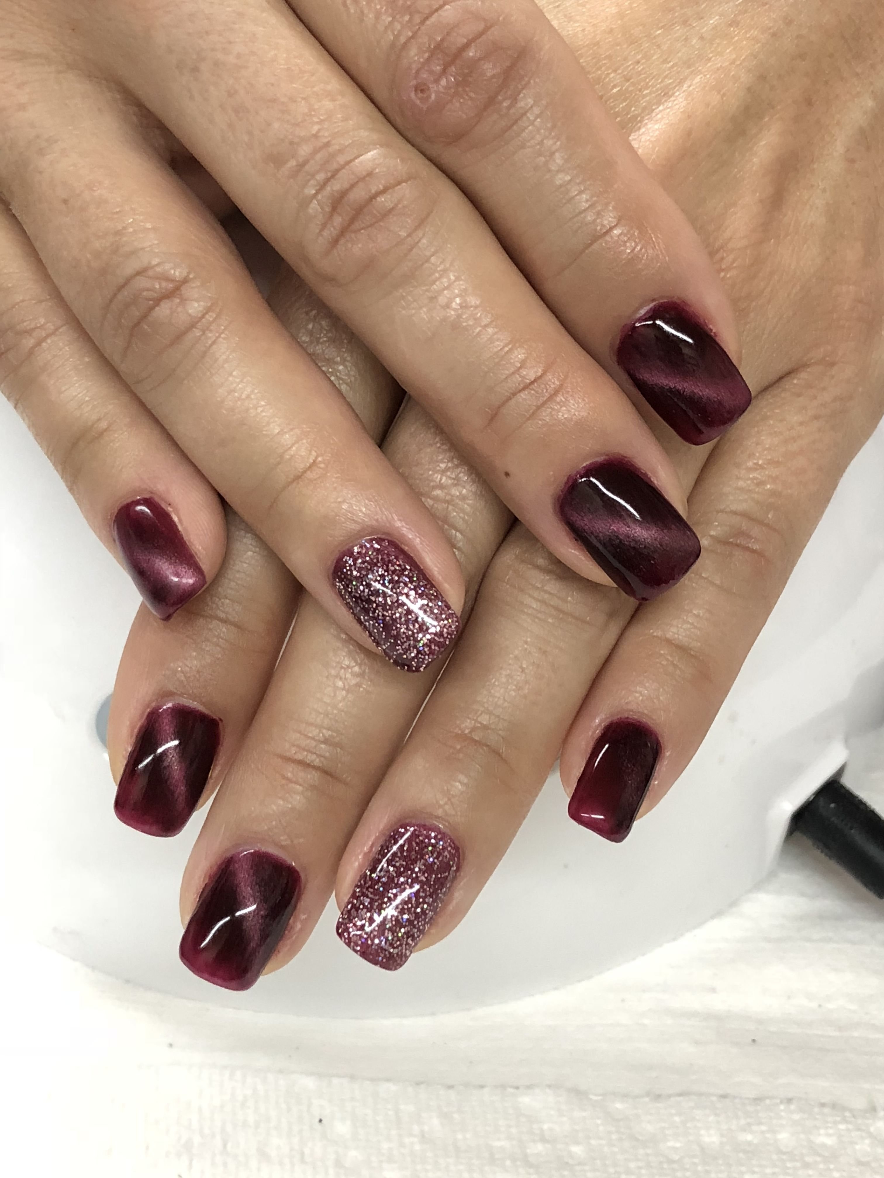 Маникюр кошачий глаз красный бордовый