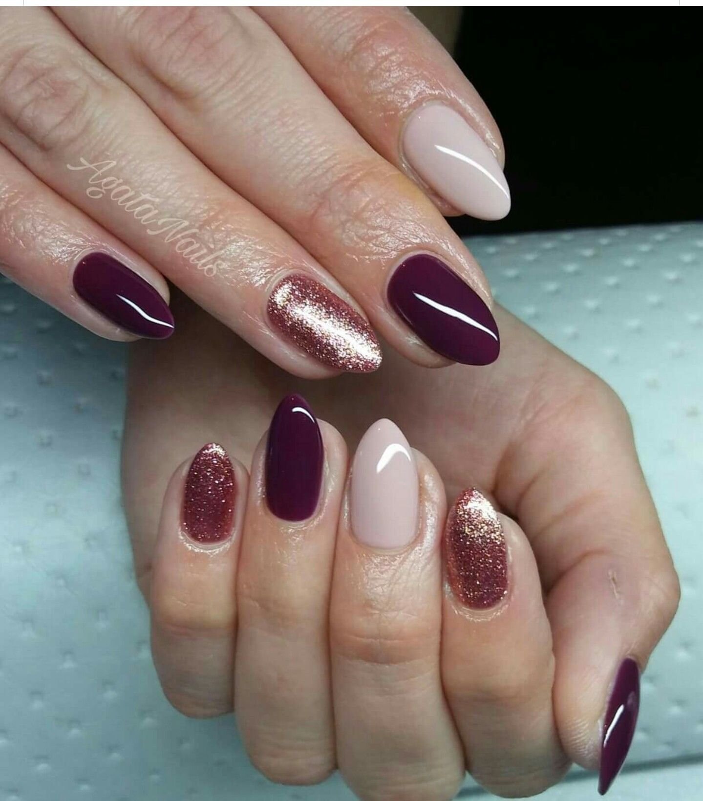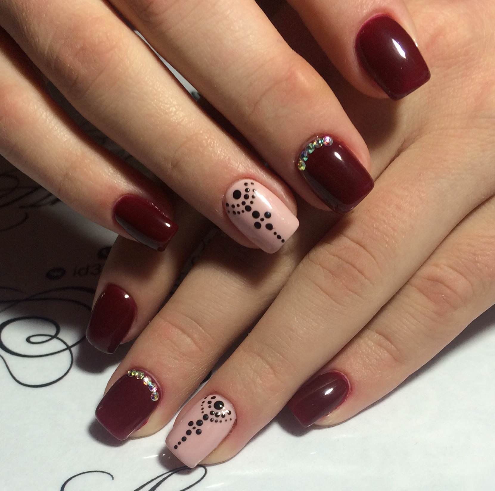 Маникюр бордовый с бежевым