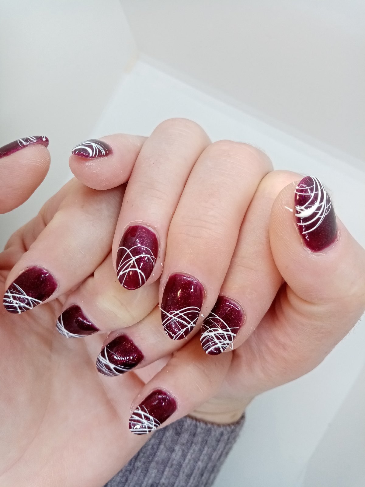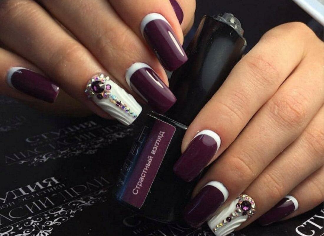 Маникюр белый с вишневым