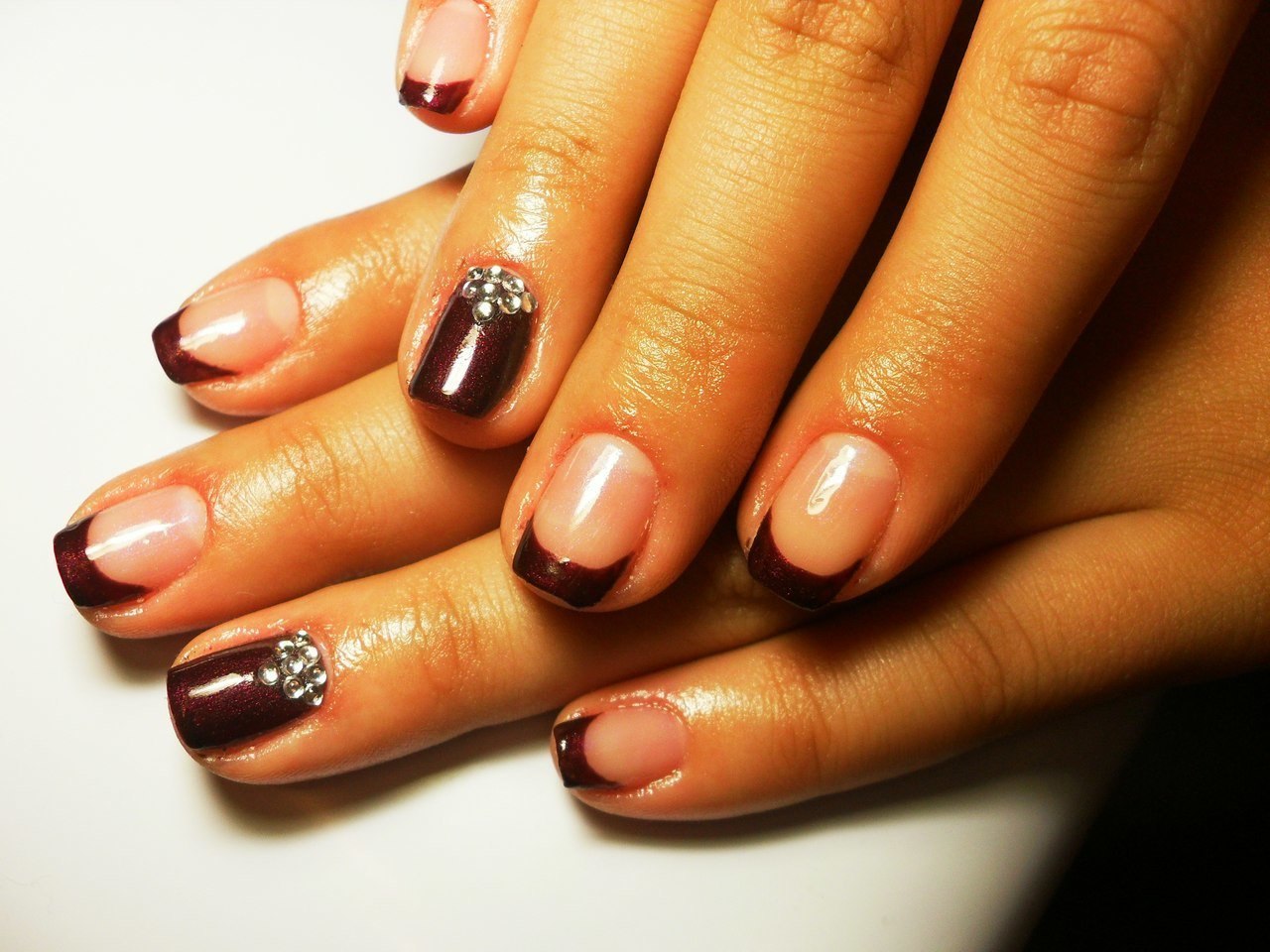 Шеллак френч бордовый на ногтях (45 фото)