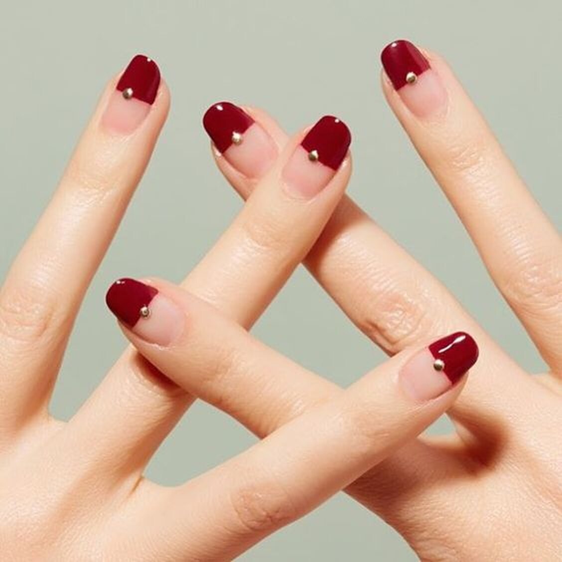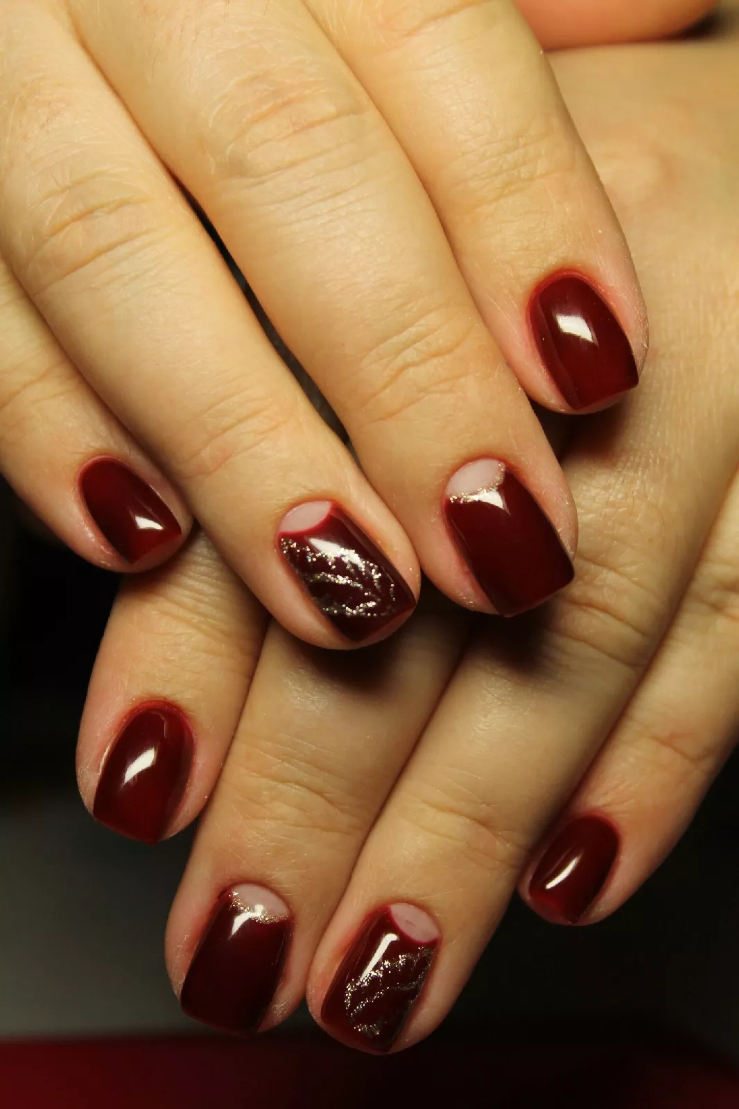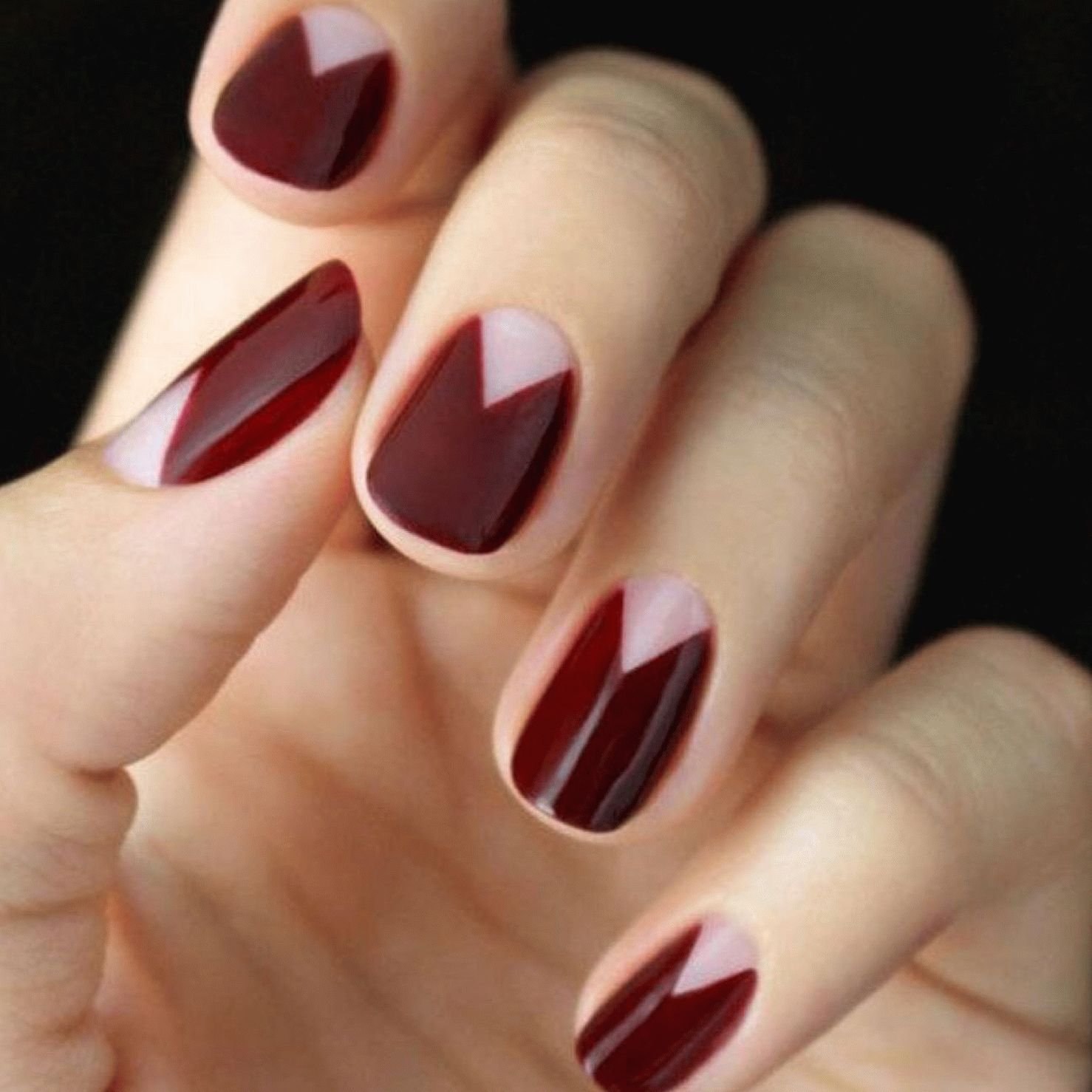 Бордовый маникюр с лунками