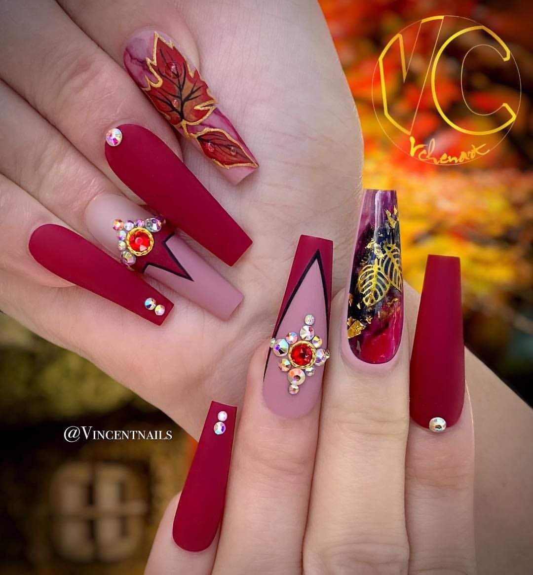 Красивые длинные осенние ногти