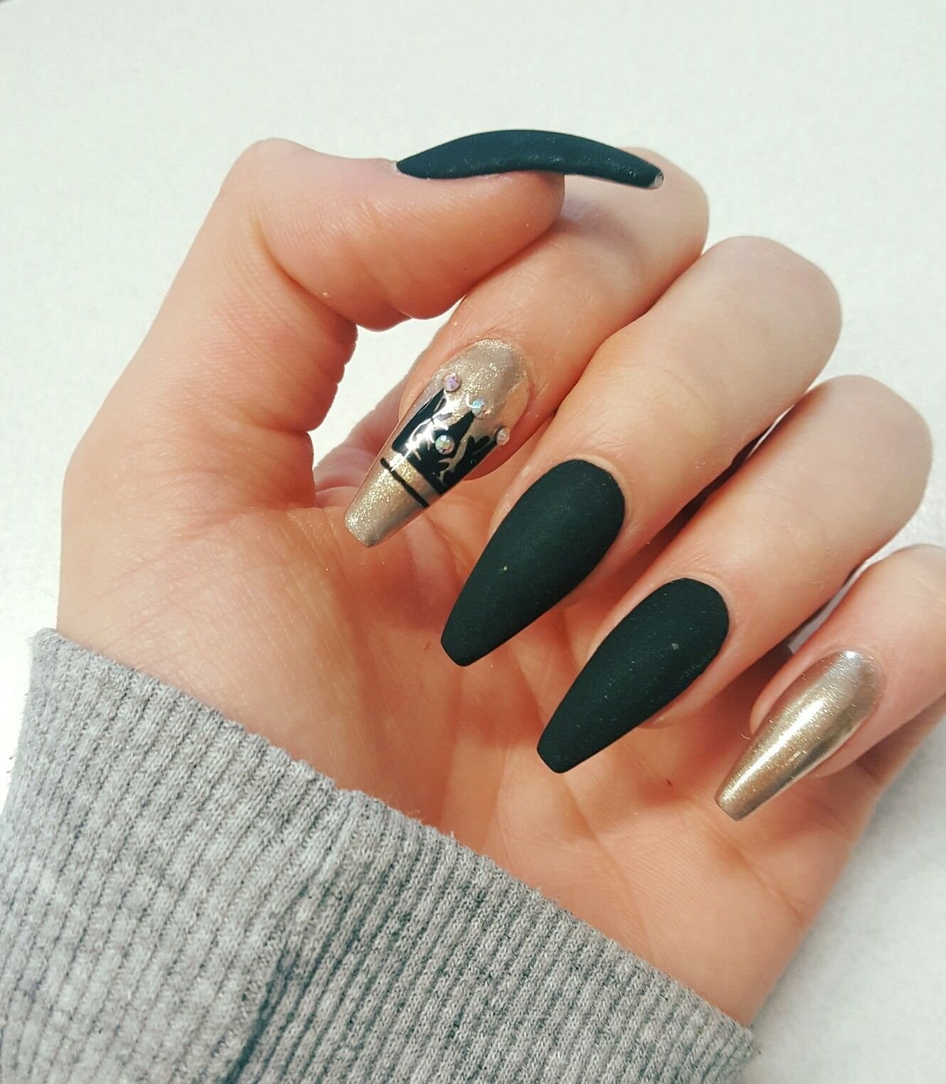Чёрные ногти форма балерина