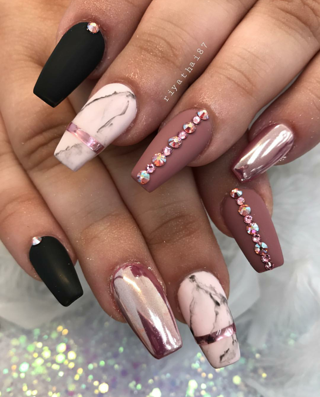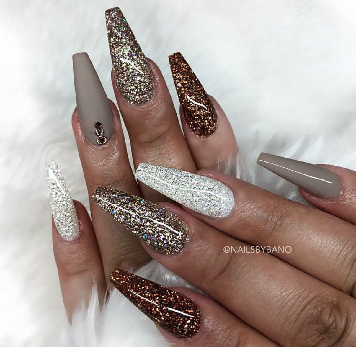 Шоколадный маникюр с блестками