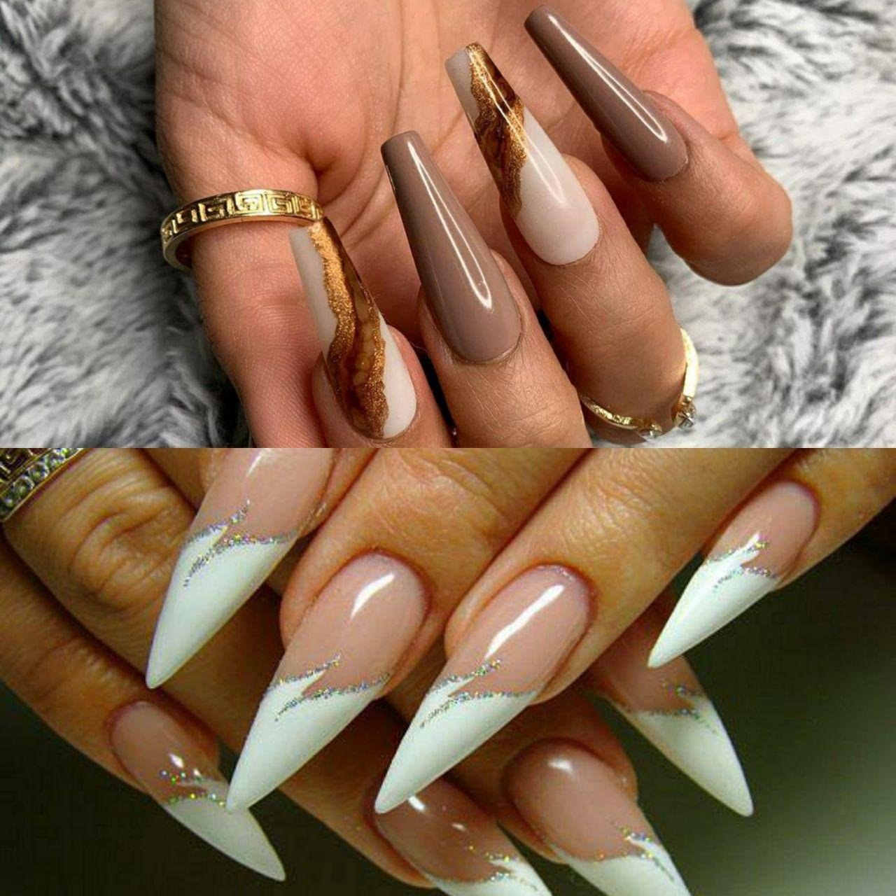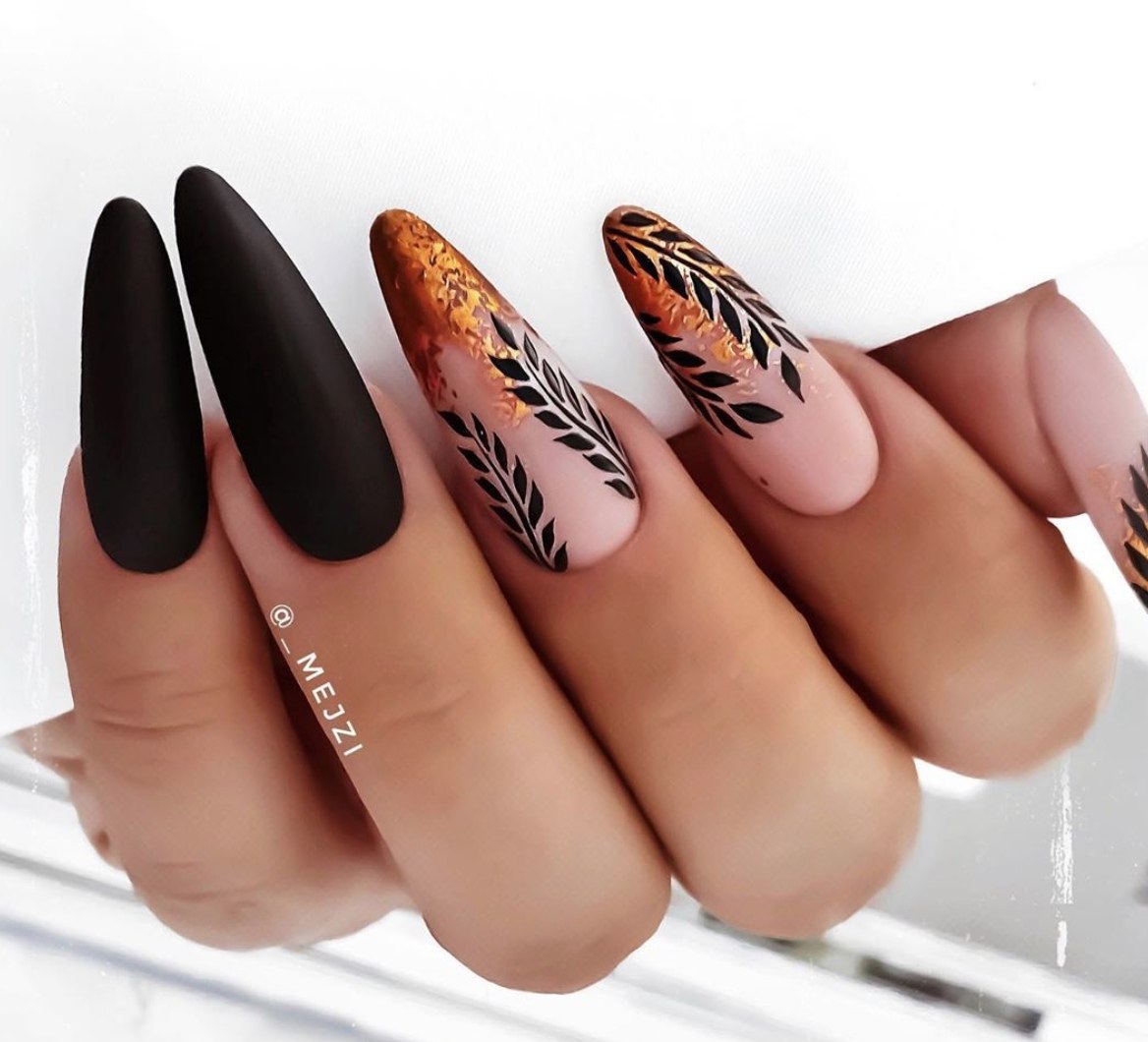 Маникюр на длинные острые ногти осень