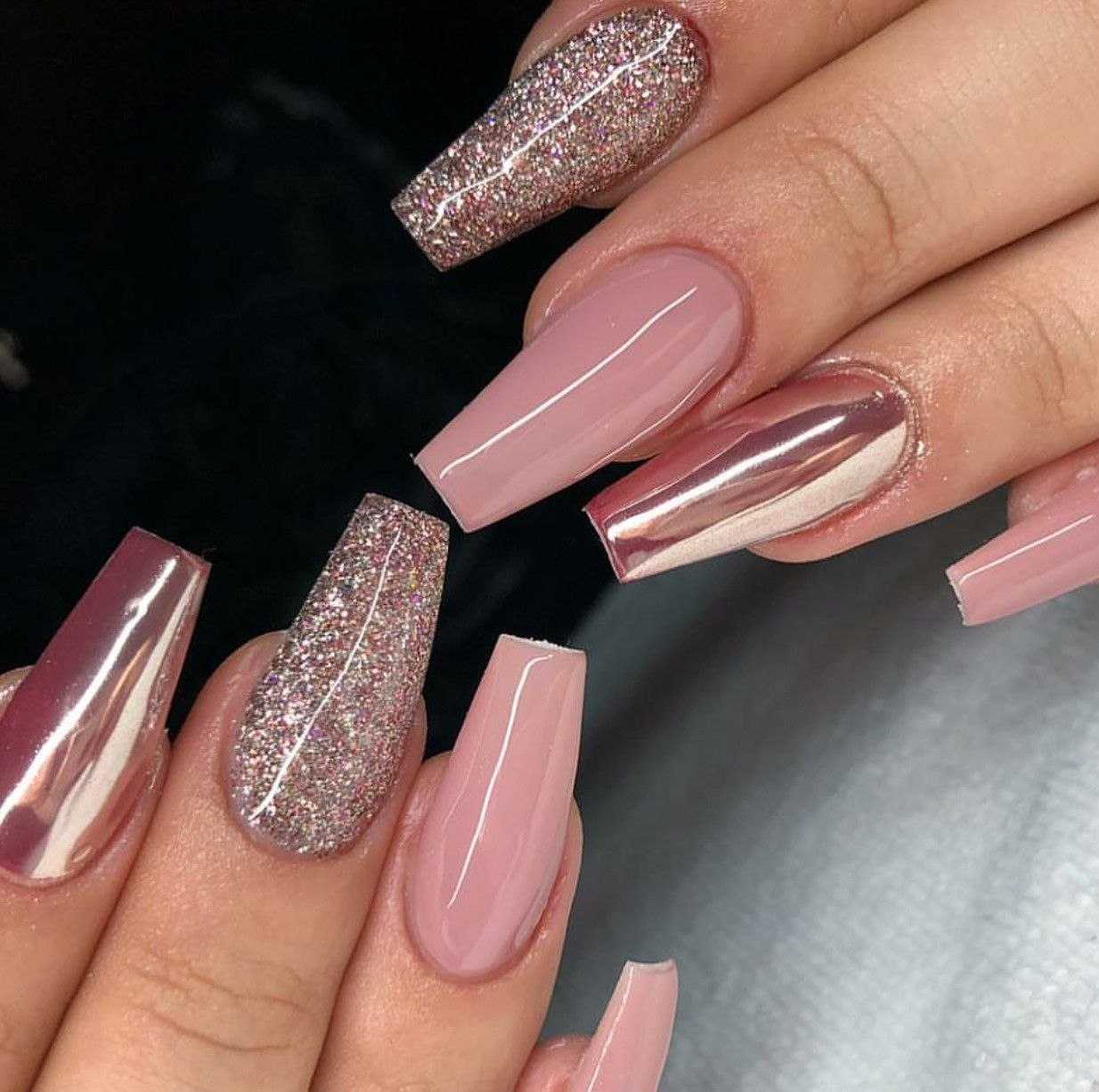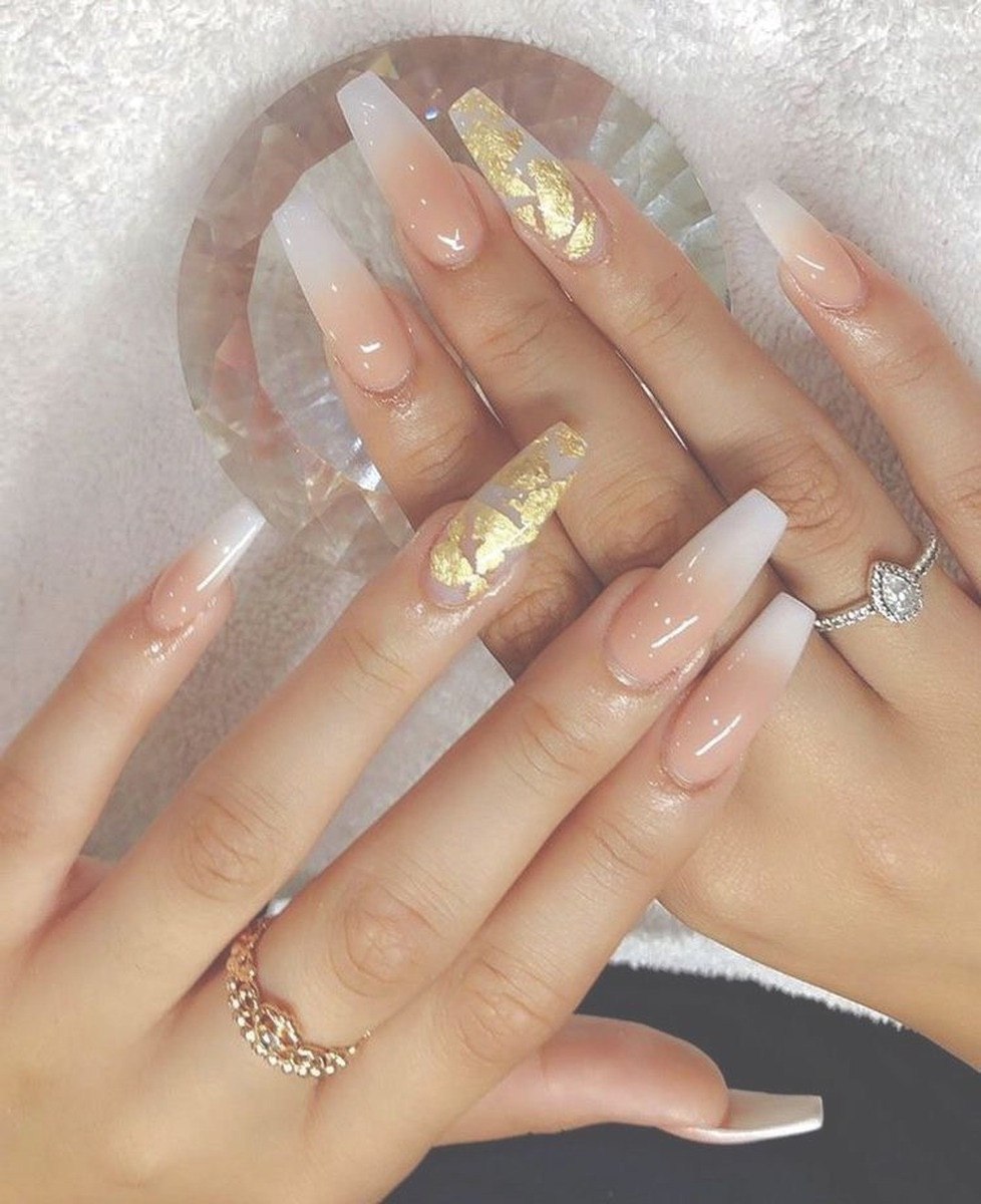 Ногти балерина бежевый маникюр с фольгой