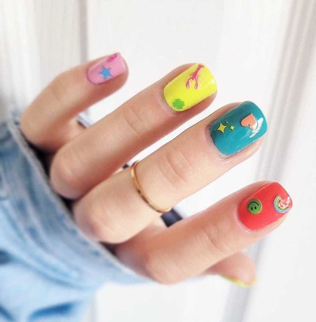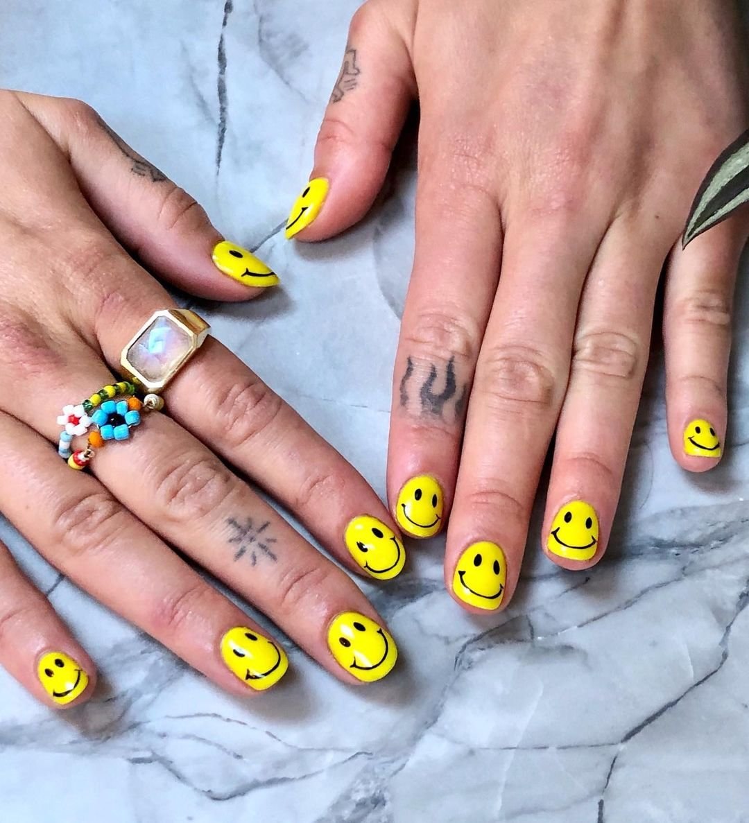 Маникюр со смайликами на короткие ногти 2021