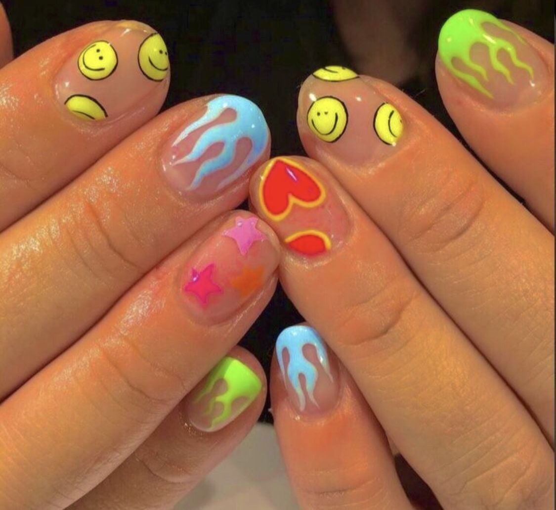 Яркий маникюр со смайликами