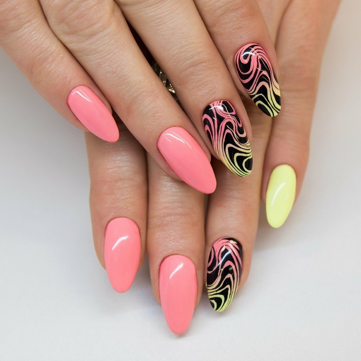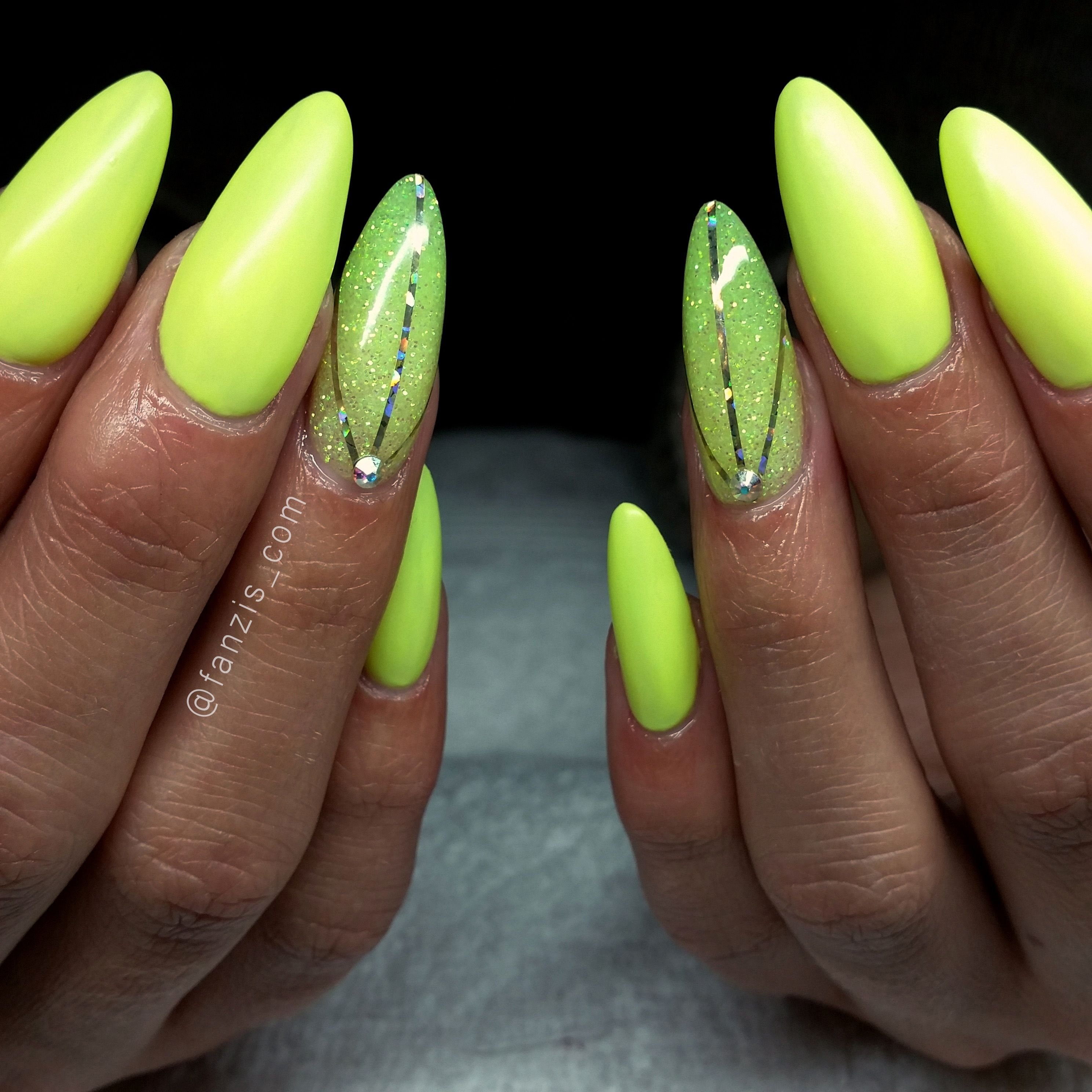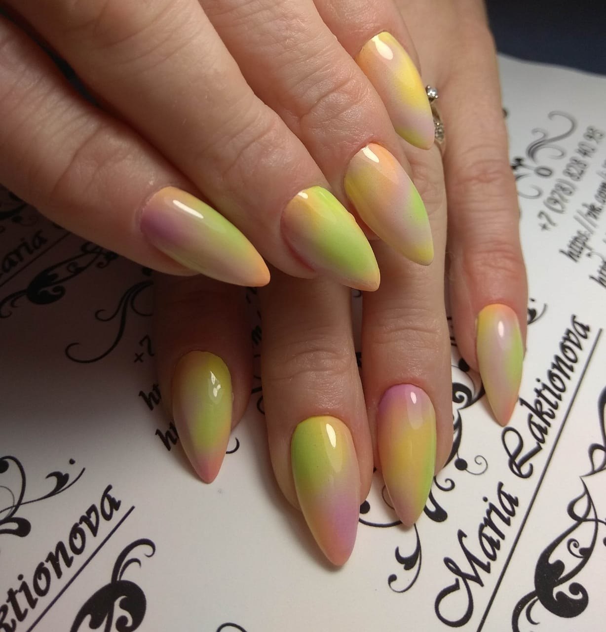 Кислотный маникюр на миндалевидные ногти (43 фото)