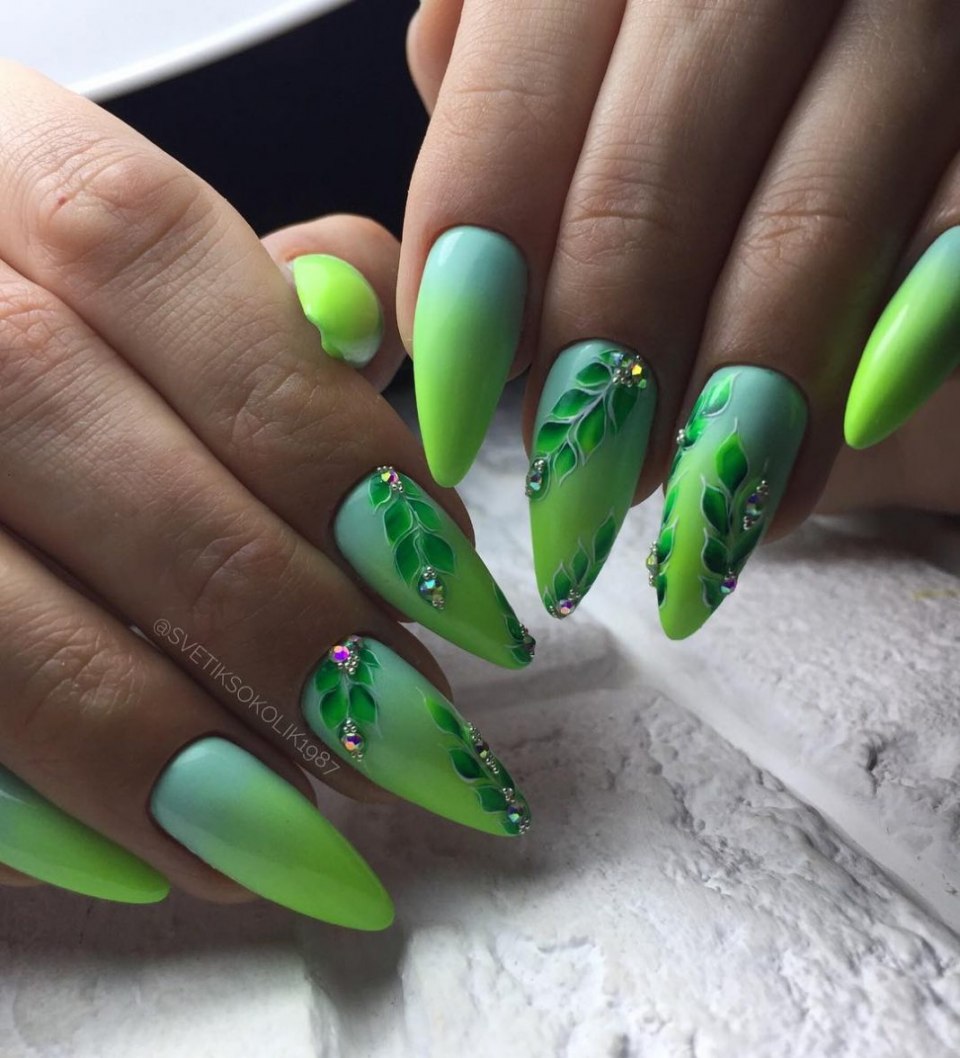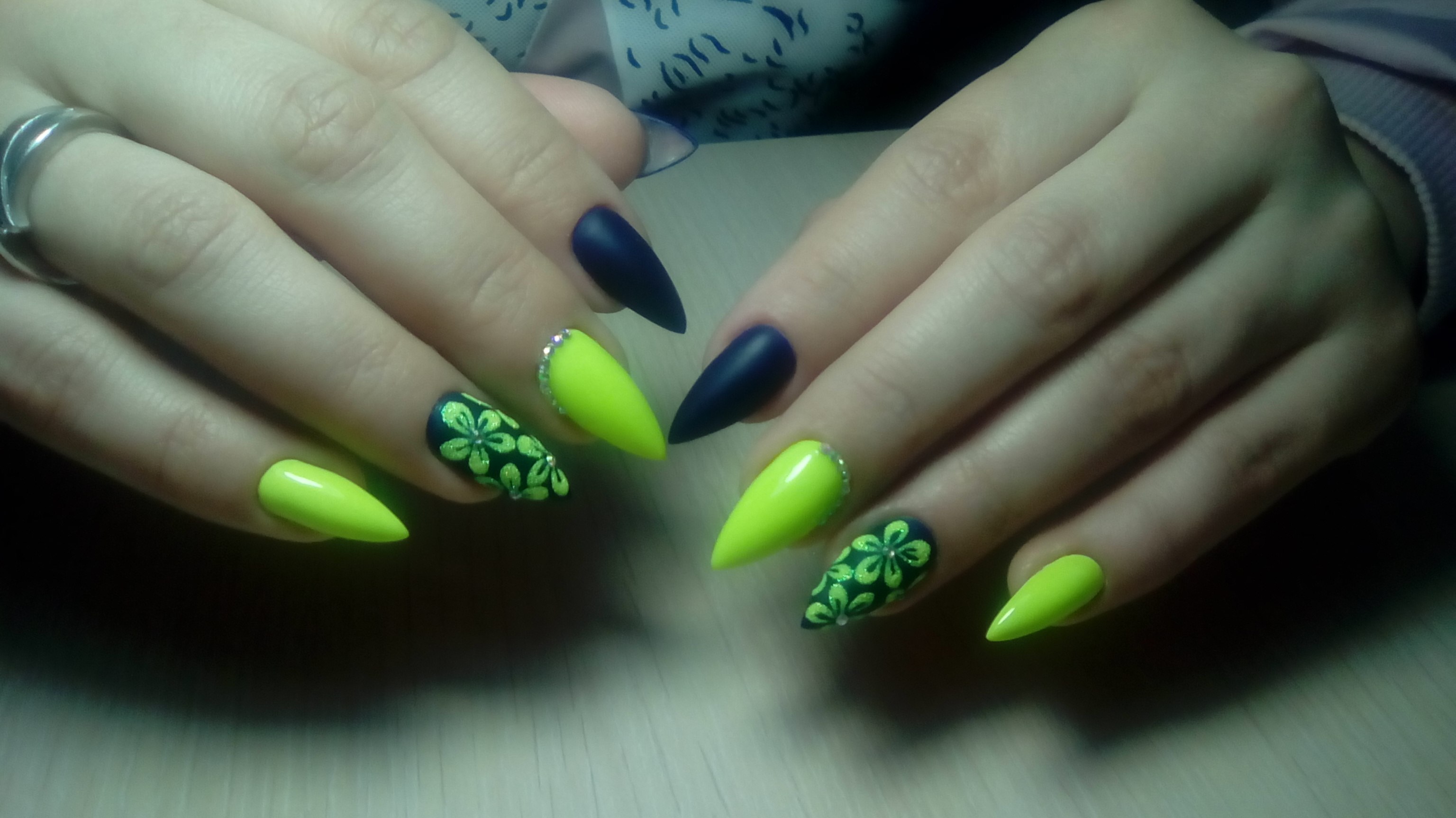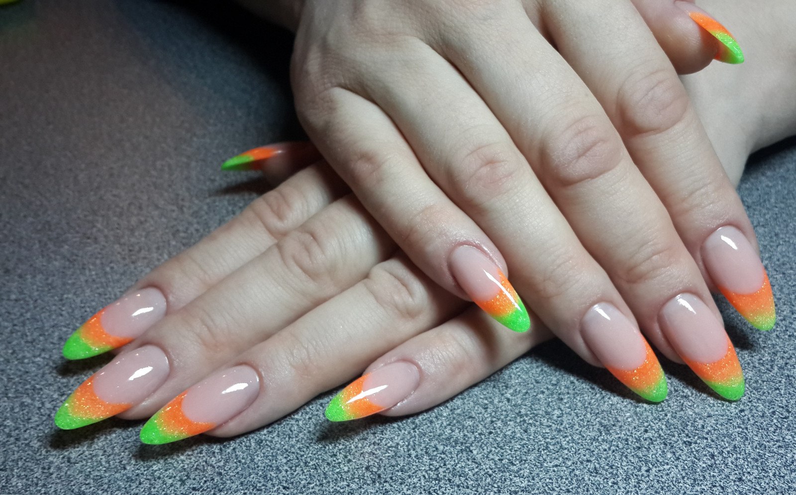 Кислотный маникюр на миндалевидные ногти (43 фото)