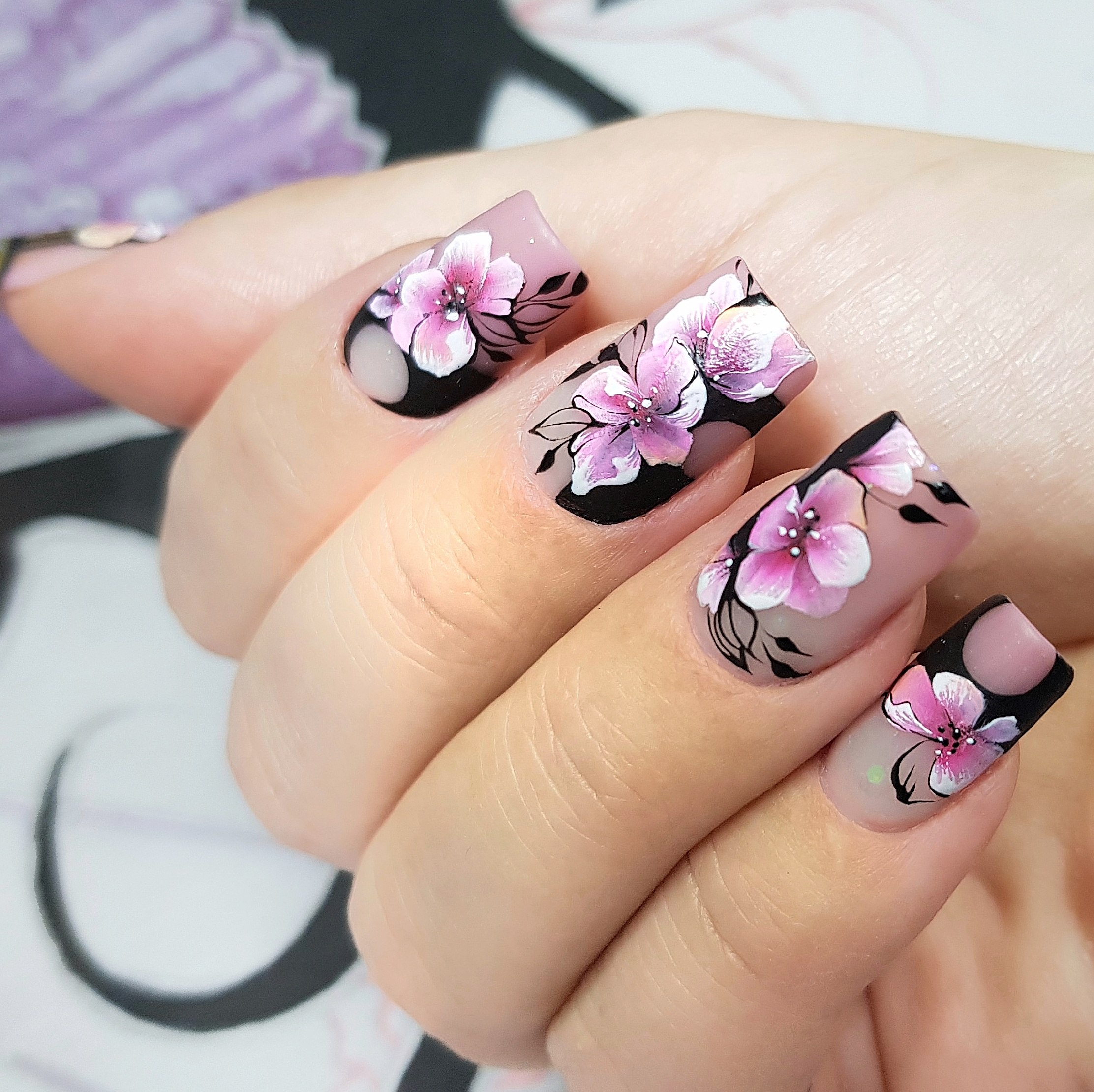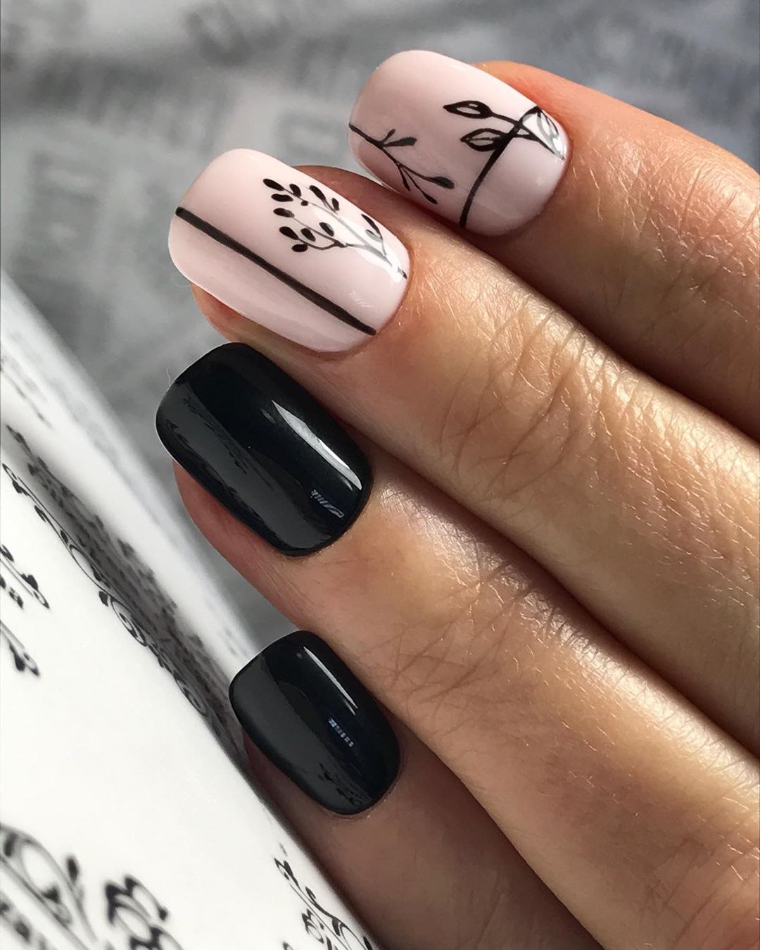 Маникюр нюд с черным
