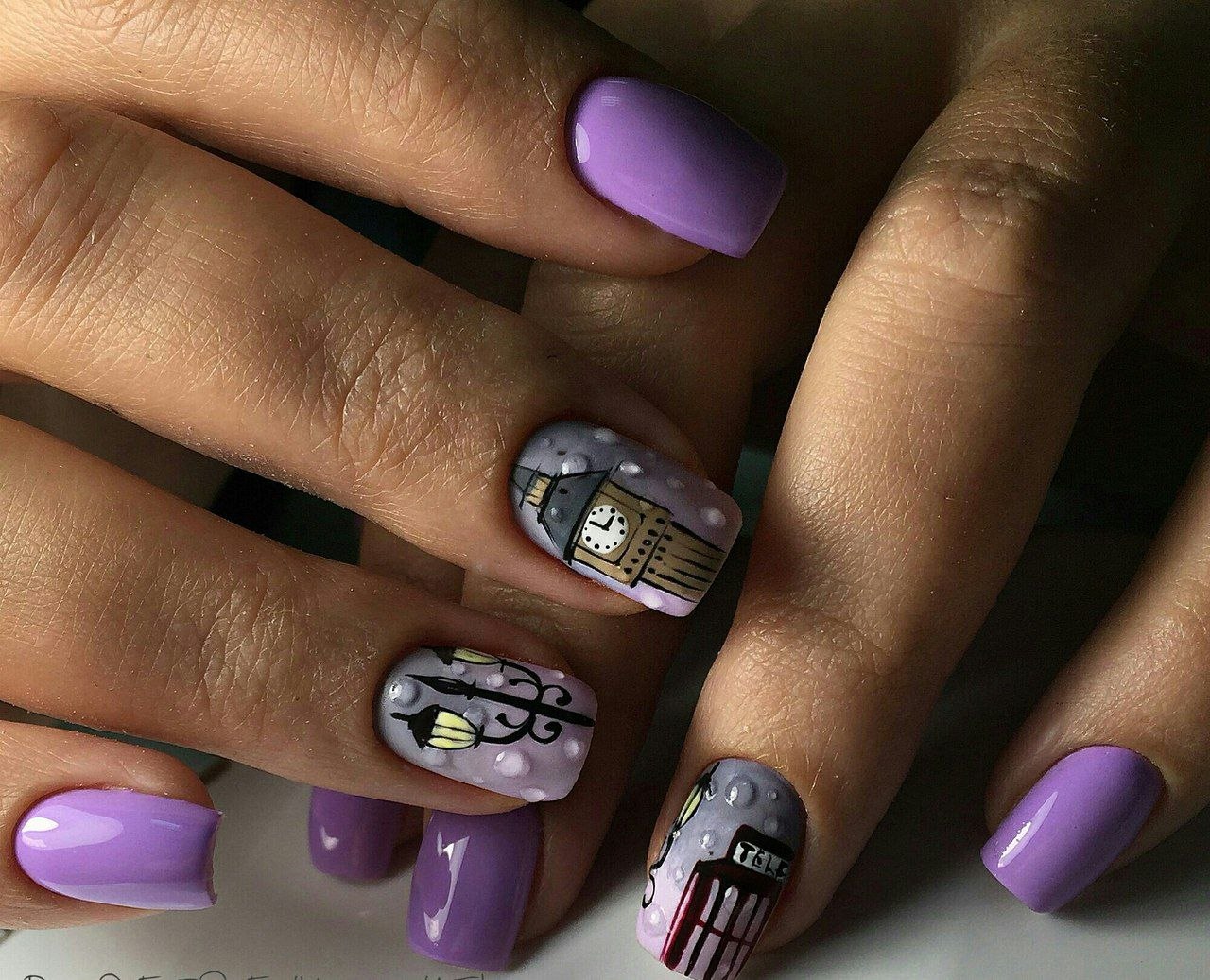 Маникюр с рисунком города