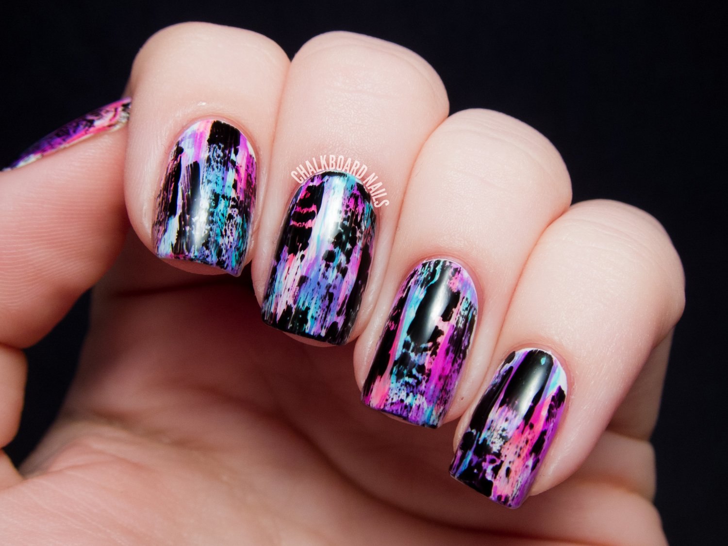 Разноцветный маникюр со стемпингом