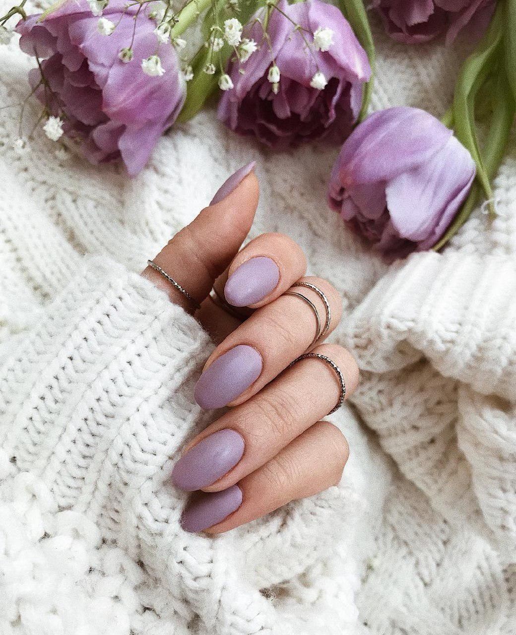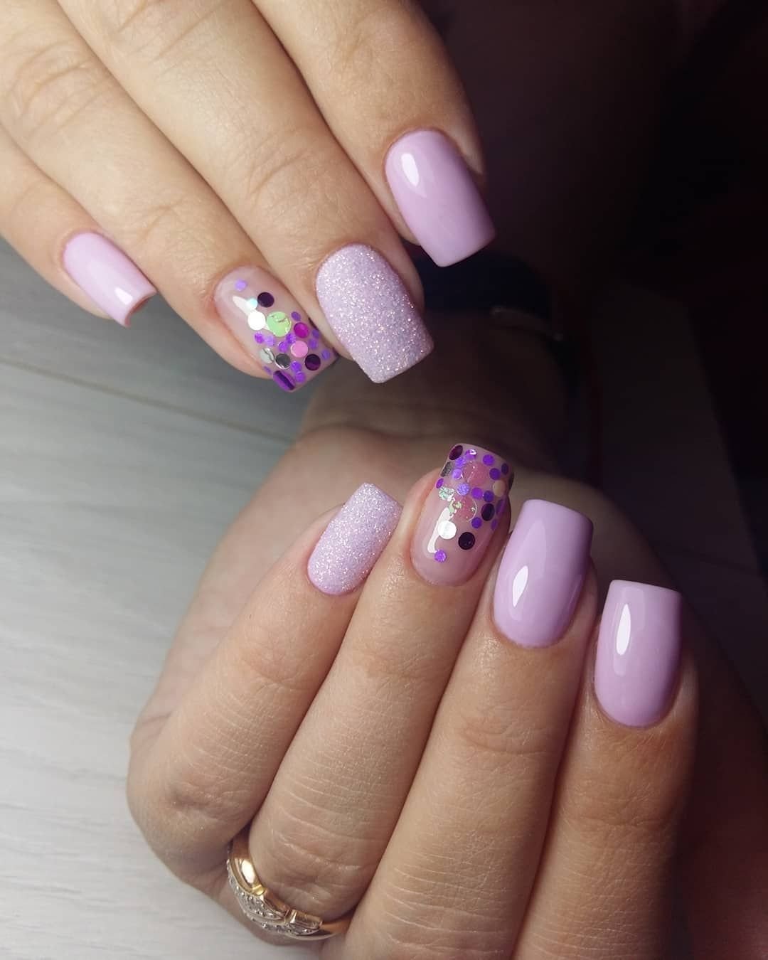 Пастельные оттенки фиолетового на ногтях (51 фото)